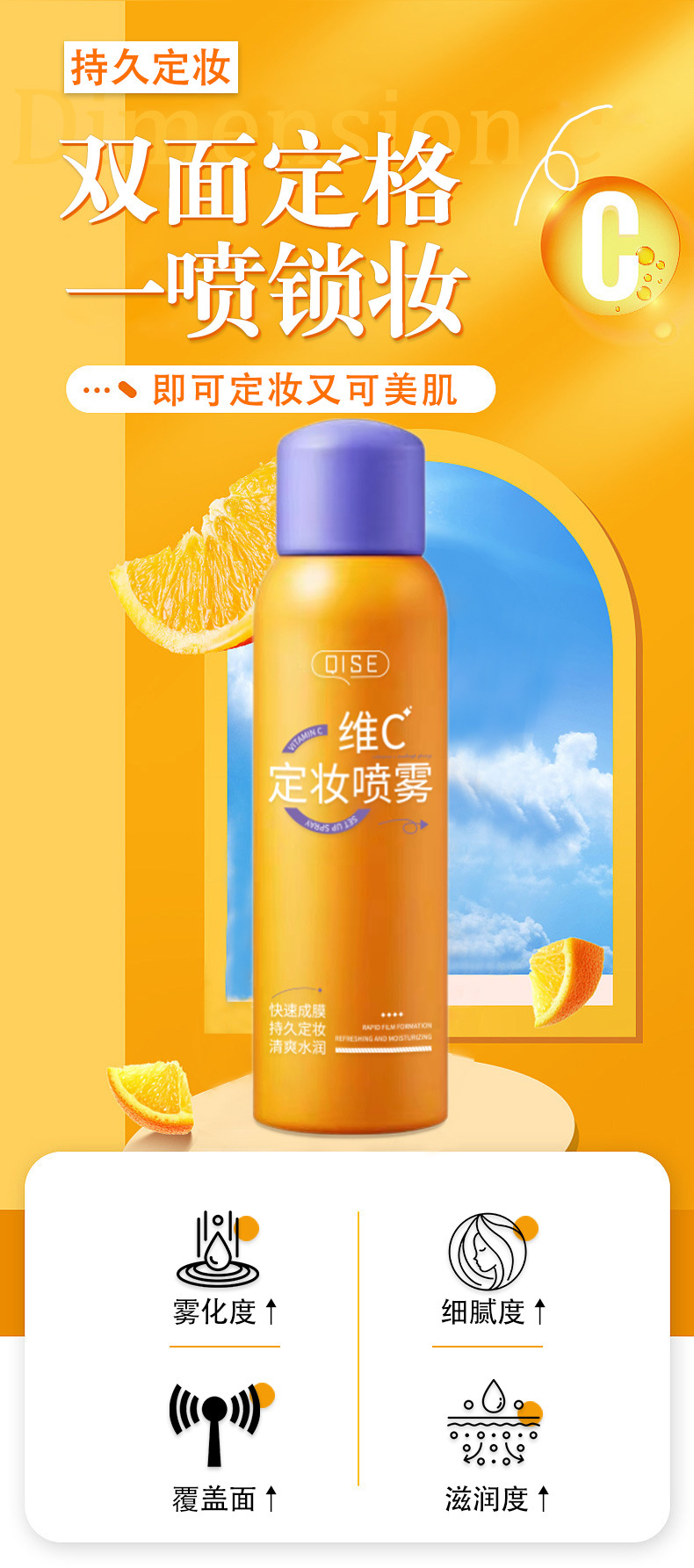 【第二瓶半价!维c定妆喷雾24小时擦不掉】持久定妆不易脱妆清透无膜感 防水防汗定型抗氧化控油补水喷雾女