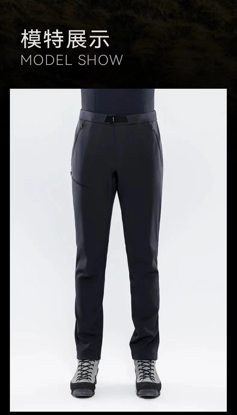 软壳裤男 秋冬季防风保暖登山长裤 专业面料,抗拉保型,弹力张弛,轻松完成大幅度动作,运动无束缚,3D立体裁剪,版型舒适,拉伸线条感,提高户外出行安全系数,裤腰拼接设计并搭配腰带,穿着舒适,告别束缚 裤身多处防水拉链式口袋设计!容纳随身小物品,户外出行运动时无需顾忌物品丢失!膝盖部位护膝设计!拼接专用户外科技面料,耐磨防刮,抵御荆棘刮擦,适应多种环境,享受徒步穿越,露营,为户外出行保驾护航。简约直筒脚口设计,修饰版型更显腿长