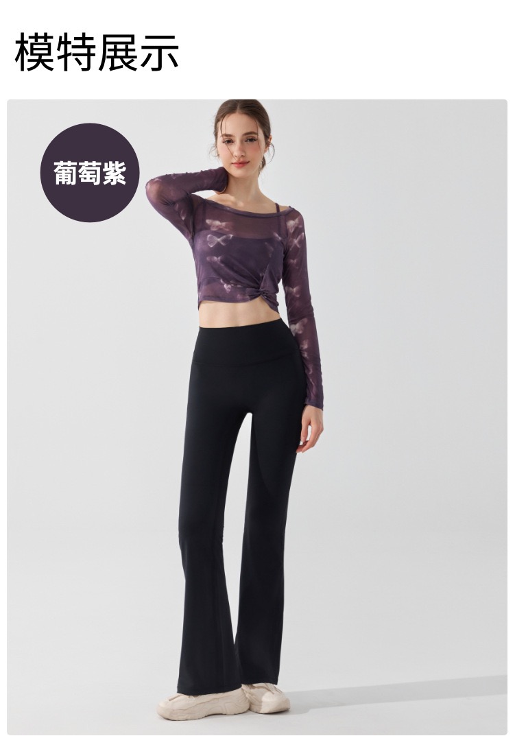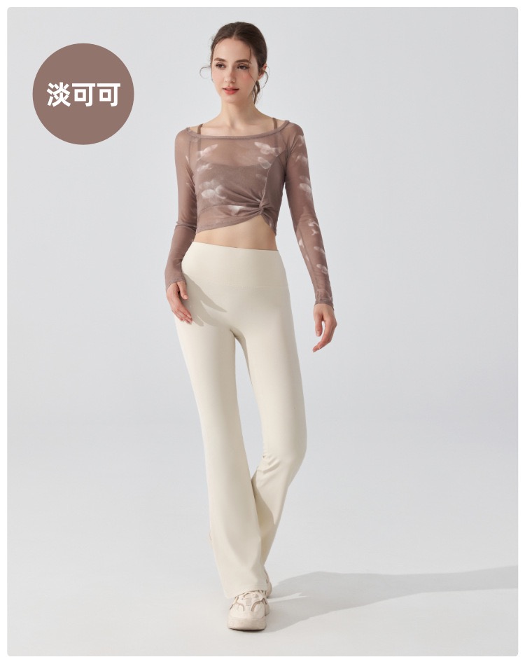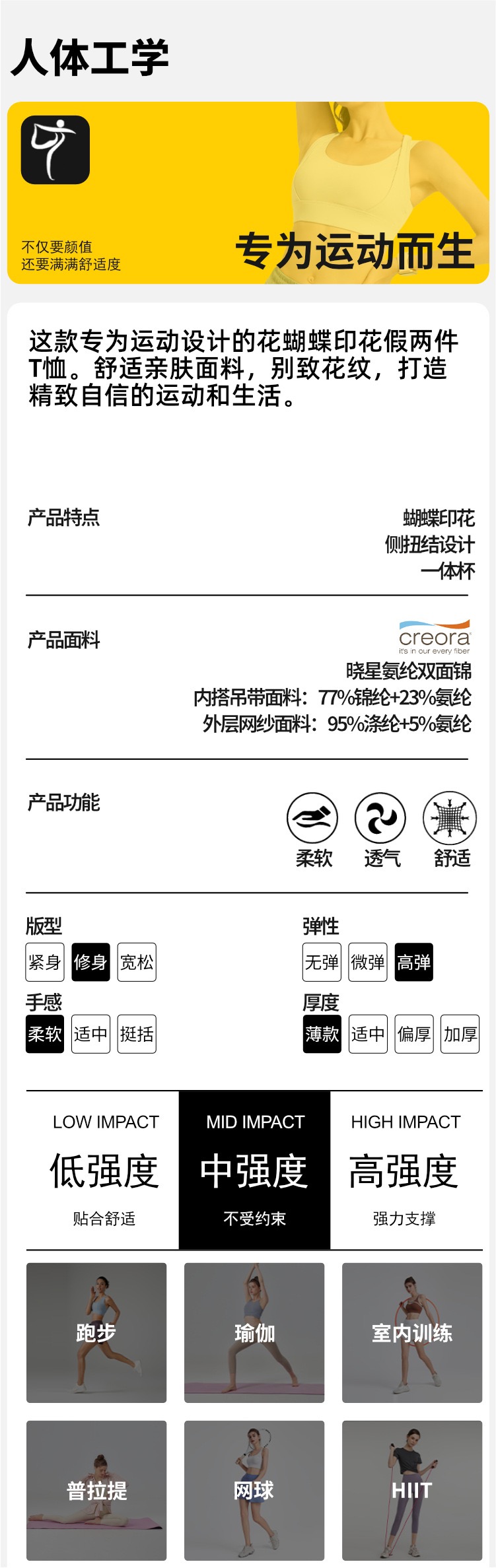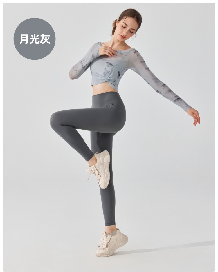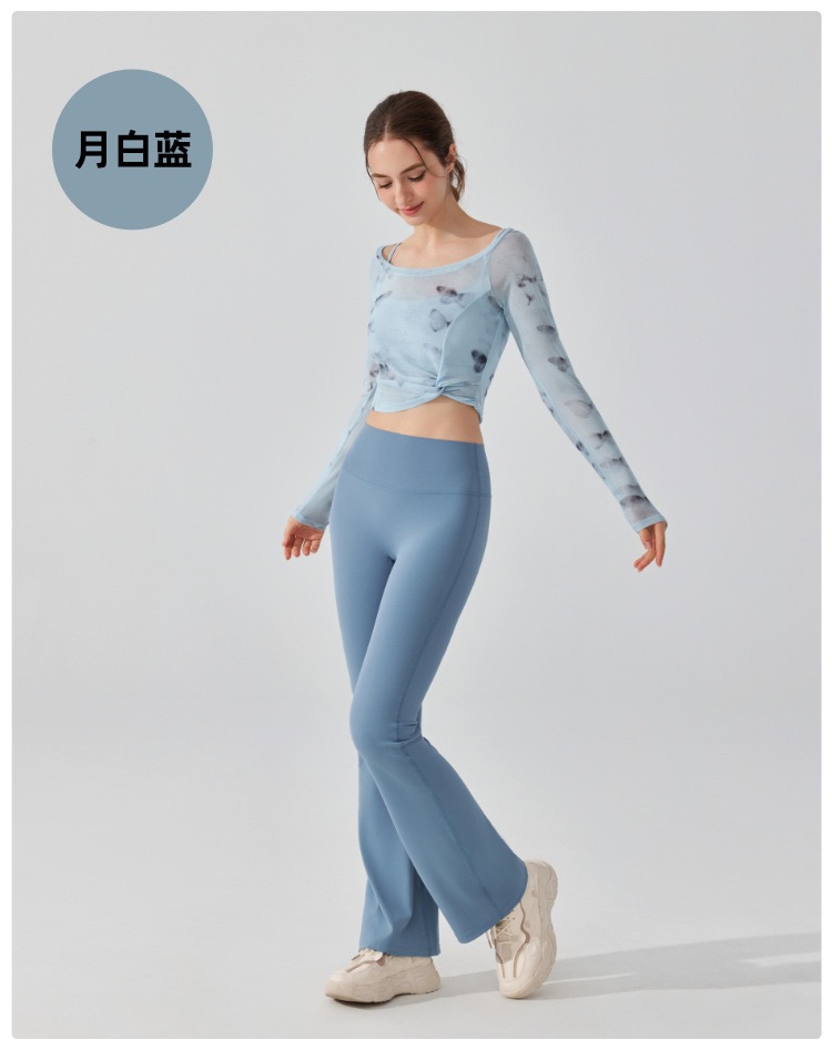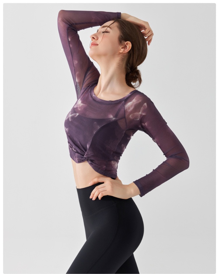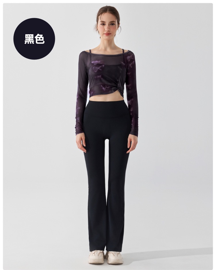 新款假两件蝴蝶网纱运动普拉提瑜伽服长袖固定式胸垫速干罩衫JL YC337