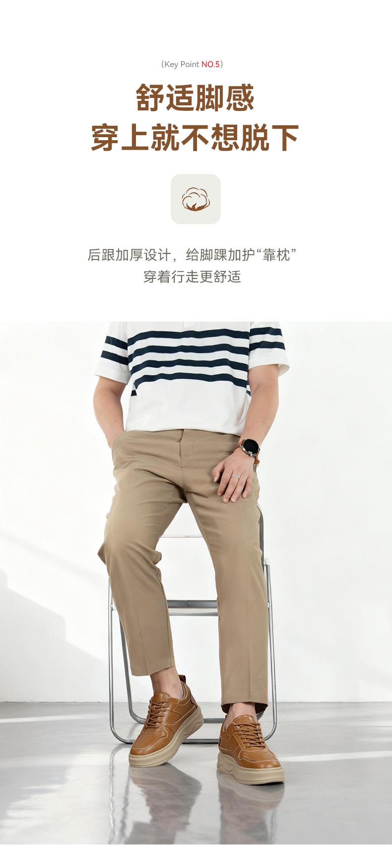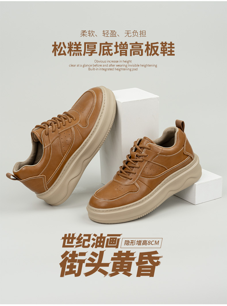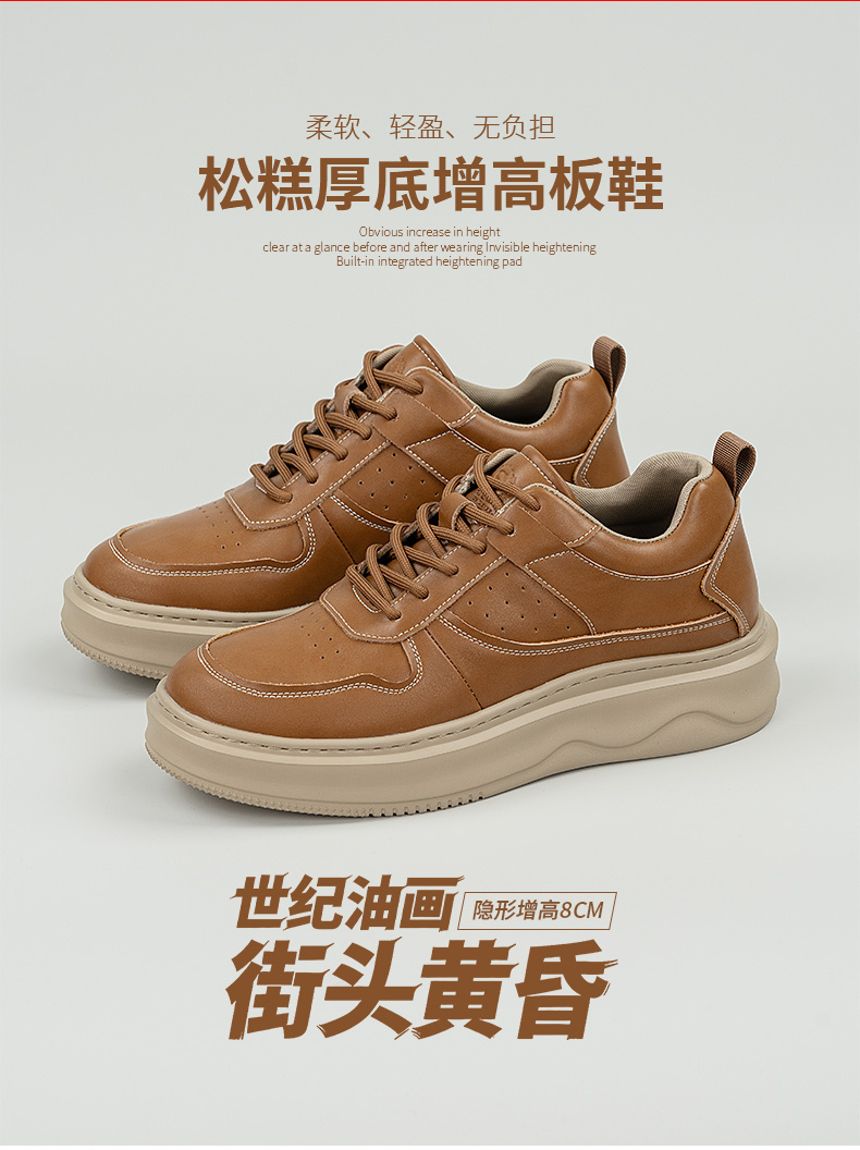 舒乐高鞋子男款增高鞋8cm男鞋透气板鞋休闲鞋厚底棕色鞋男