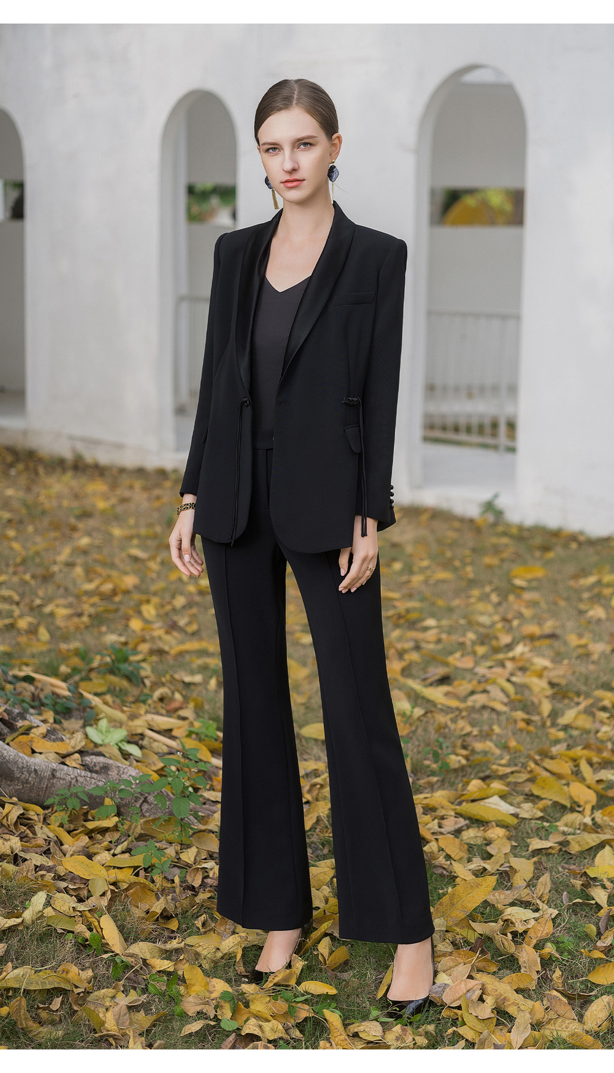 AD新中式国风西装外套女新款高级感醋酸流苏盘扣西服阔腿裤套装春