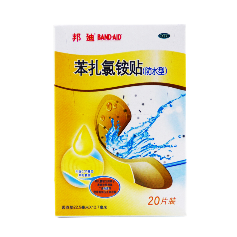 邦迪 苯扎氯铵贴 防水型 20片/盒 用于小创伤 擦伤等患处