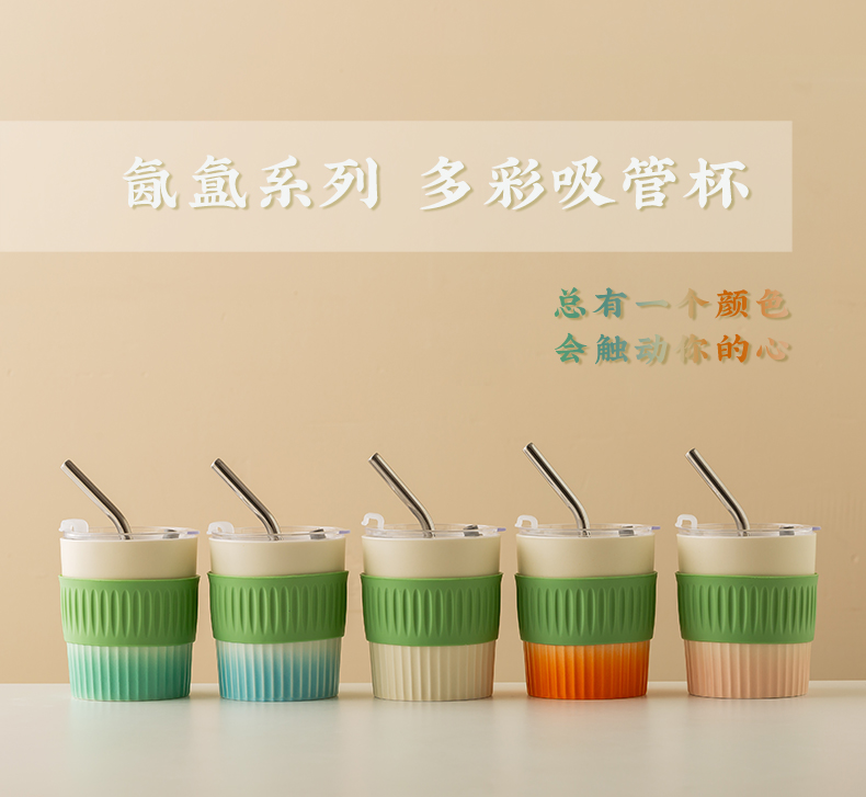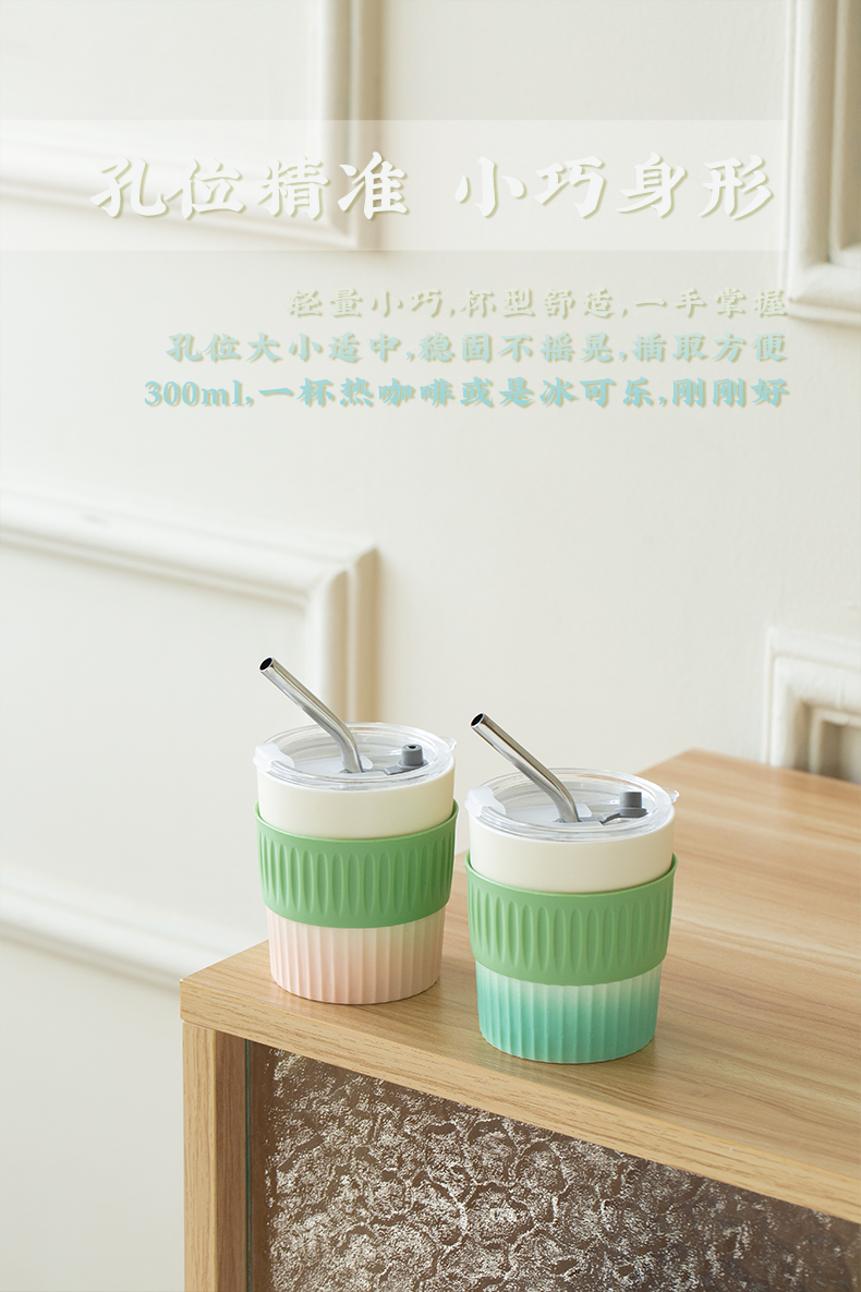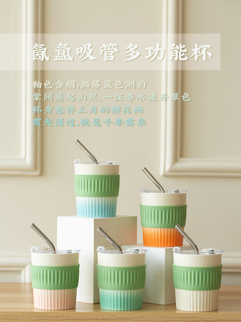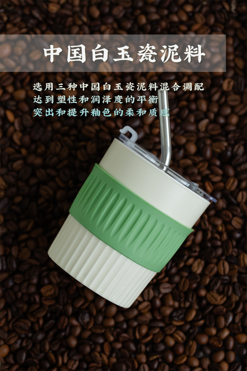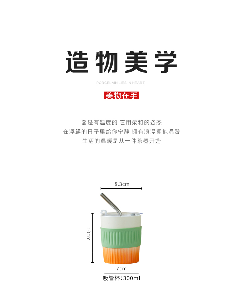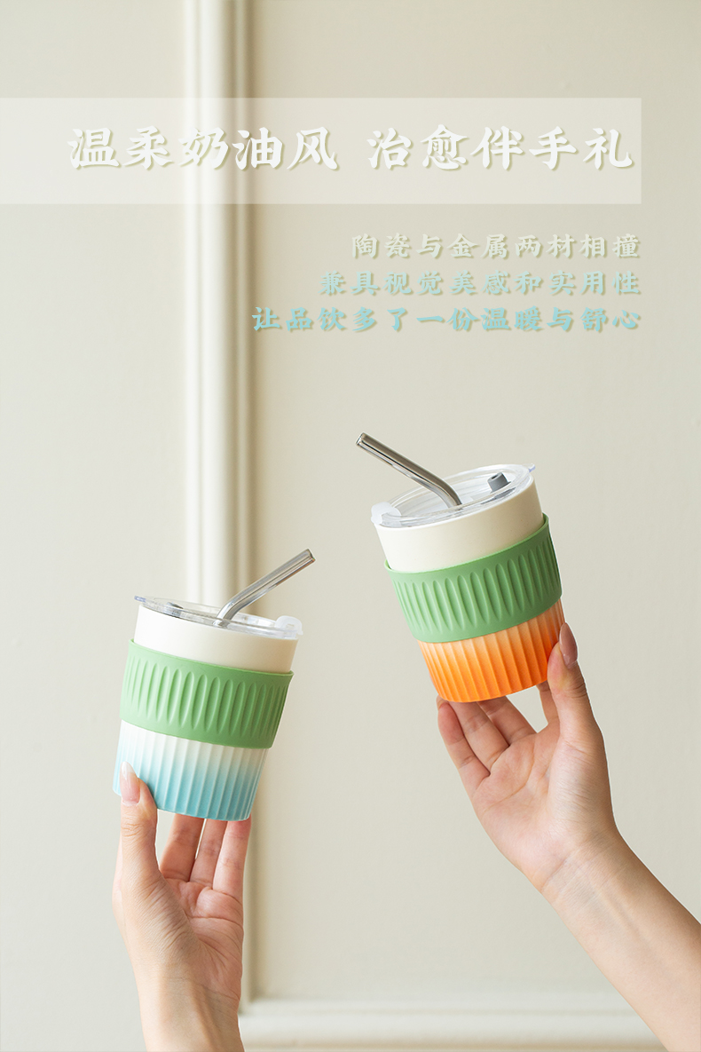 【为思礼】氤氲多彩陶瓷杯 办公室吸管杯 高颜值咖啡杯 女生伴手礼 家用茶水分离杯 奶油风陶瓷马克杯