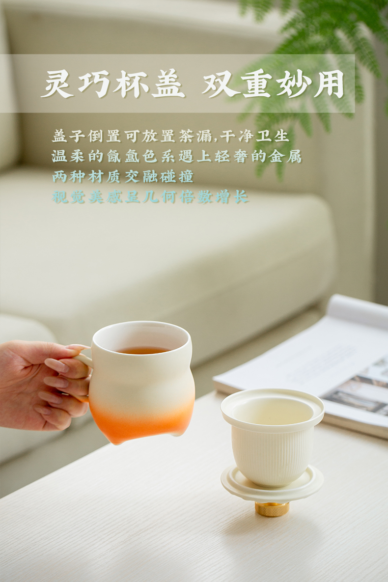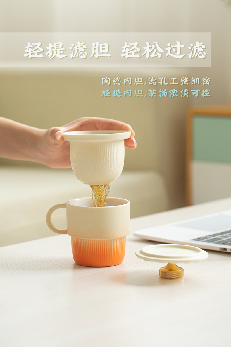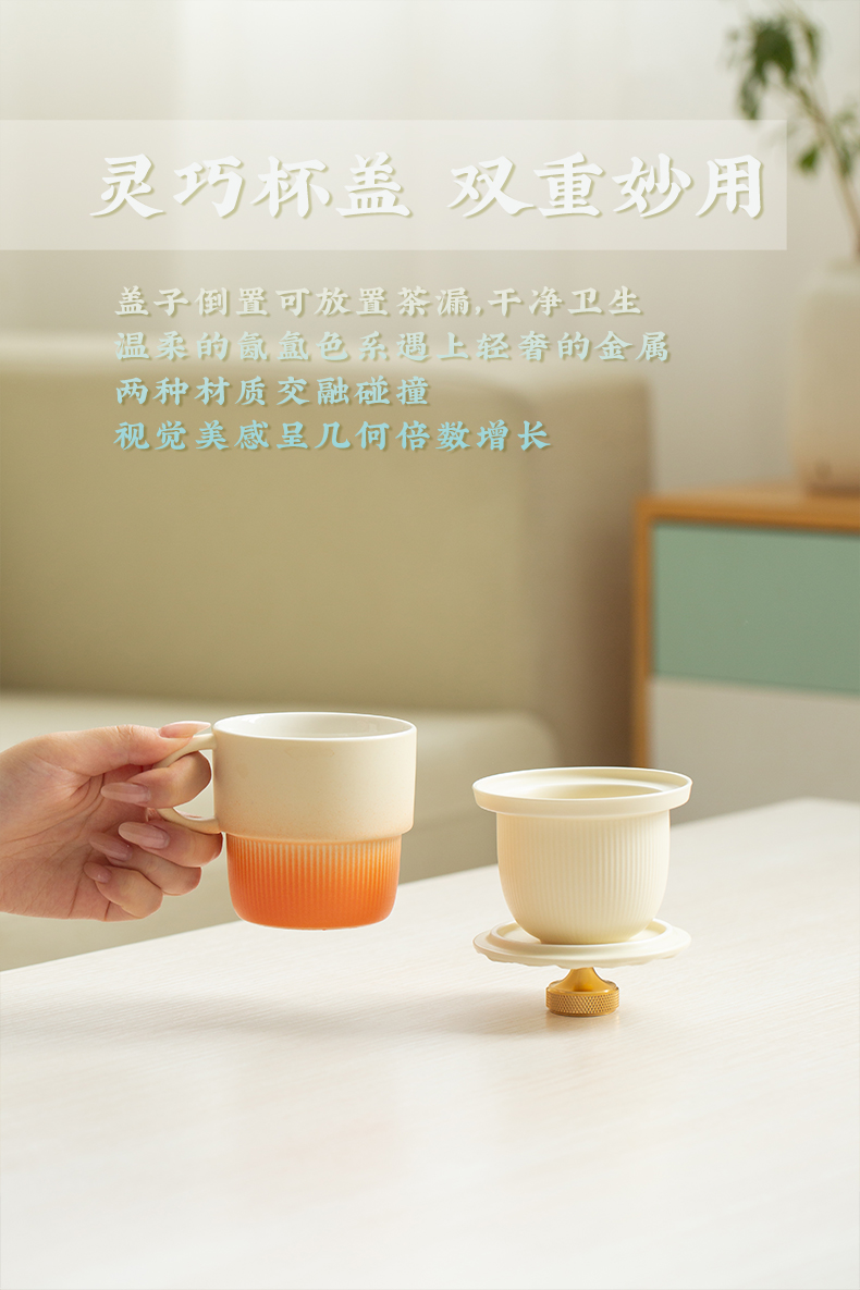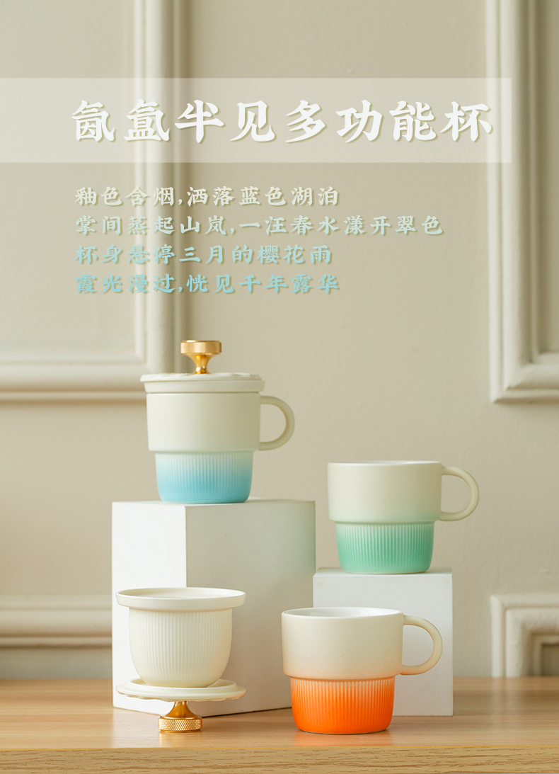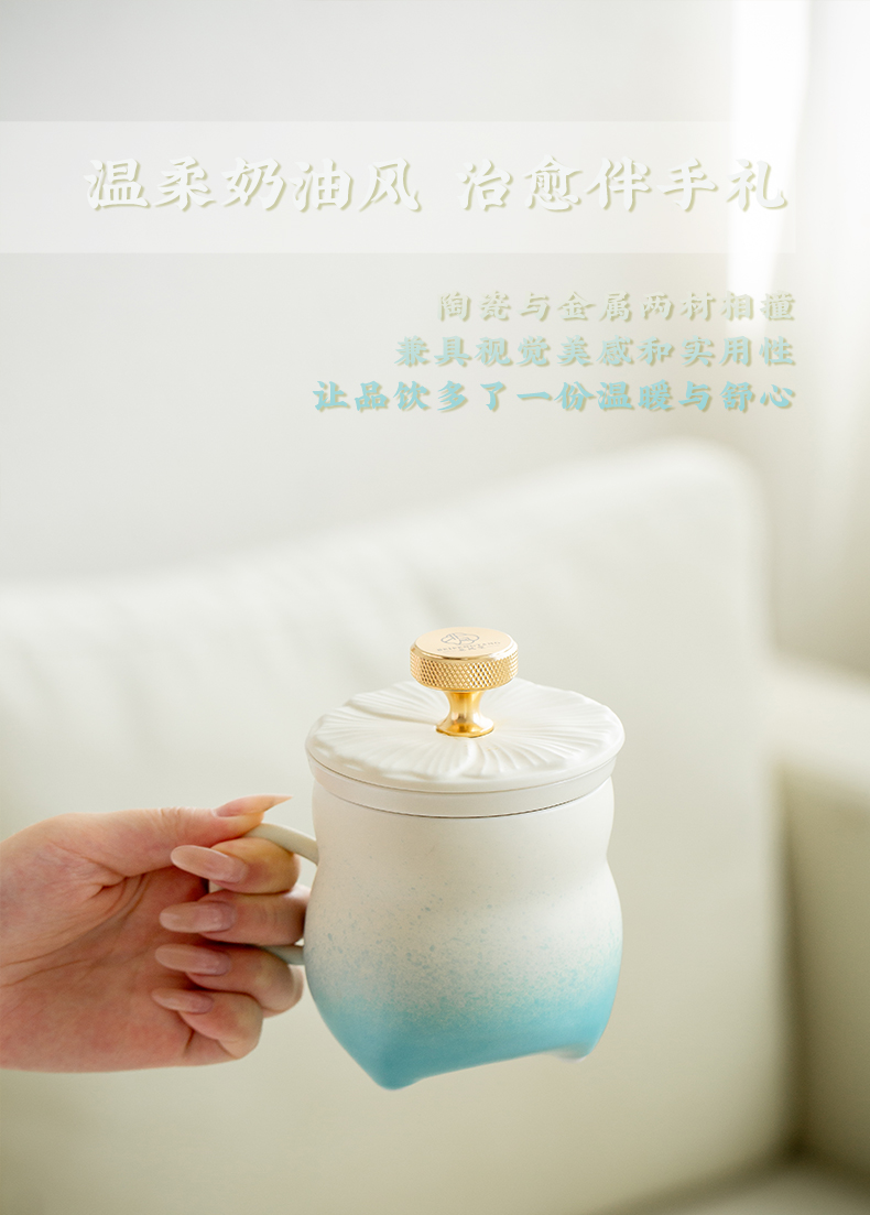 【为思礼】氤氲多彩陶瓷杯 办公室吸管杯 高颜值咖啡杯 女生伴手礼 家用茶水分离杯 奶油风陶瓷马克杯