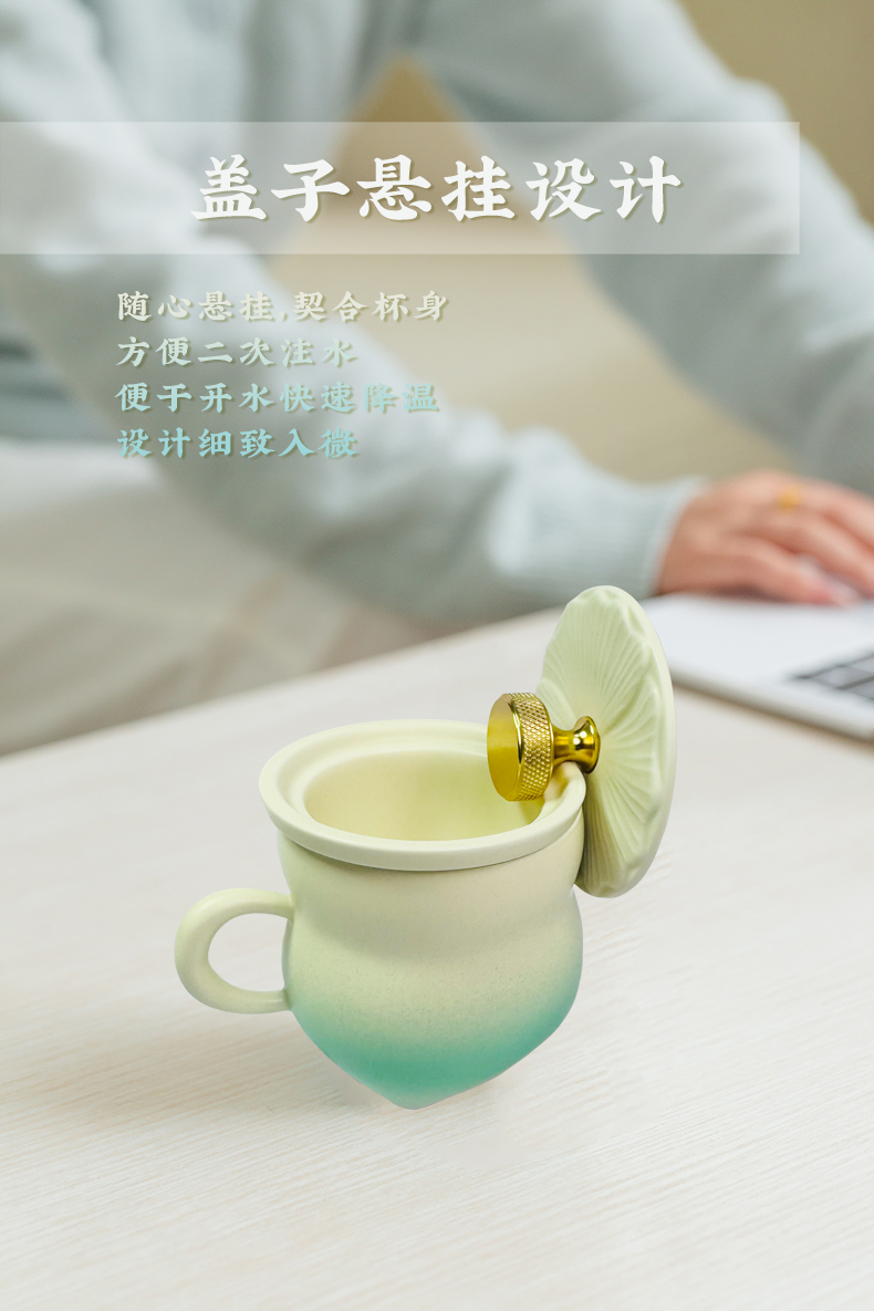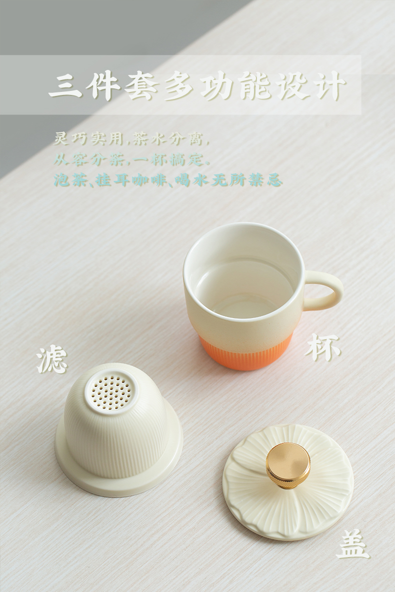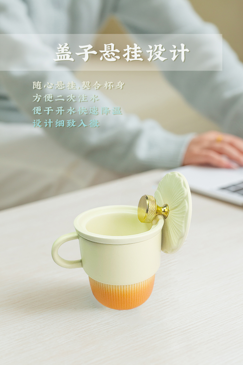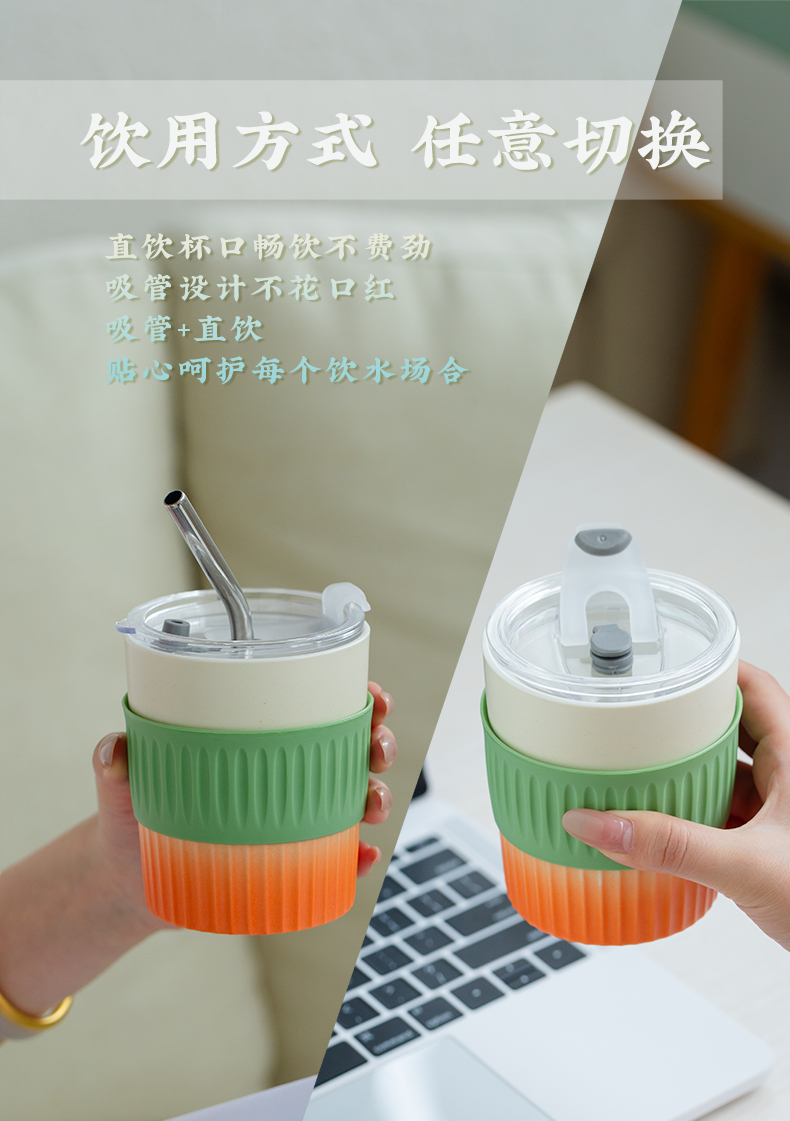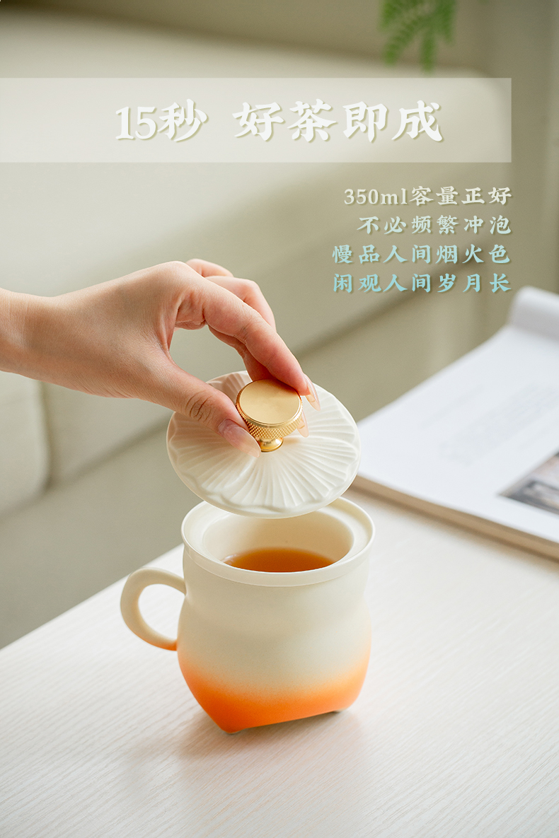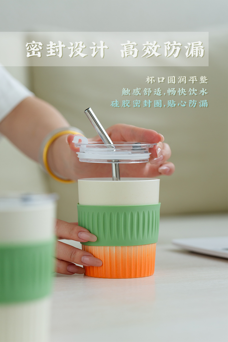 【为思礼】氤氲多彩陶瓷杯 办公室吸管杯 高颜值咖啡杯 女生伴手礼 家用茶水分离杯 奶油风陶瓷马克杯