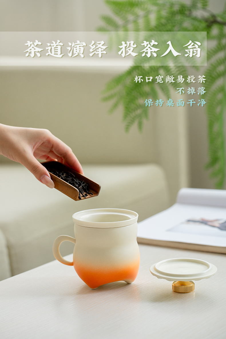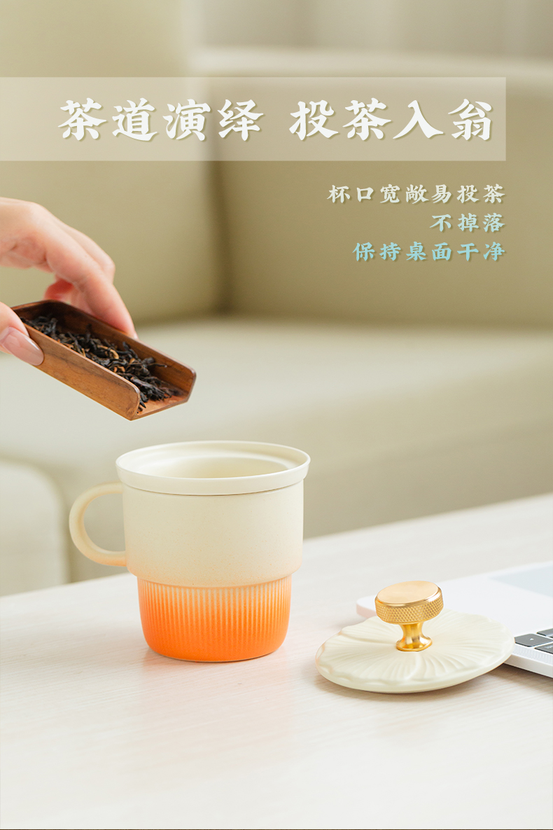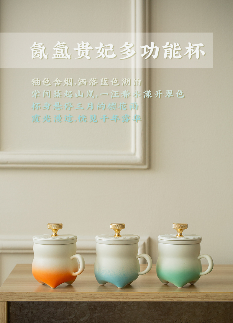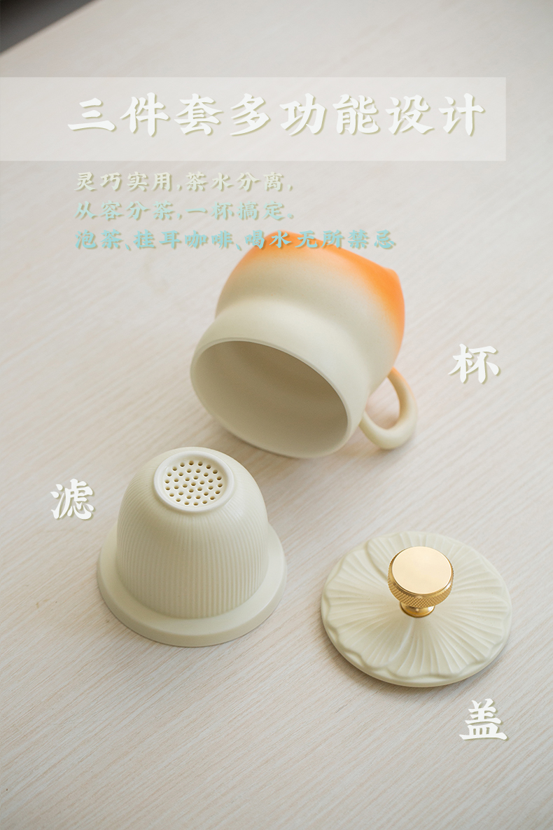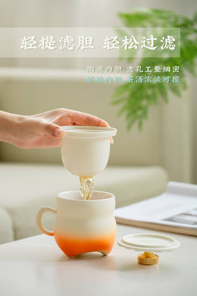【为思礼】氤氲多彩陶瓷杯 办公室吸管杯 高颜值咖啡杯 女生伴手礼 家用茶水分离杯 奶油风陶瓷马克杯