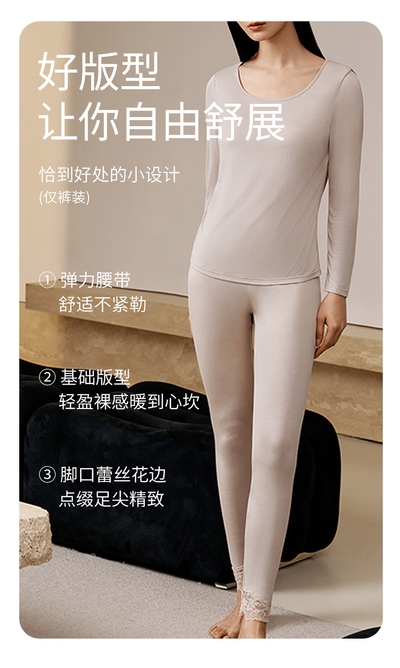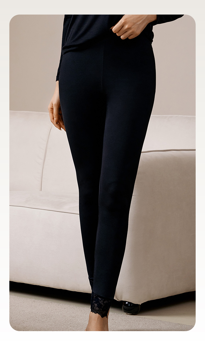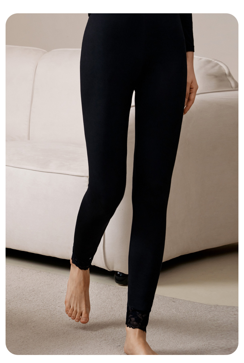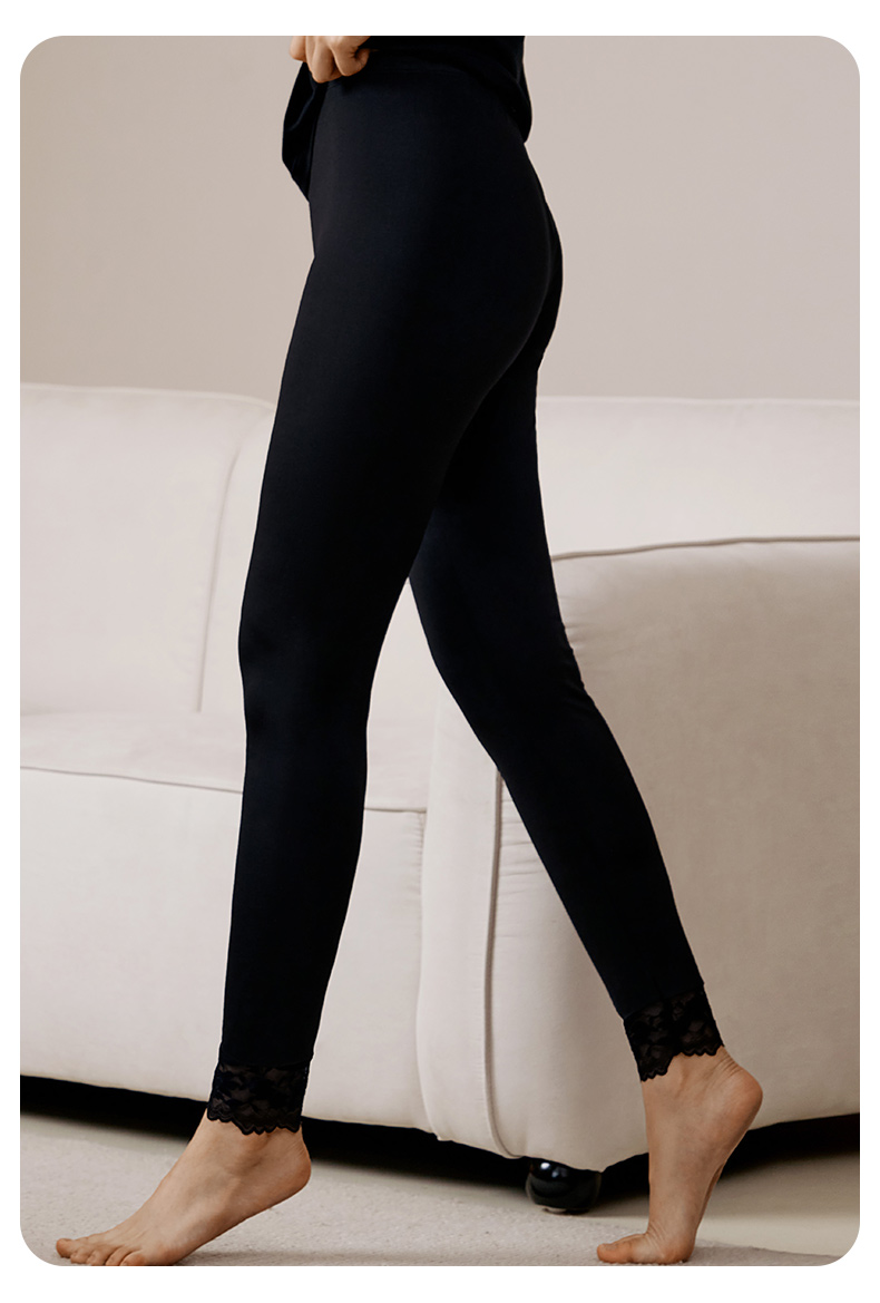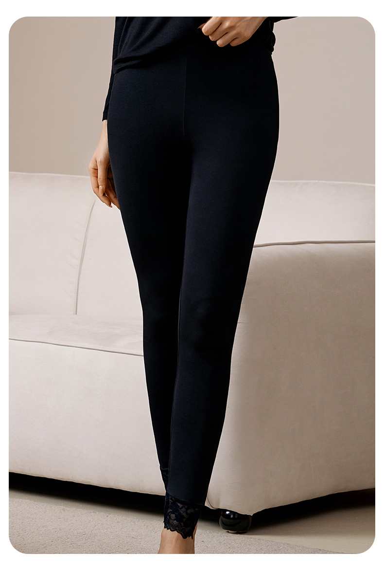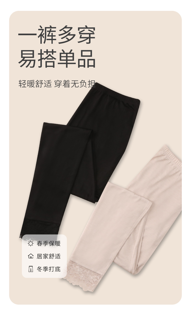 金三塔100%桑蚕丝打底裤秋冬蕾丝拼接柔软亲肤真丝保暖家居裤女 NZFEC901