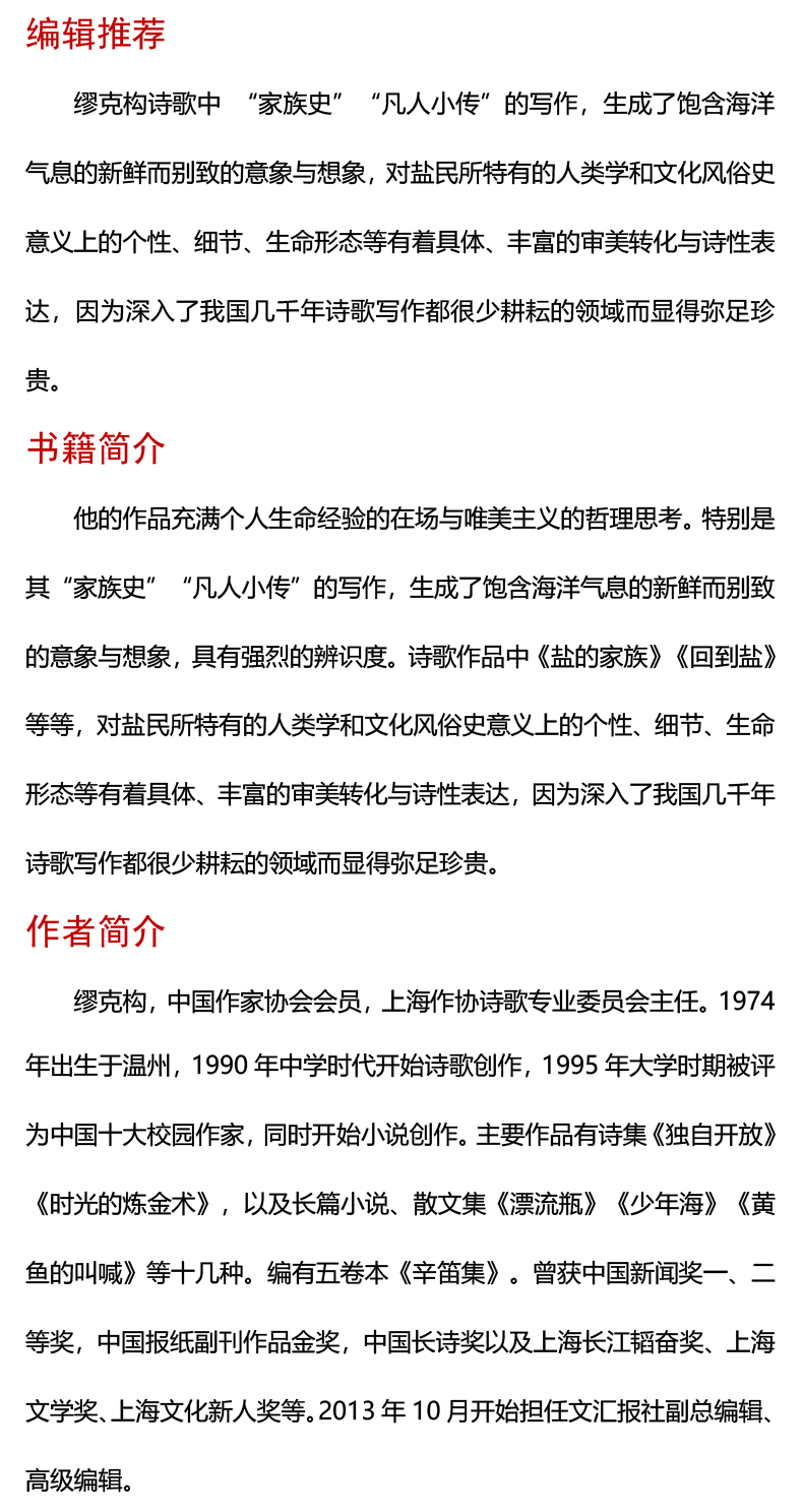 盐的家族 缪克构著精装版 诗歌作品精选集 海洋气息新鲜别致的意象与想象 人类学风俗史价值 正版 华东师范大学出版社
