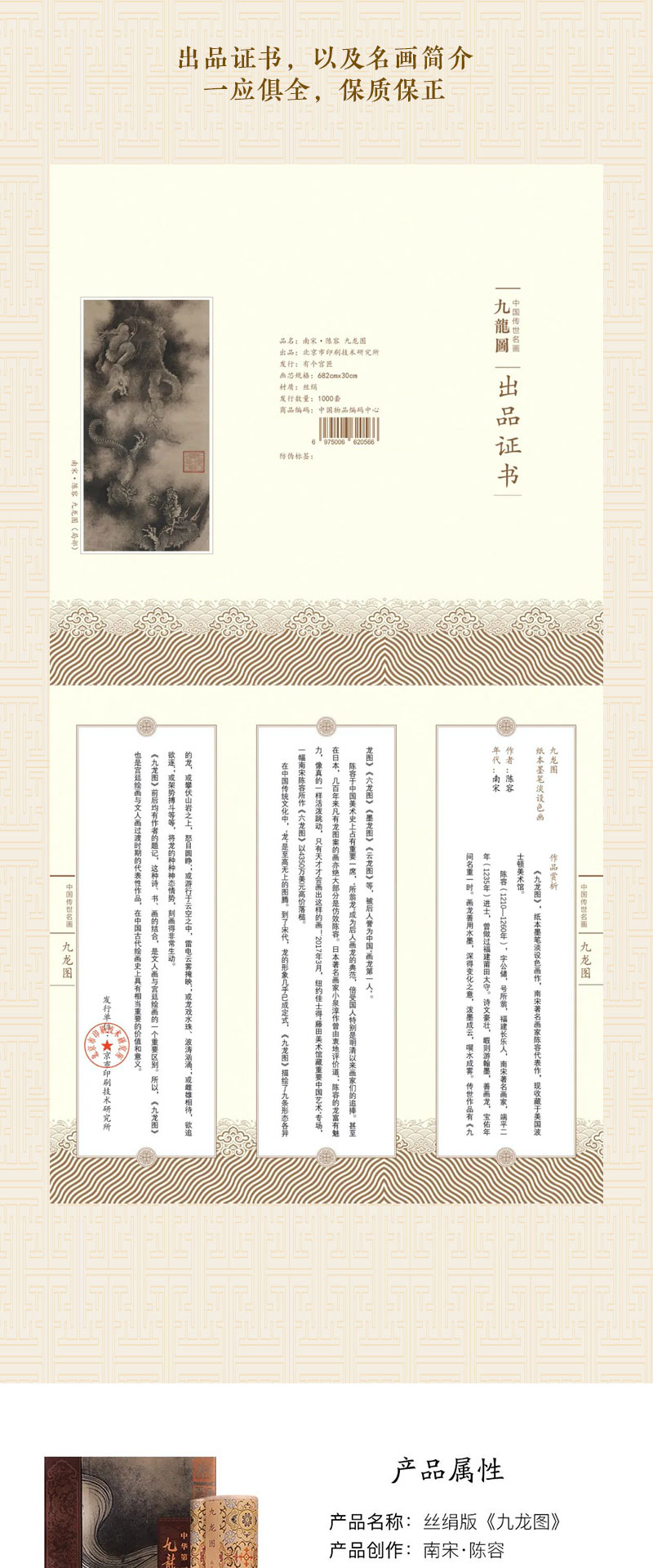 (现货发售)南宋·陈容《九龙图》超清复刻还原 丝绢珍藏版