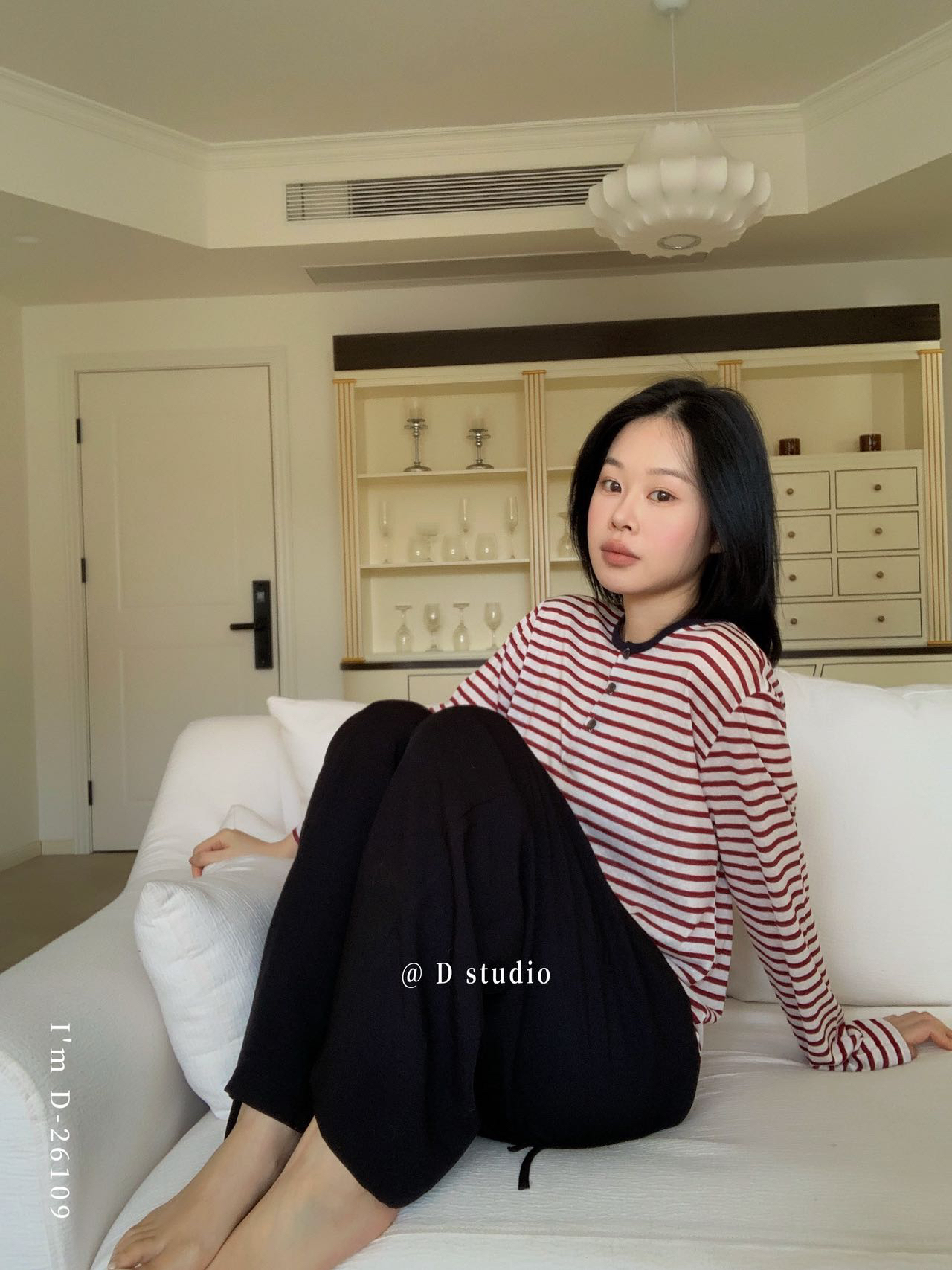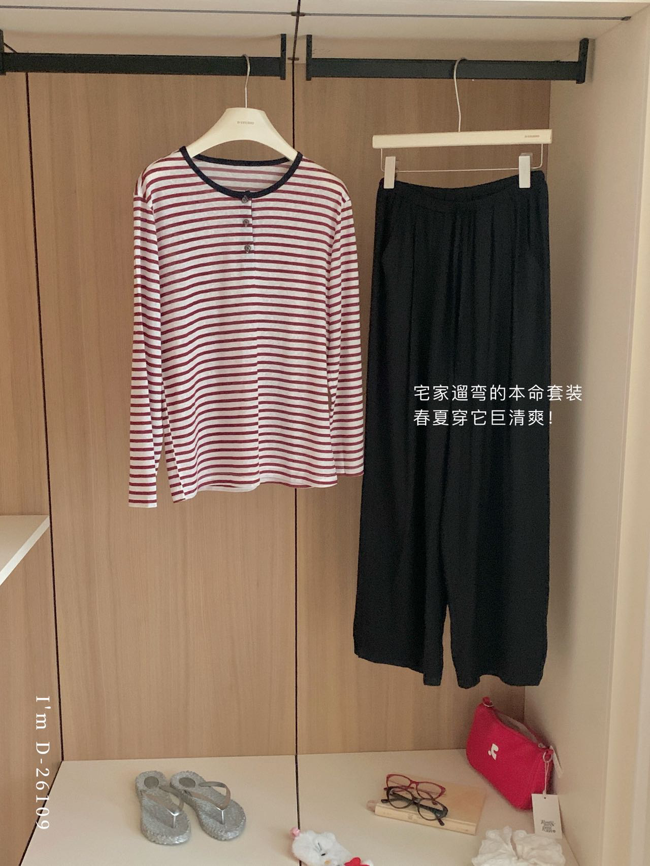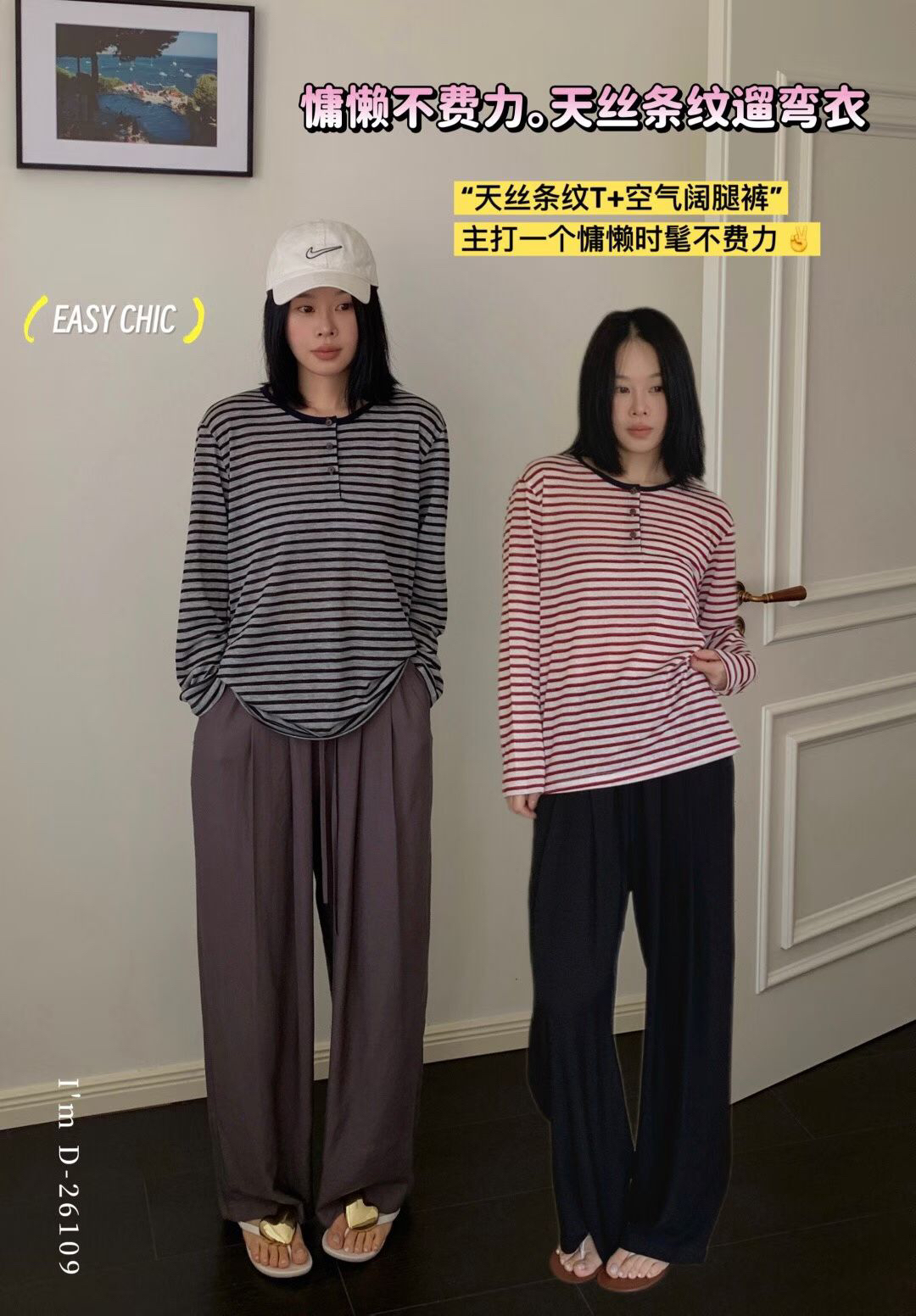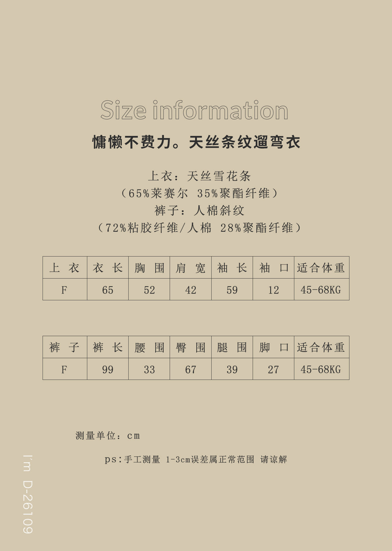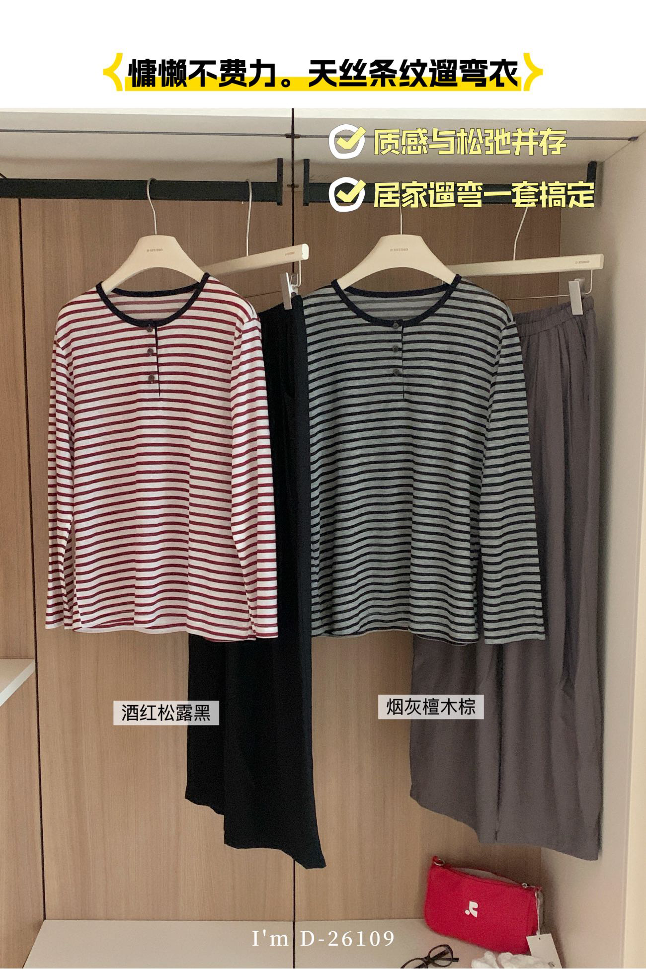 天丝条纹遛弯衣~天丝条纹T+空气阔家居服腿裤睡衣套装 柔滑如丝 吸汗透气 睡觉家居外出休闲两件套