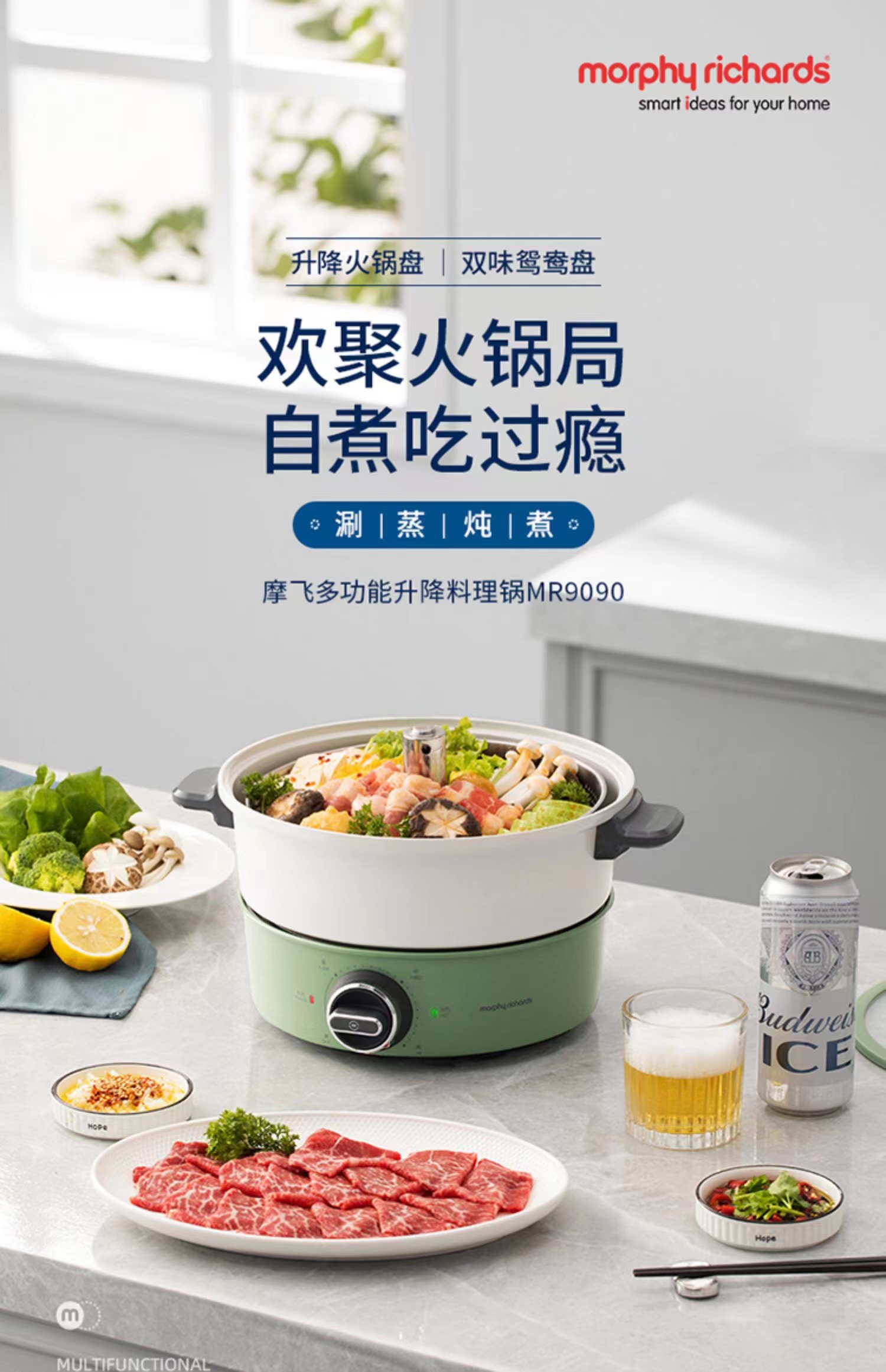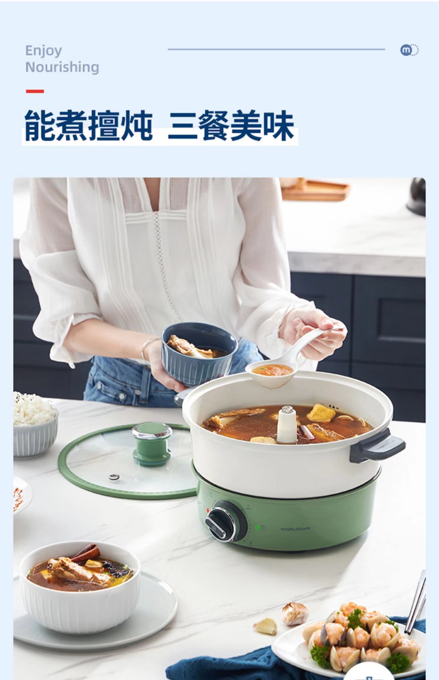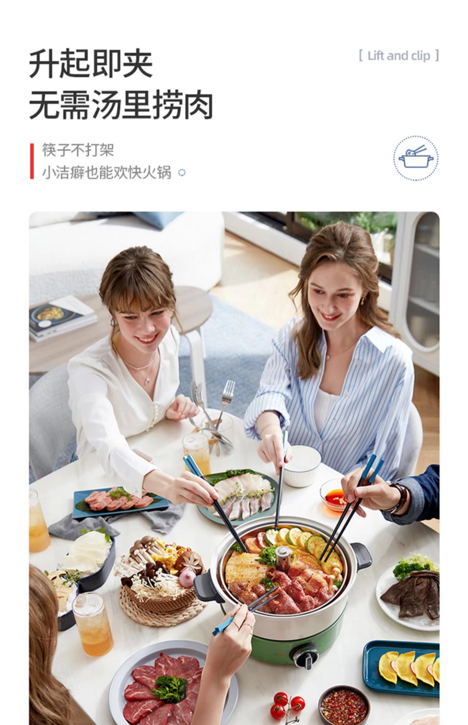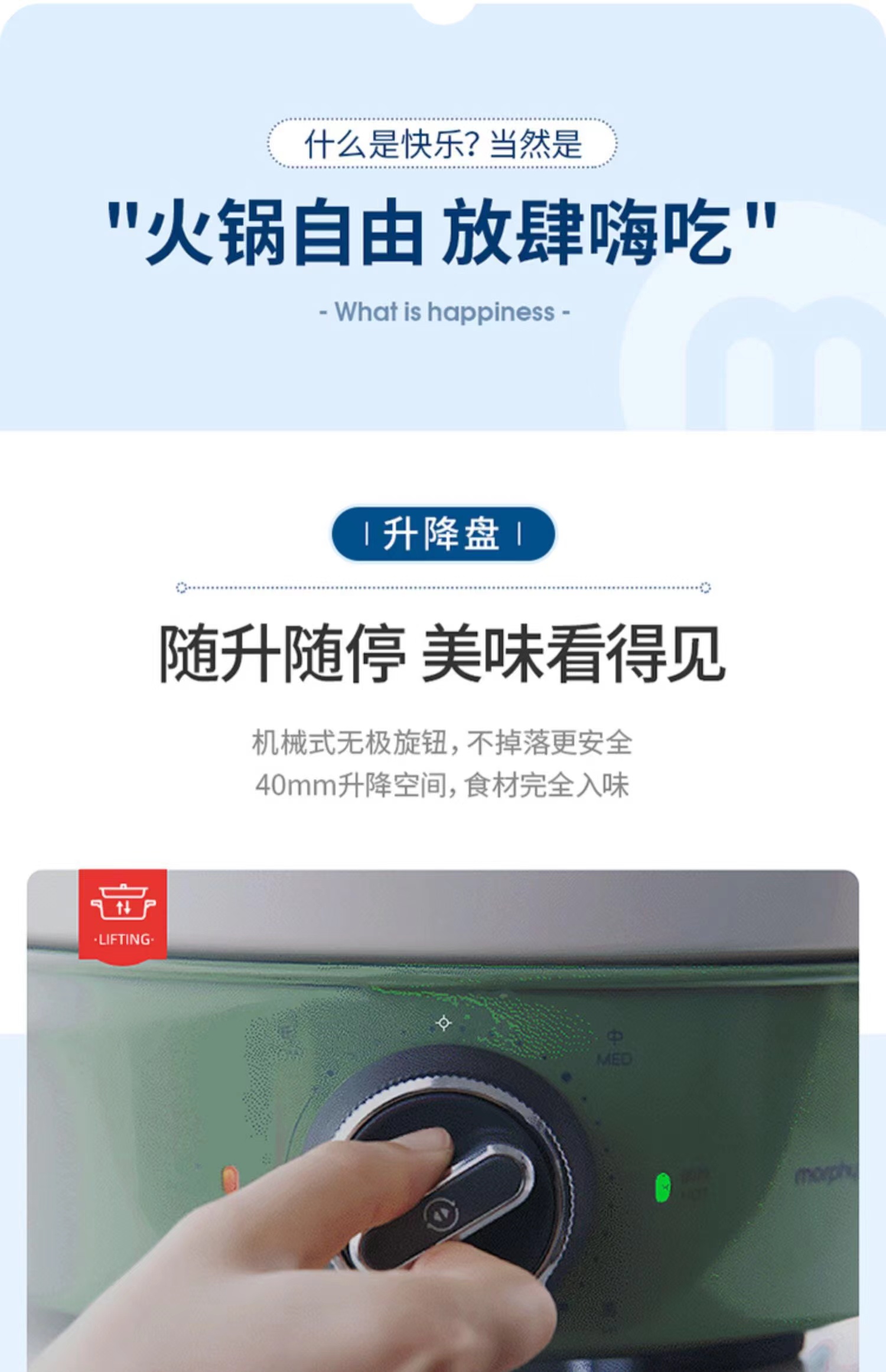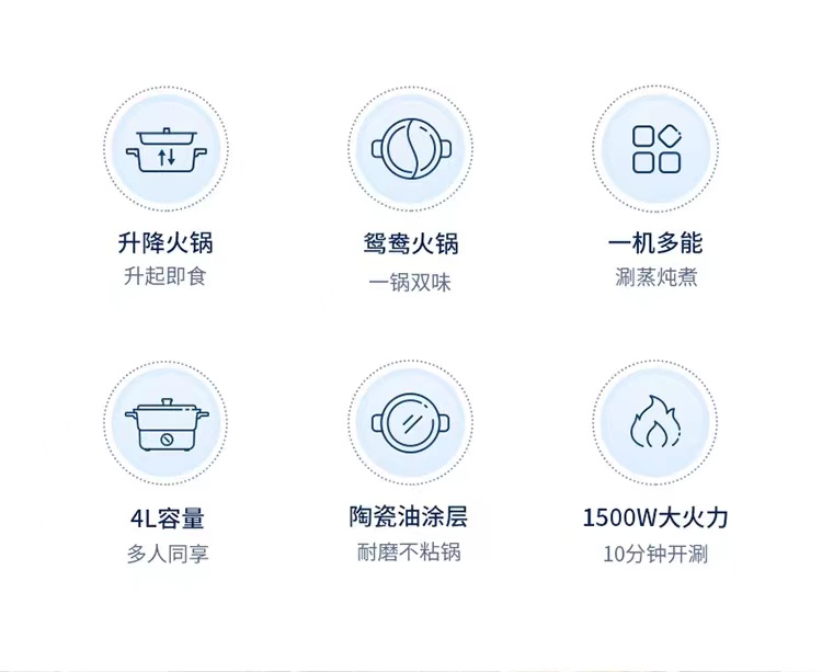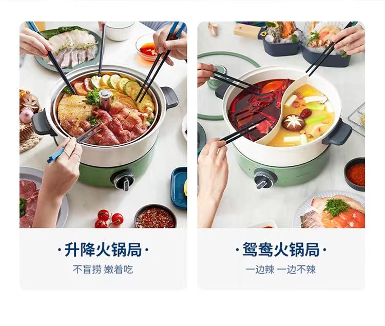 【摩飞升降电热火锅分体式多功能料理锅 】家用鸳鸯电火锅