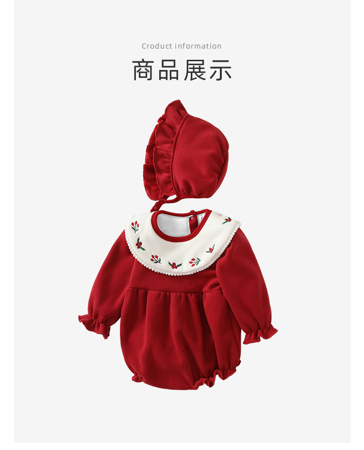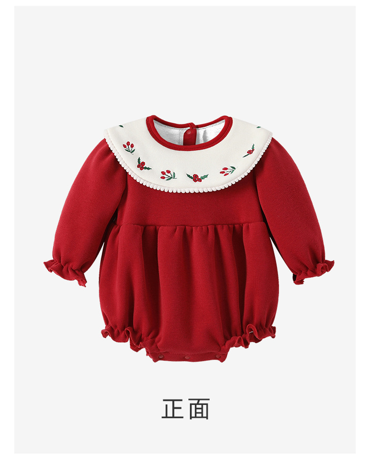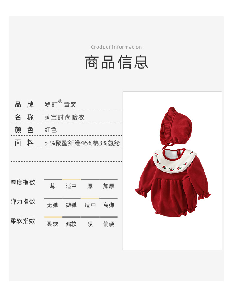 【萌宝时尚长袖哈衣】宝宝衣服秋冬2023新生儿包屁衣圆领拼色加绒保暖婴儿衣服 百天服装