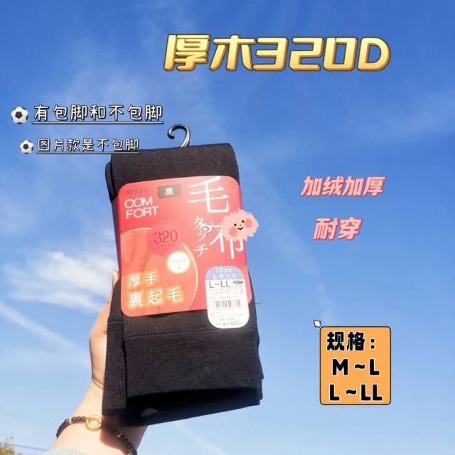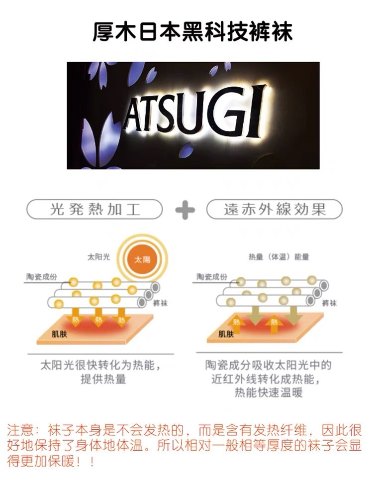 日本ATSUGI厚木发热打底裤秋冬320D天鹅绒加厚高腰保暖连裤袜打底裤