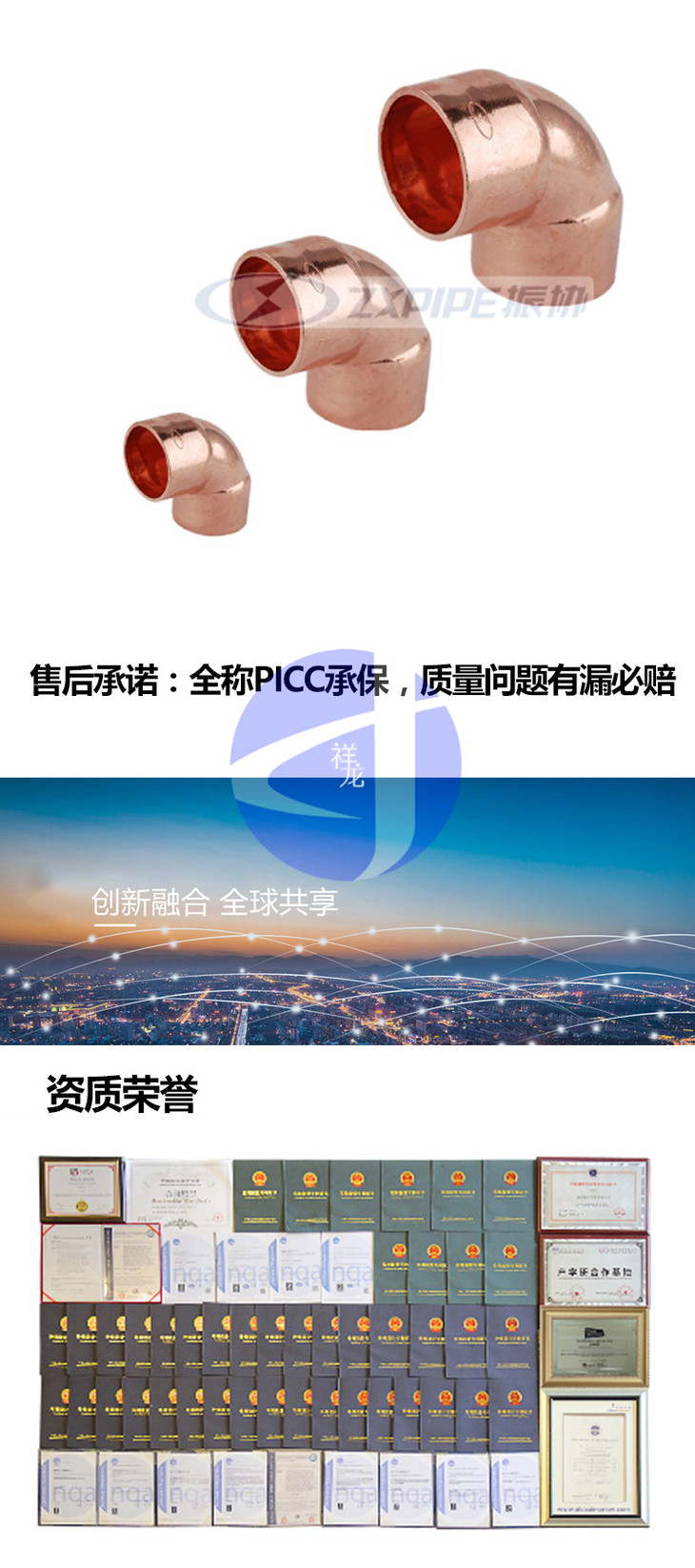 商品描述:江欣Φ35*1.2标厚铜弯头90°商品代码15207