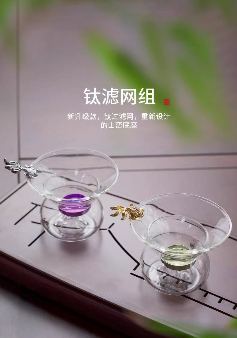 永利汇禾器悠游钛滤网金鱼银鱼金龙银龙茶漏玻璃茶滤茶配件茶器