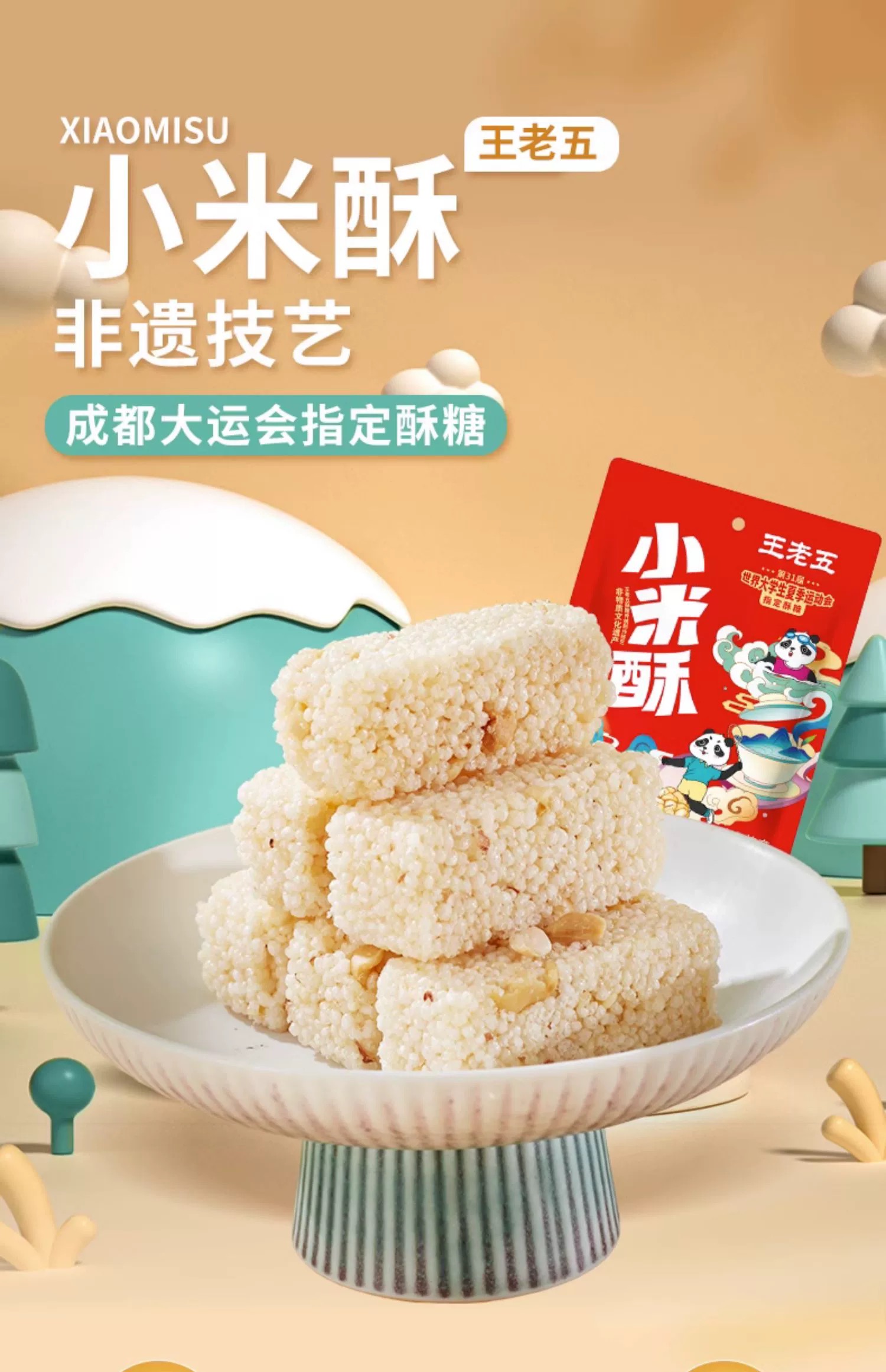 王老五小米酥258g米花酥米花糖四川特产小吃成都特产重庆花生酥糖