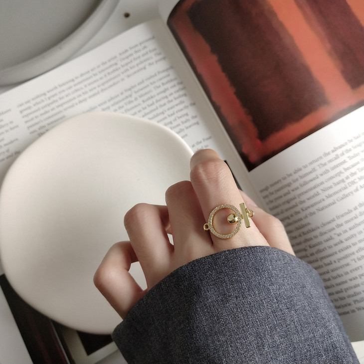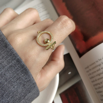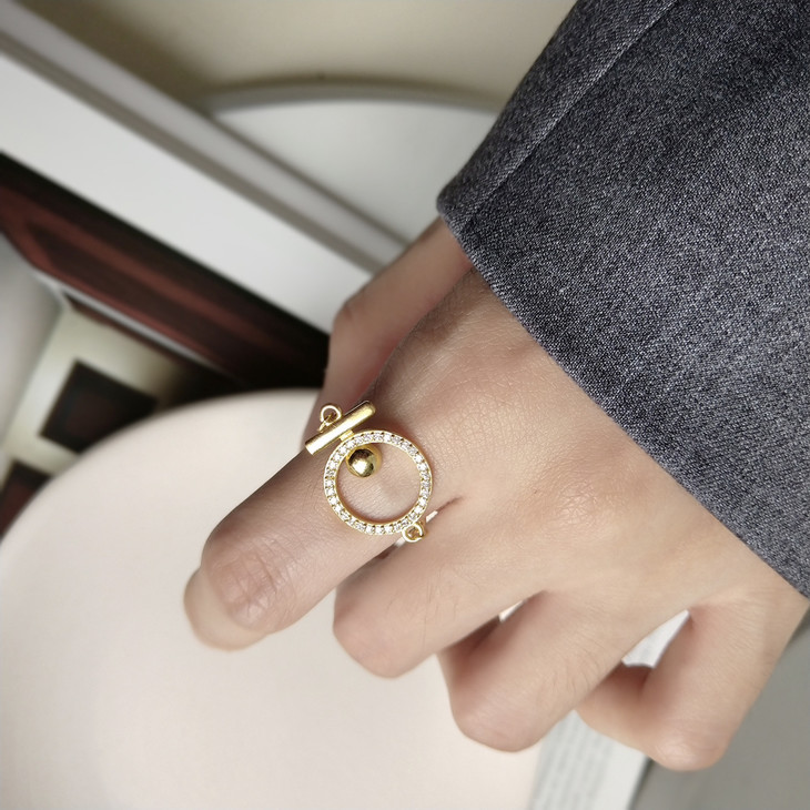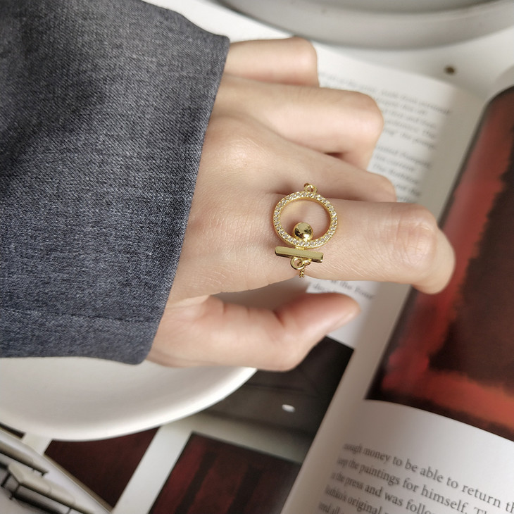 【首饰】925纯银指环金色戒简约百搭圆圈可调节戒指