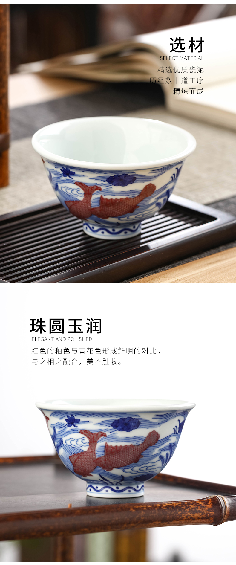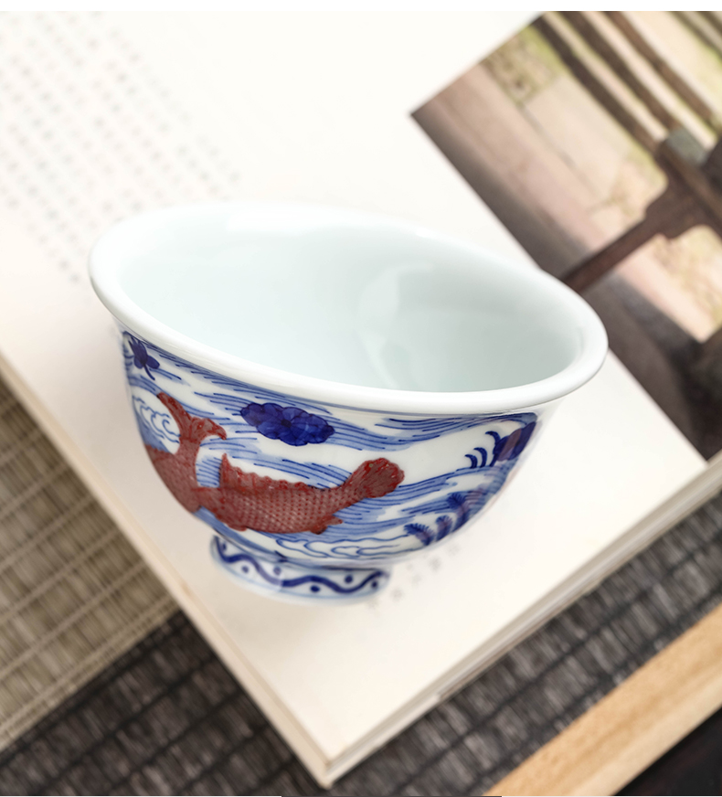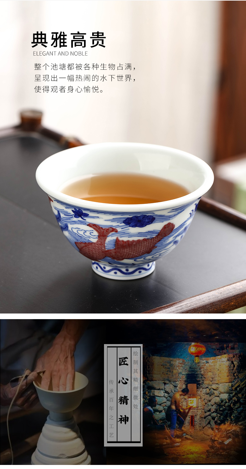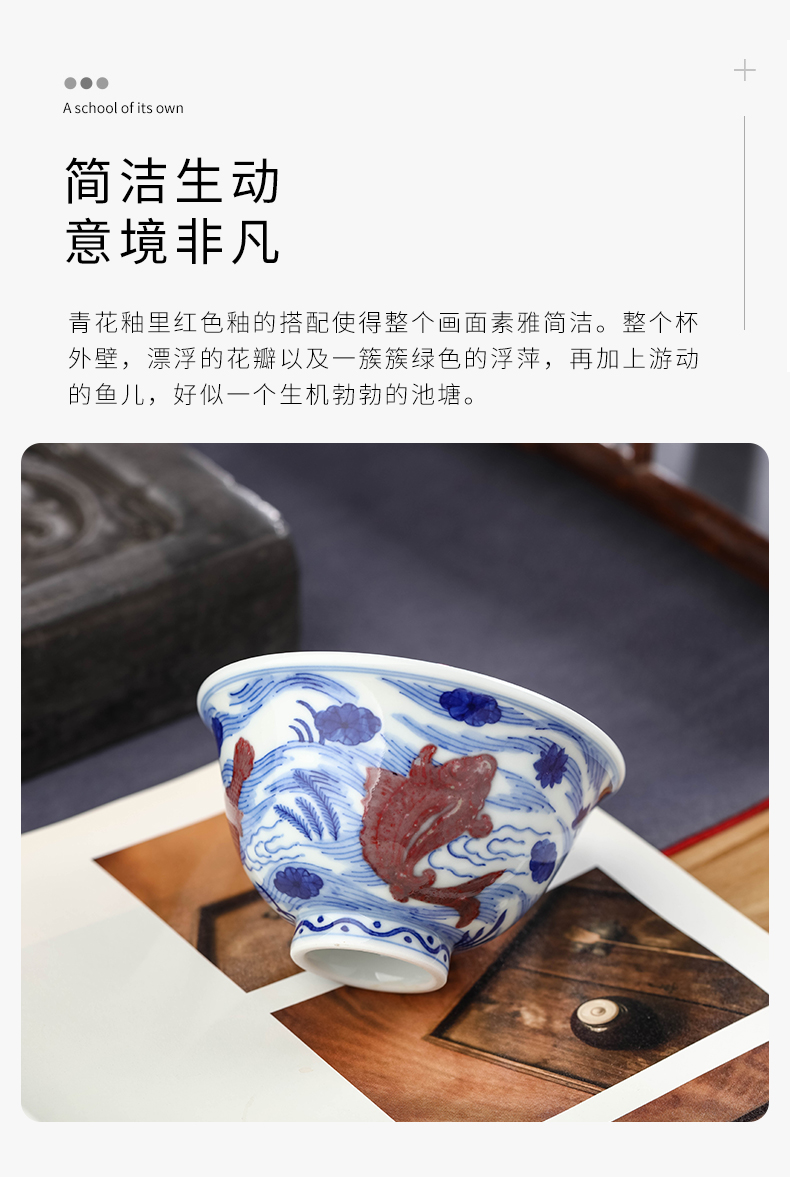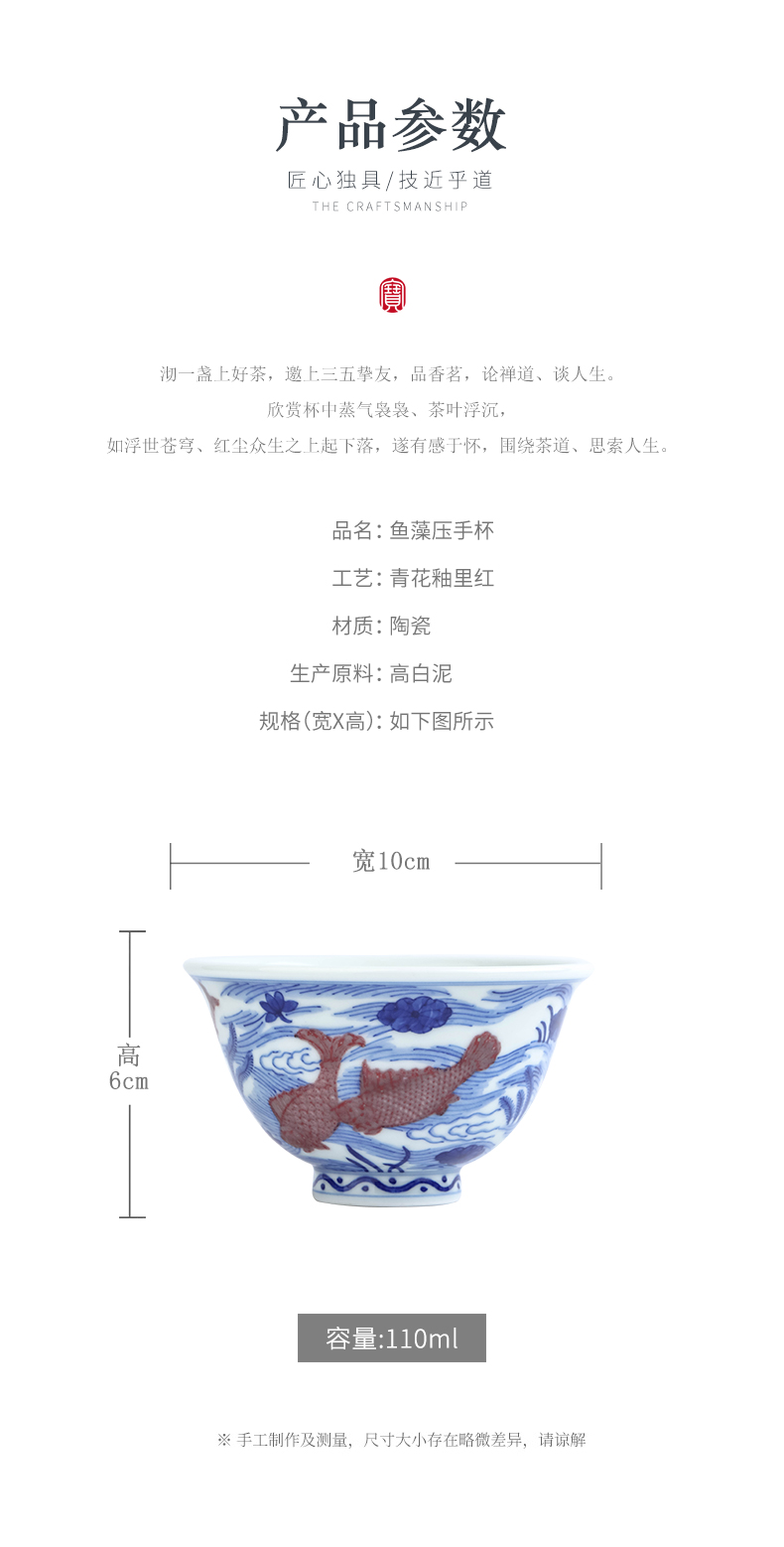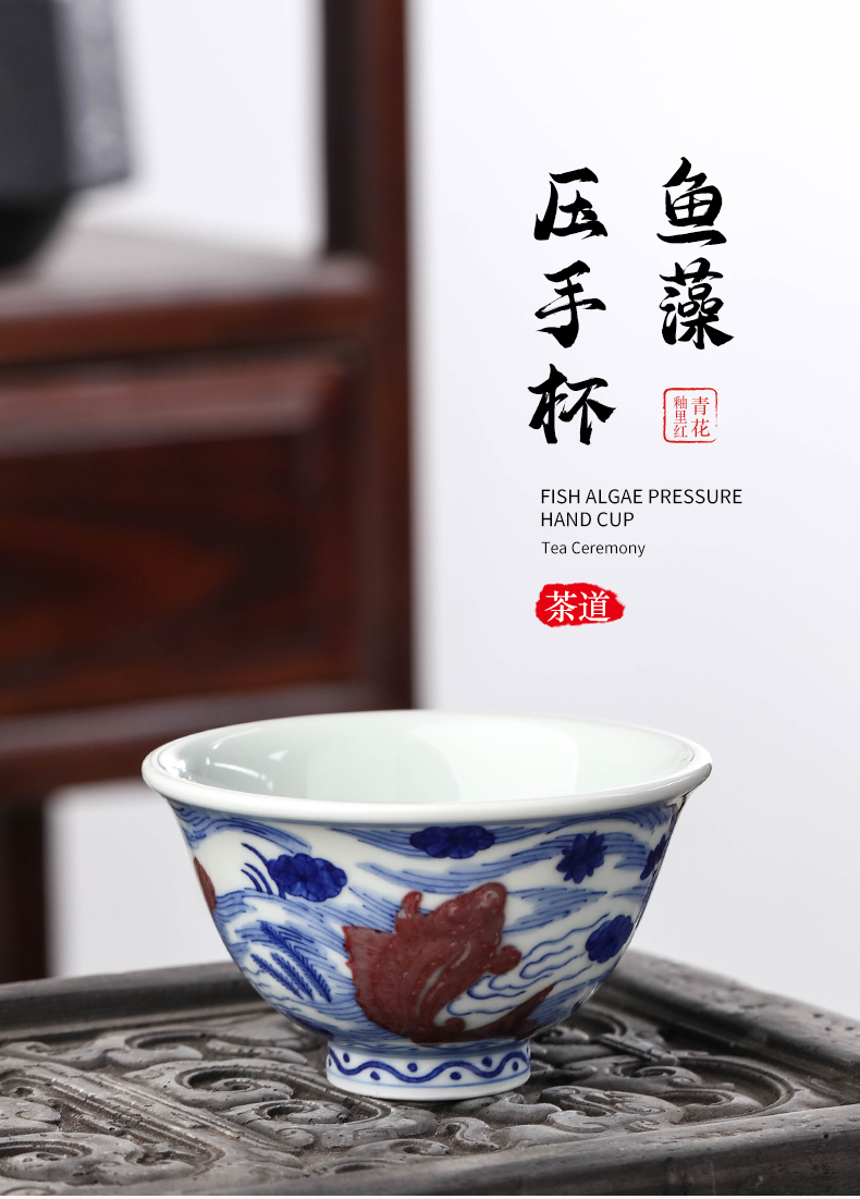 青花釉里红鱼藻压手杯