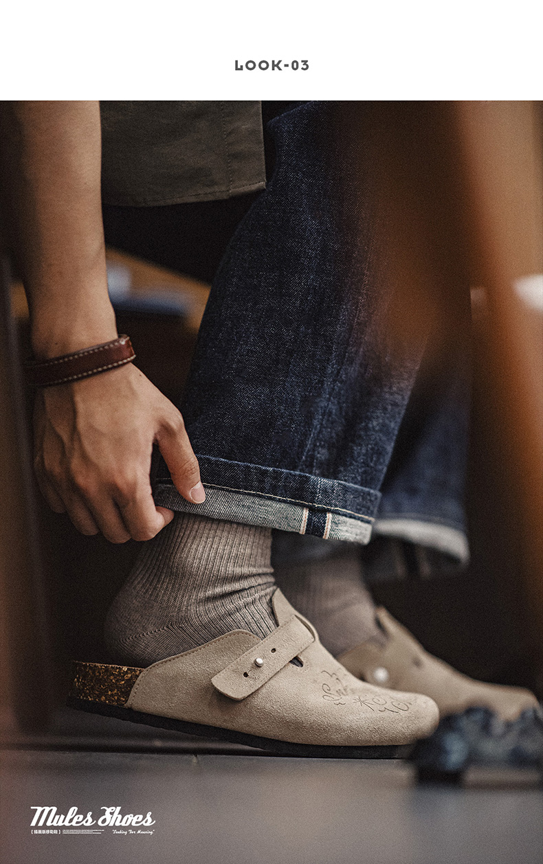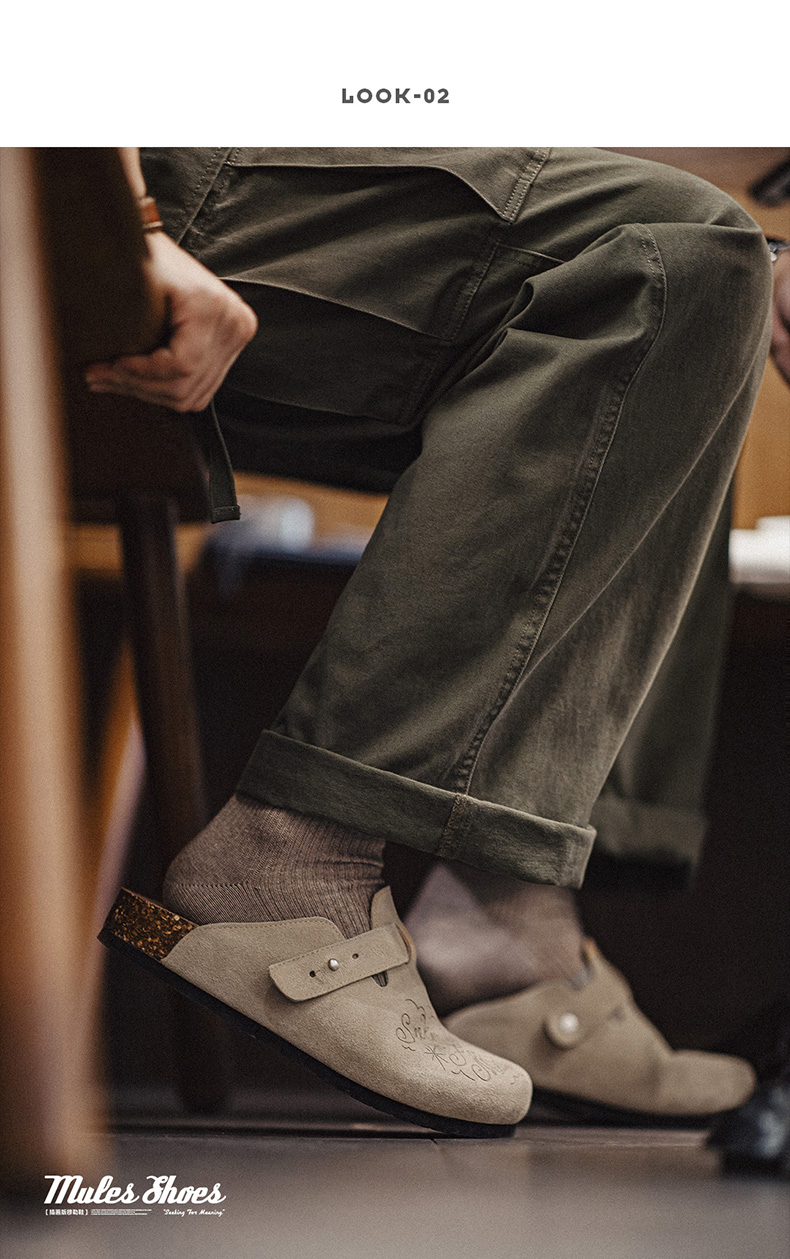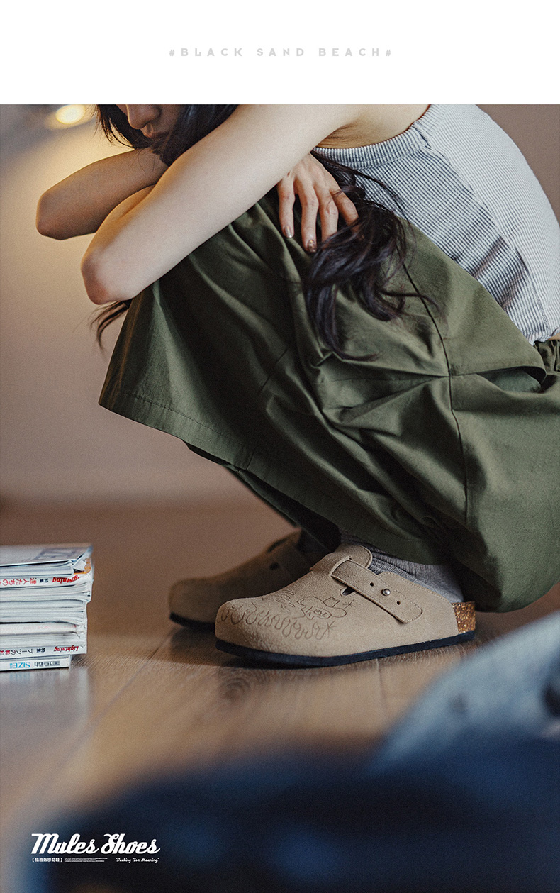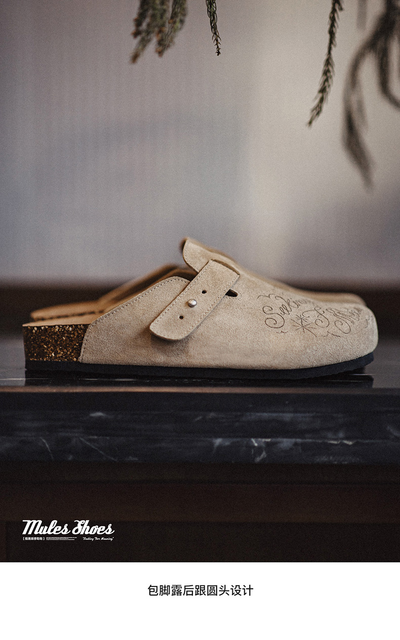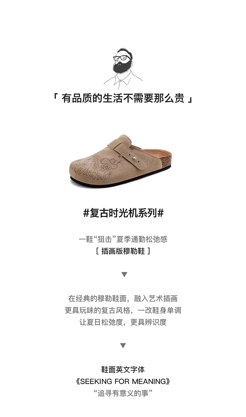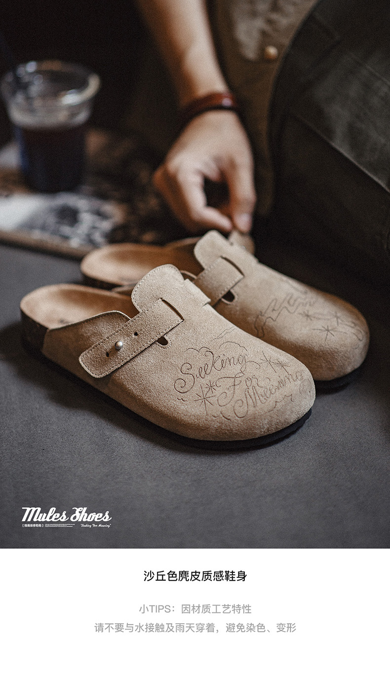 马登插画版穆勒鞋半拖男夏季新款厚底外穿钓鱼平底真皮包头凉拖鞋