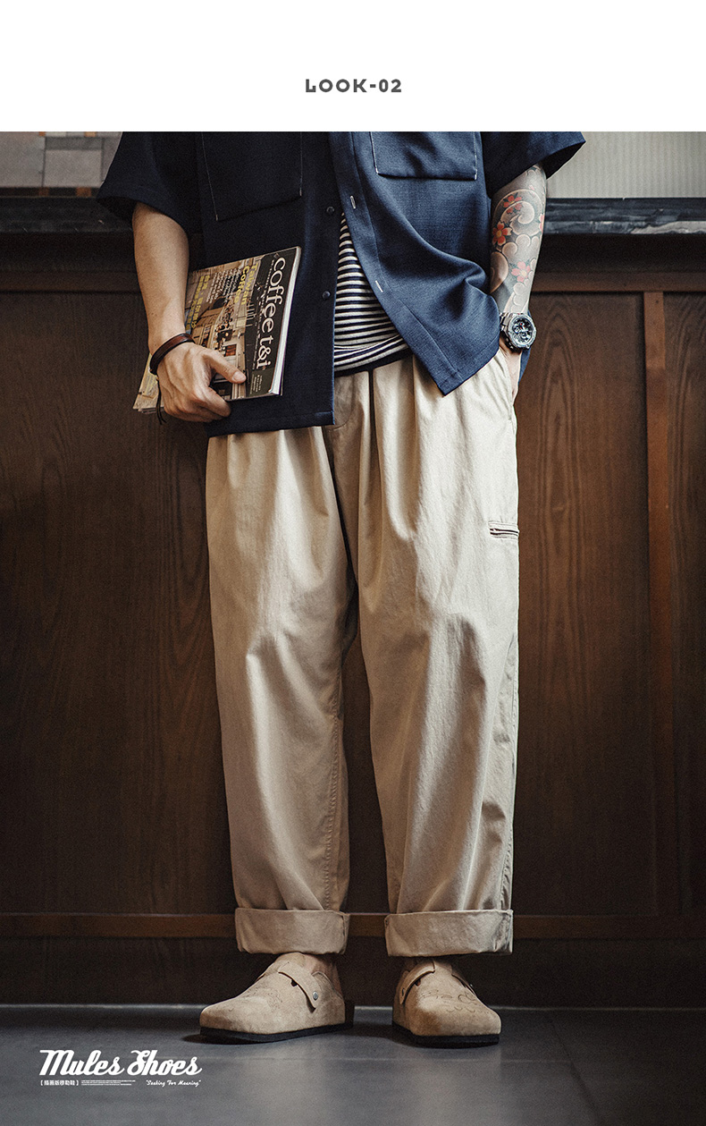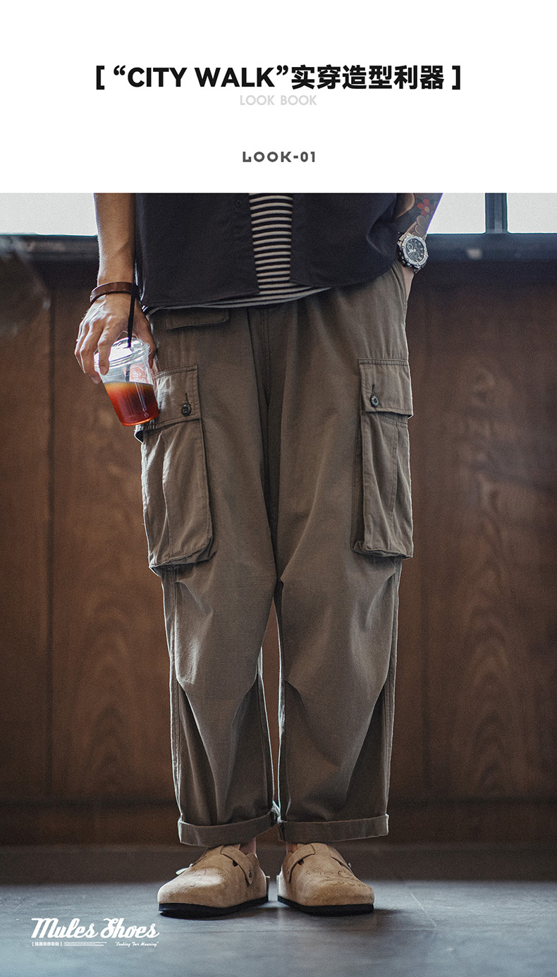 工装优选美式休闲磨毛麂皮卫裤慵懒风宽松垂感直筒阔腿裤子男秋冬