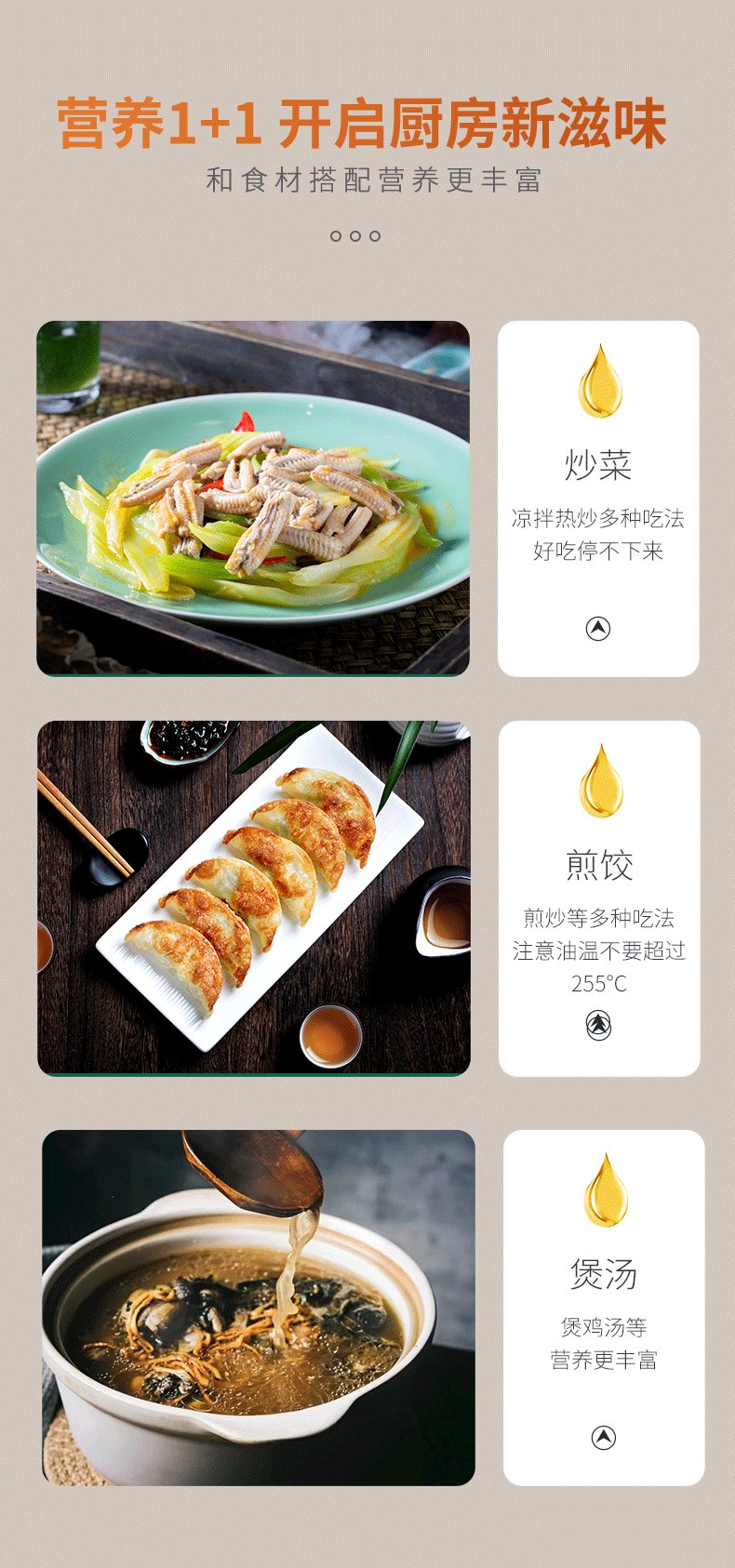 【食用方法】凉拌、煲汤、调味、烹饪,不建议煎炸食用。20毫升的红花籽油可直接与30克鹰嘴豆粉用开水冲服