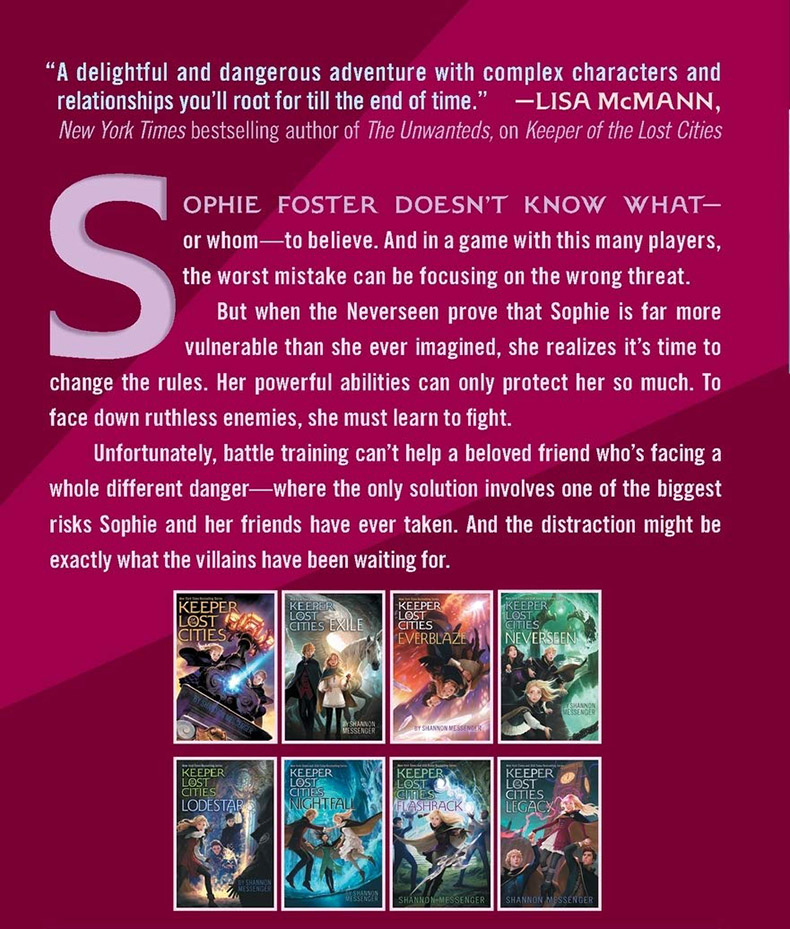 In this unforgettable seventh book in the New York Times and USA TODAY bestselling Keeper of the Lost Cities series, Sophie must let the past and present blur together, because the deadliest secrets are always the ones that get erased.
