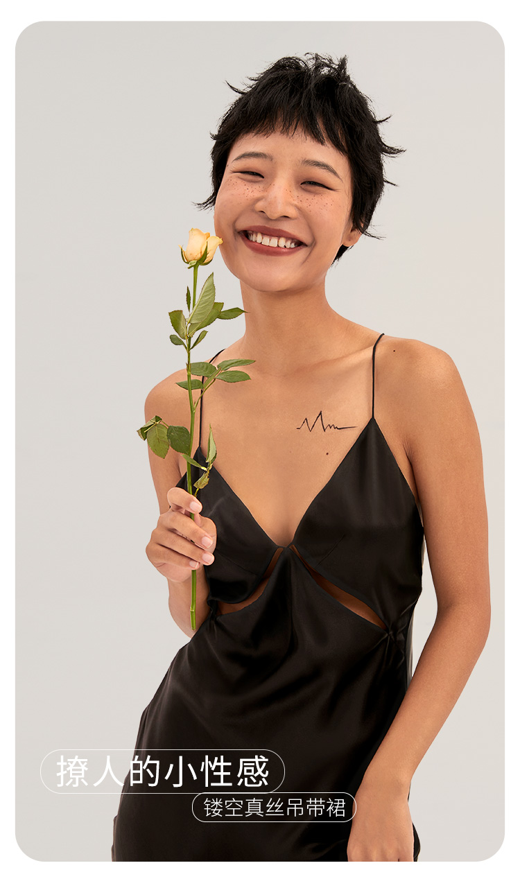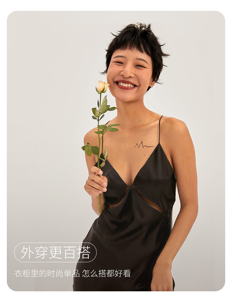 SANGLUO真丝睡裙吊带性感镂空100%桑蚕丝睡衣可外穿家居服夏新款