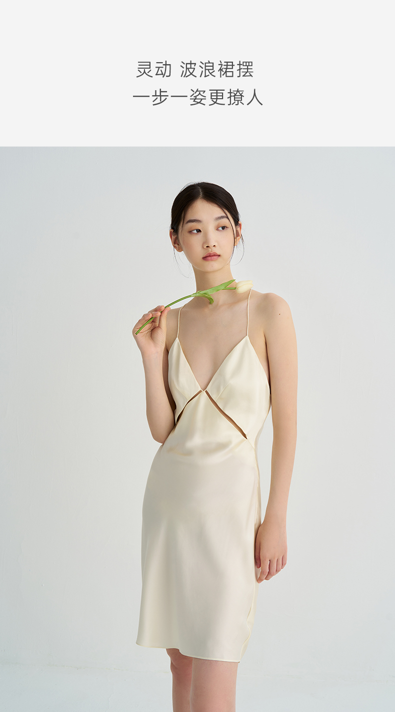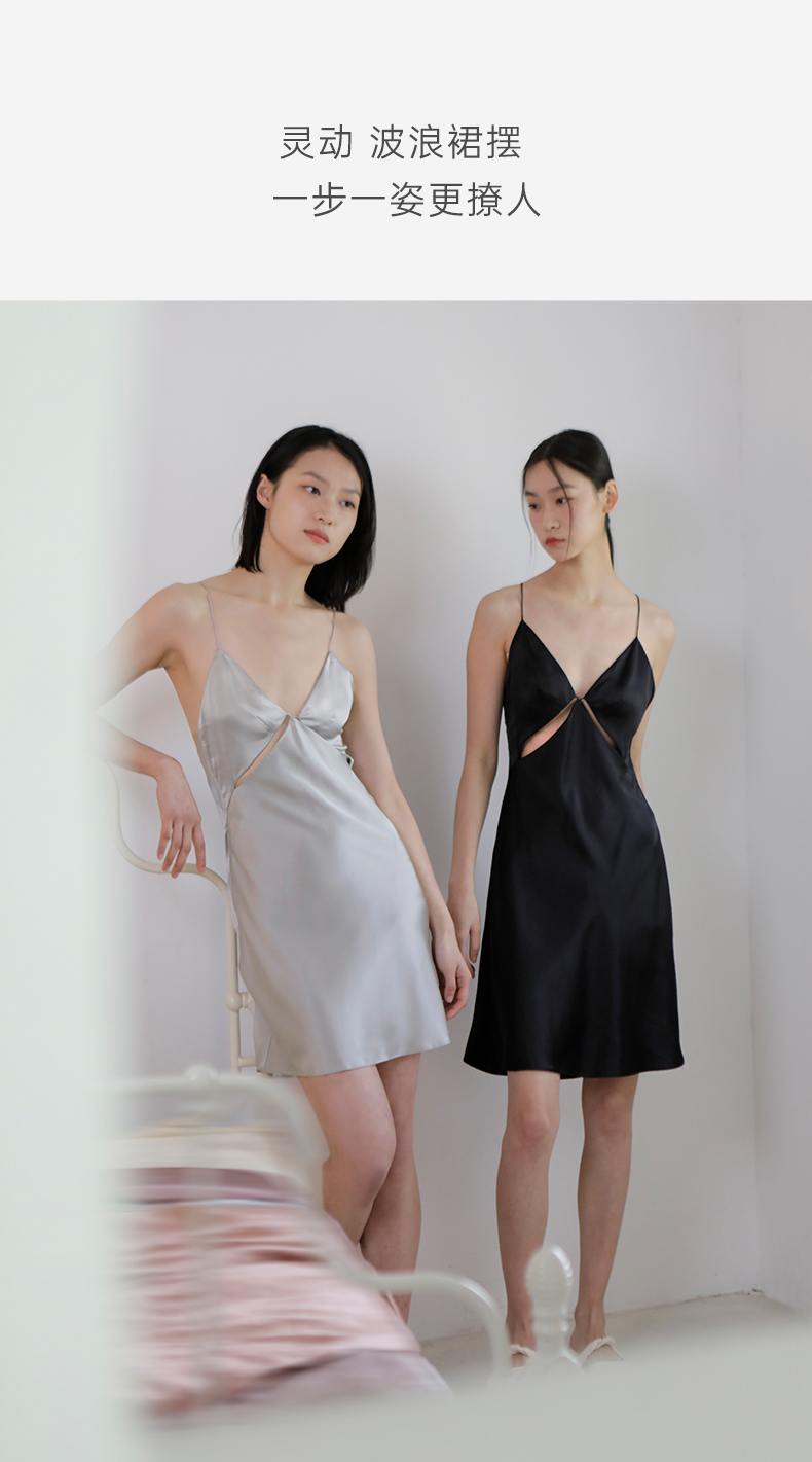 约会派对』桑罗睡裙桑蚕丝吊带裙镂空性感礼服裙生日送礼