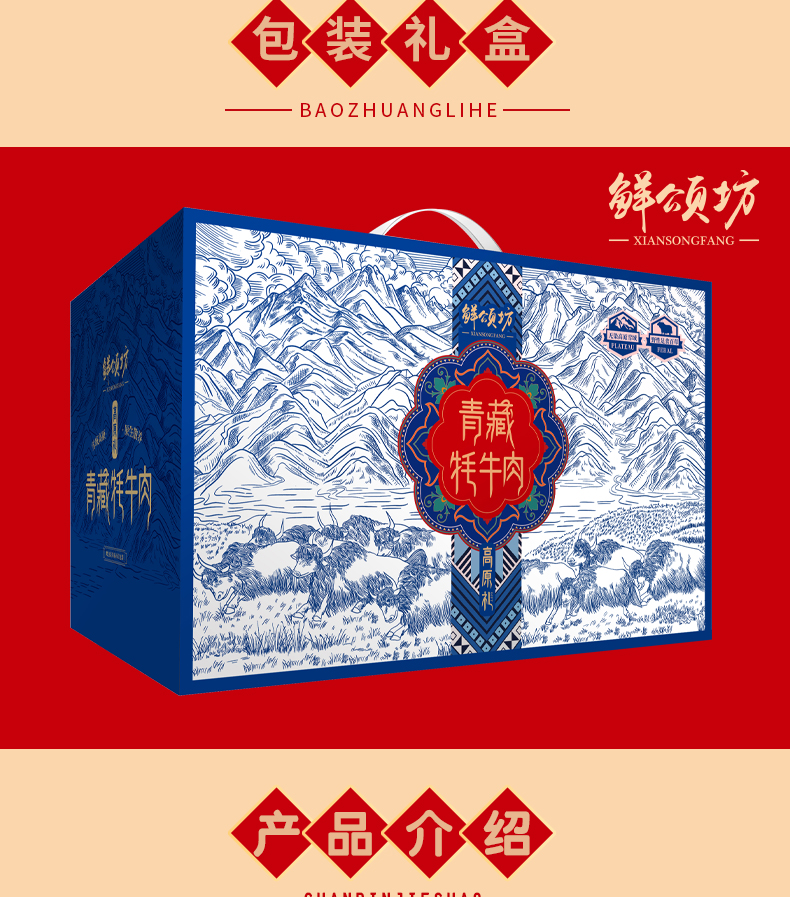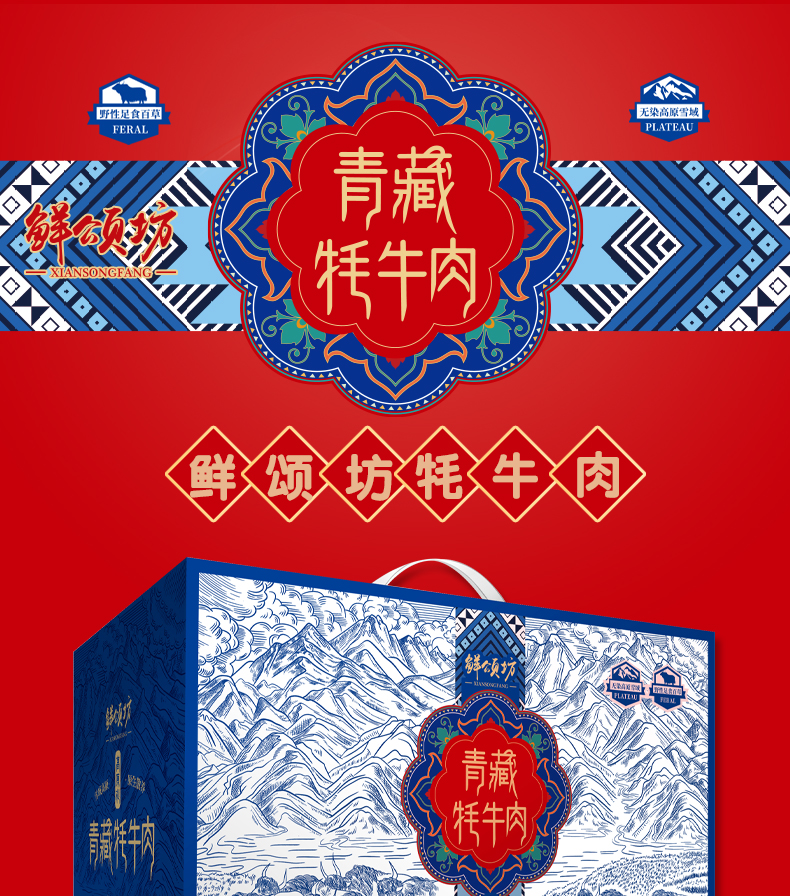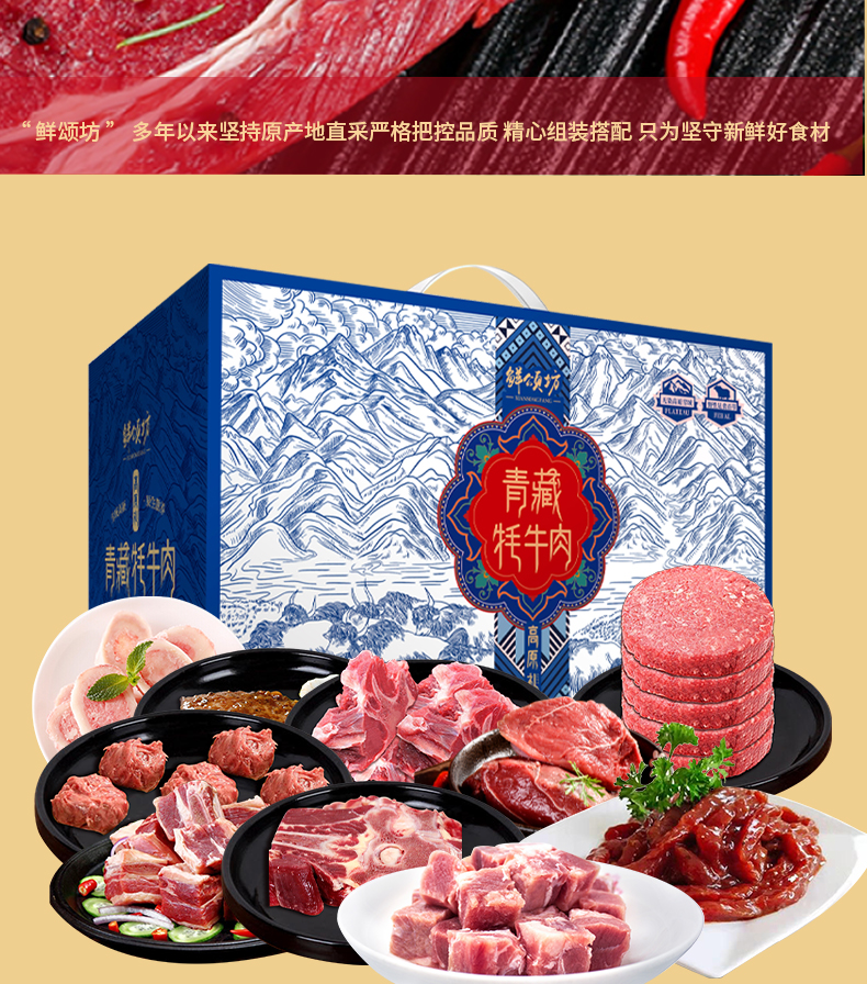 25年鲜颂坊牦牛肉礼盒898型 3750g + 鲜颂坊 藏羊肉礼盒398型2120g/箱【鲜知10.0】