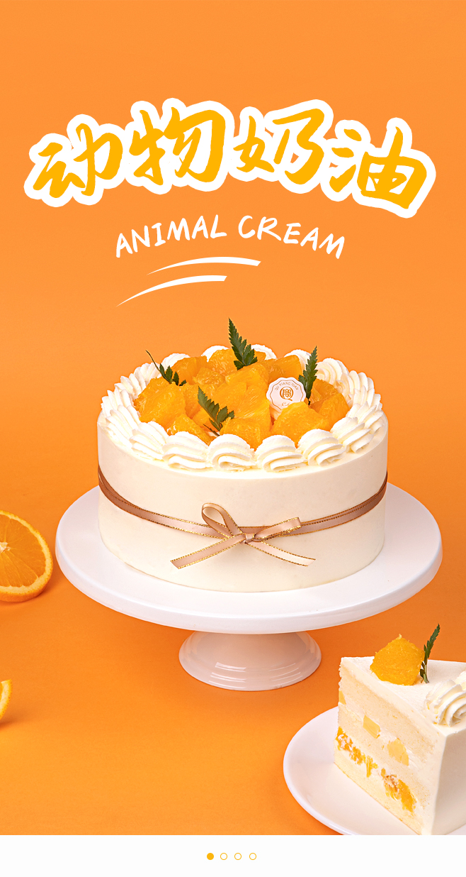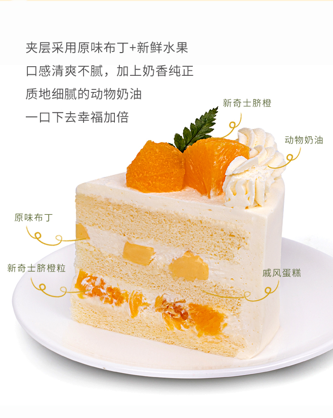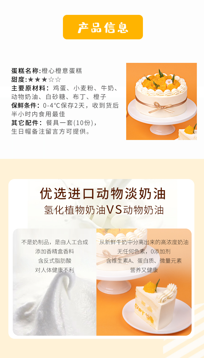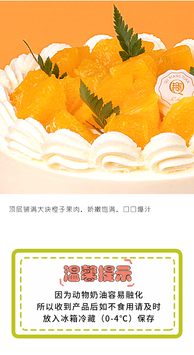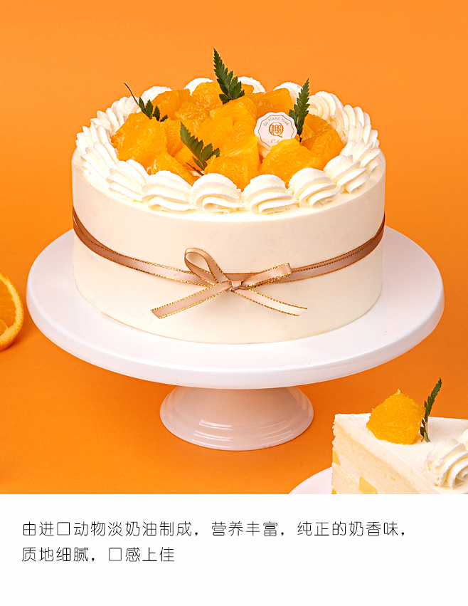 【动物奶油蛋糕,100%新鲜水果】-橙心橙意2磅蛋糕,免费送货