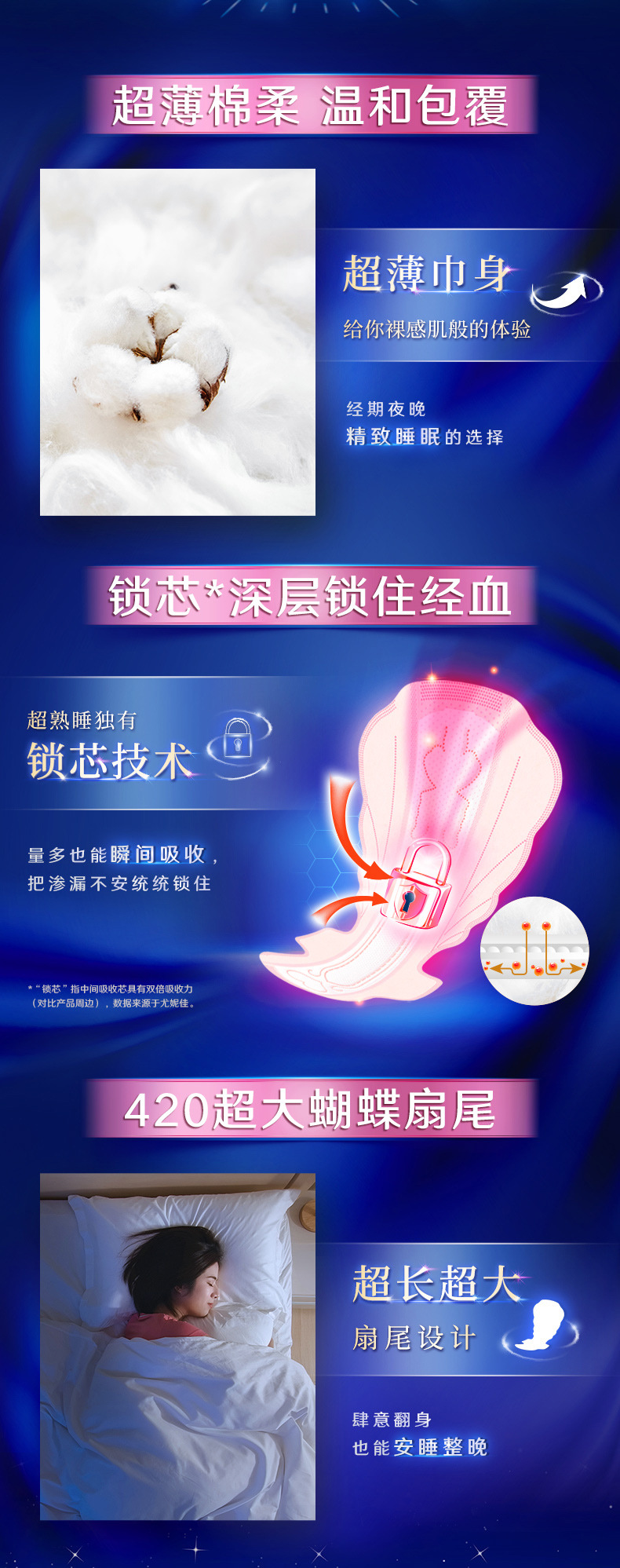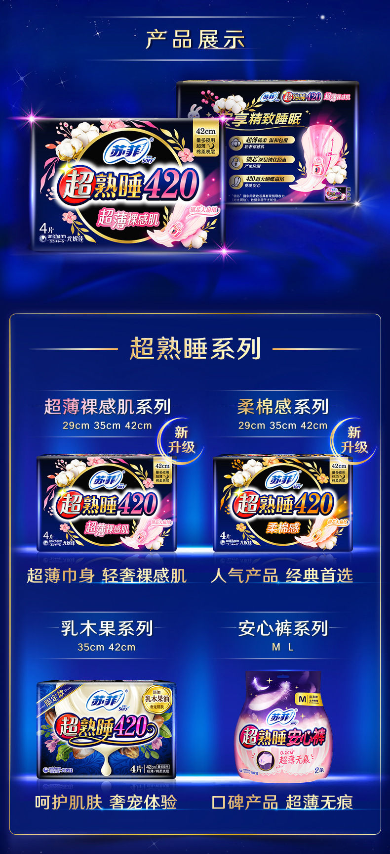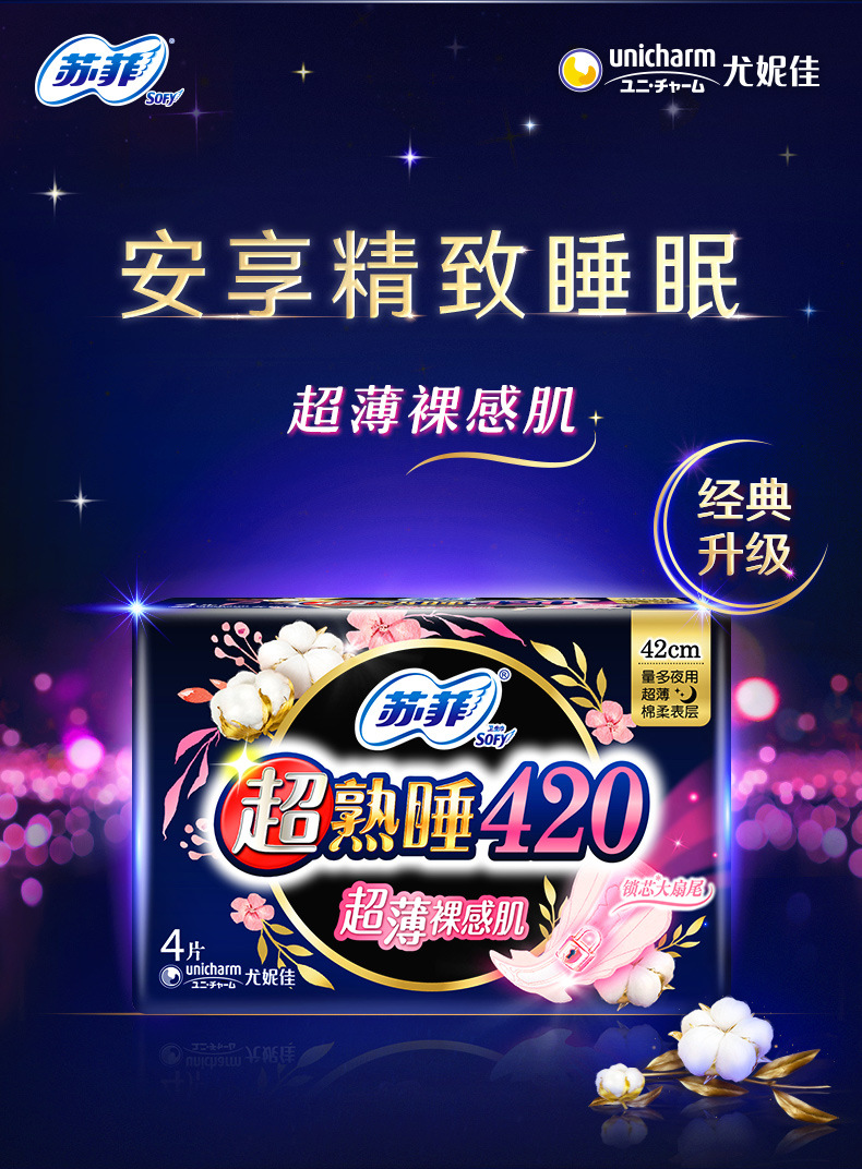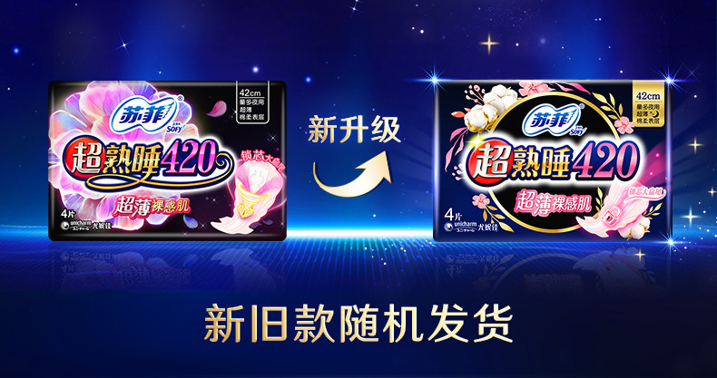 苏菲超熟睡420超薄随心翻4片夜用柔棉卫生巾(01063593)