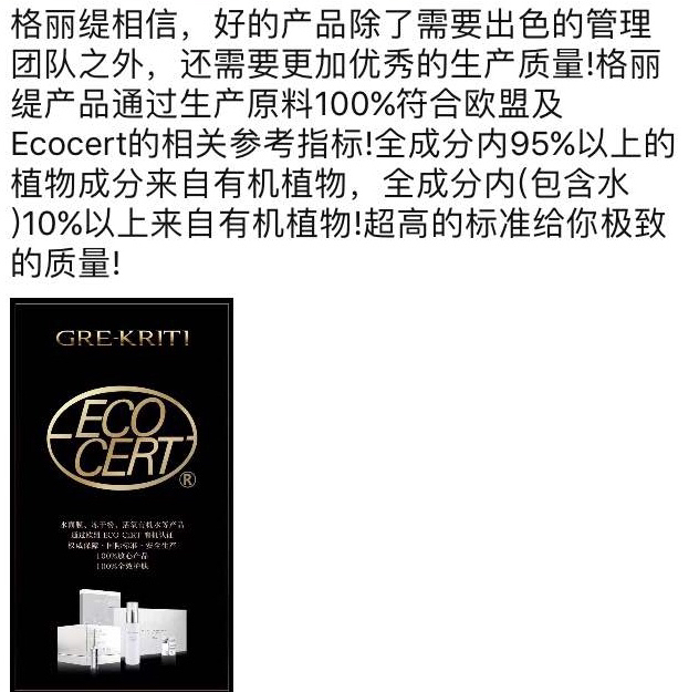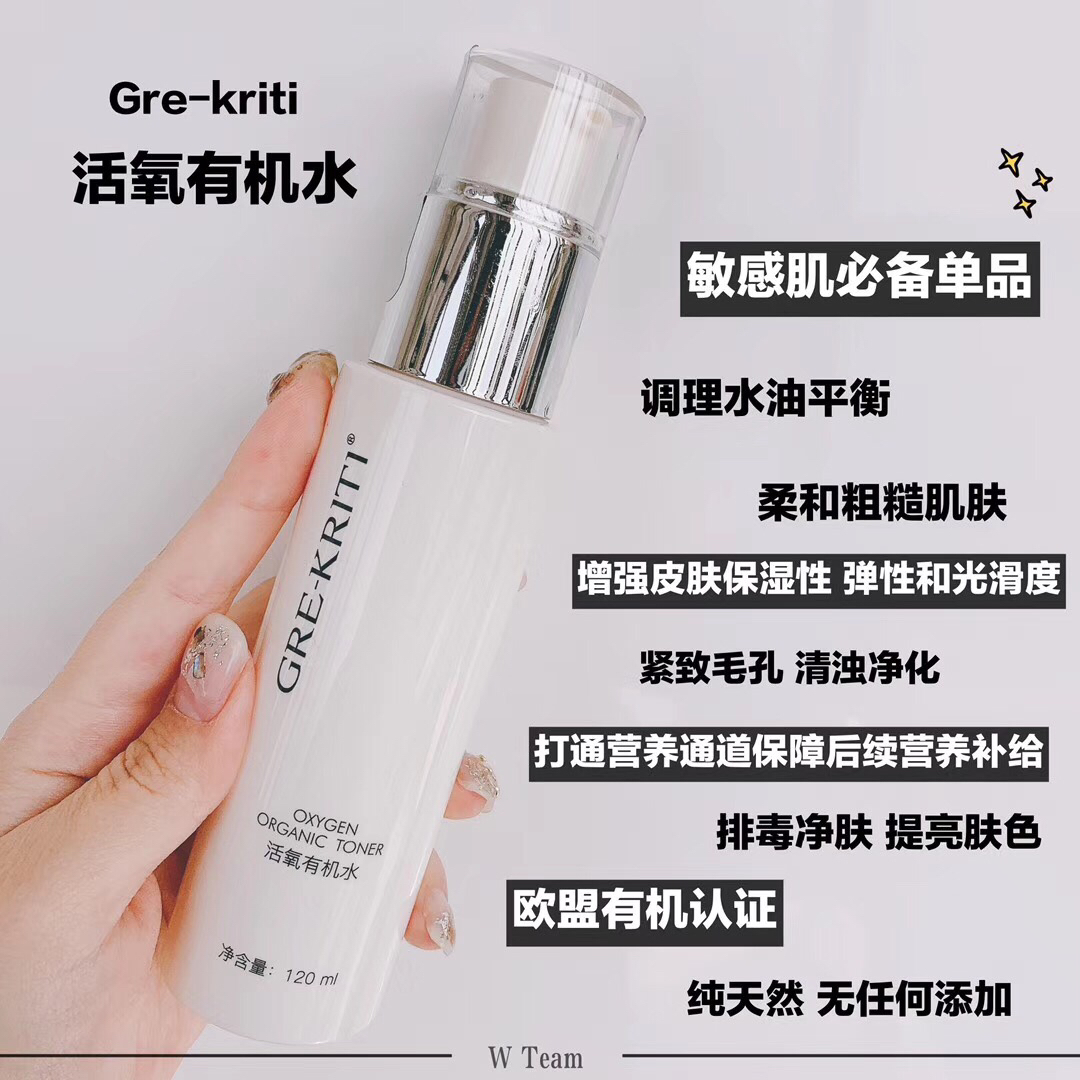 ①它是一款欧盟有机认证的有机水(全球有十二万的护肤品牌只有一百二十六家可以获此殊荣,通过率仅仅只有0.00105,而我们格丽缇的活氧有机水脱颖而出)