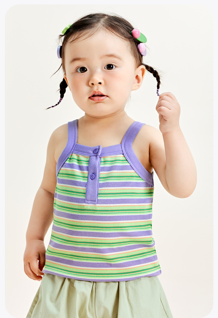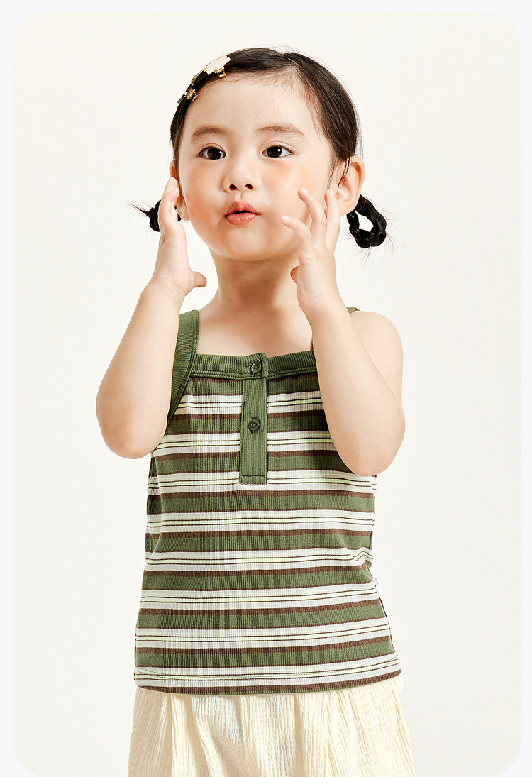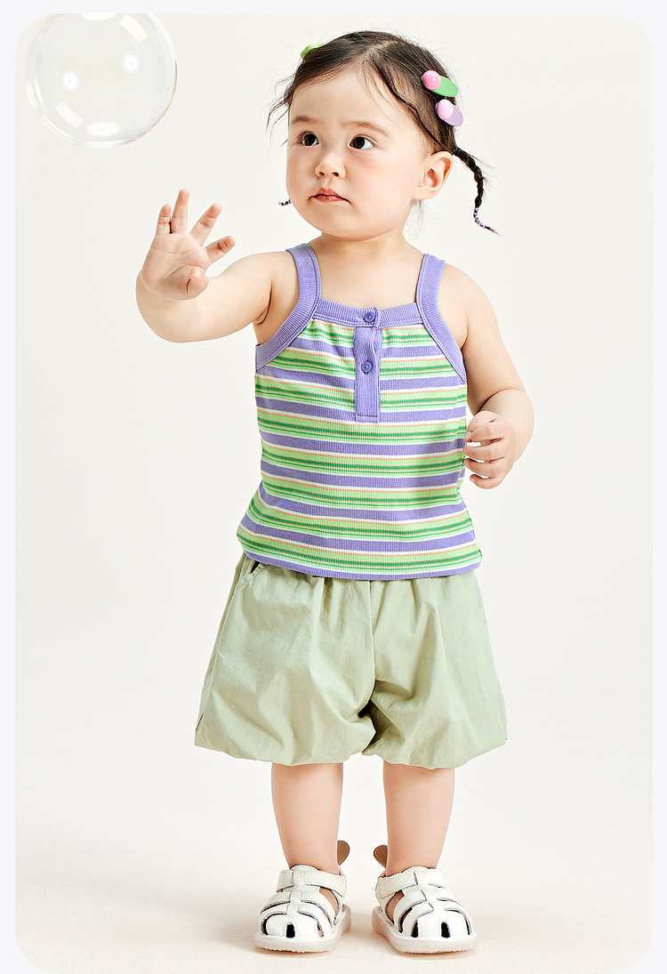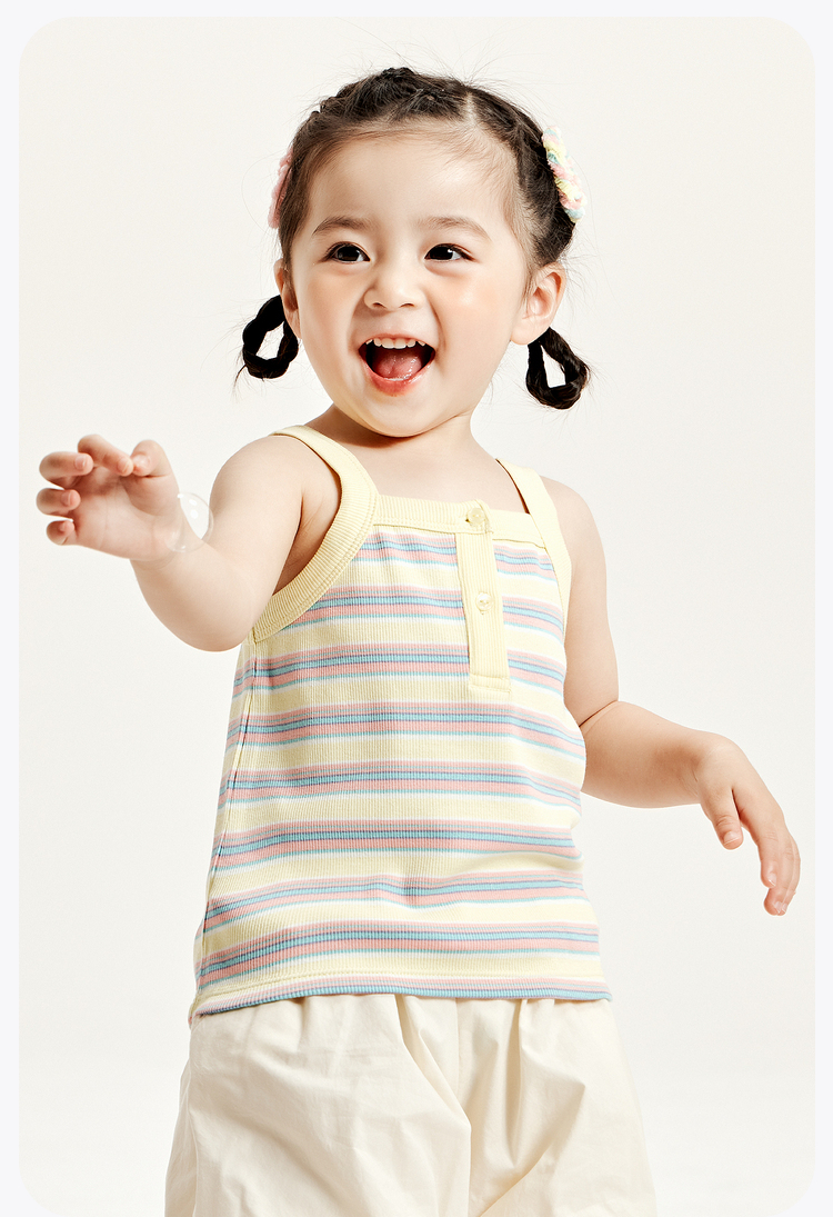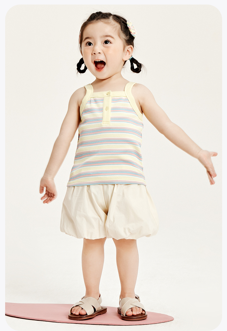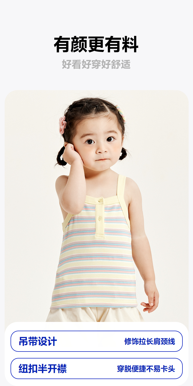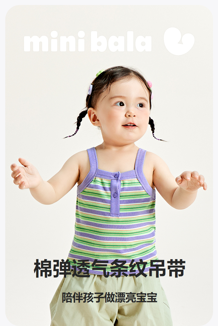 迷你巴拉夏季新款女童弹力休闲背心宝宝撞色时尚亲肤轻薄吊带