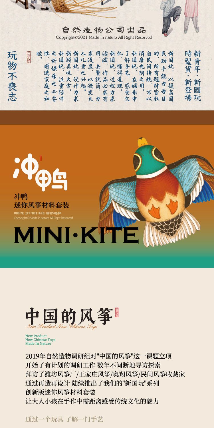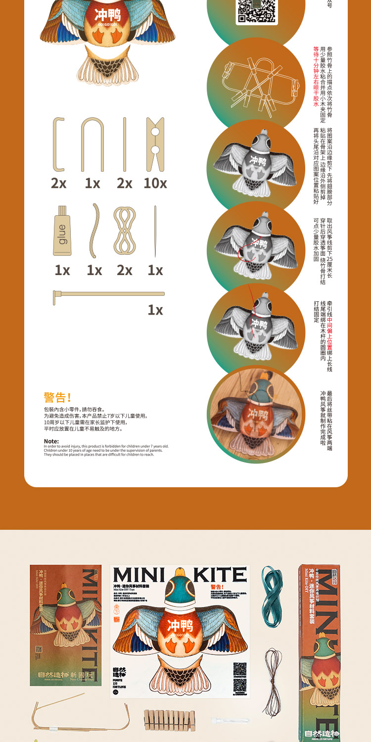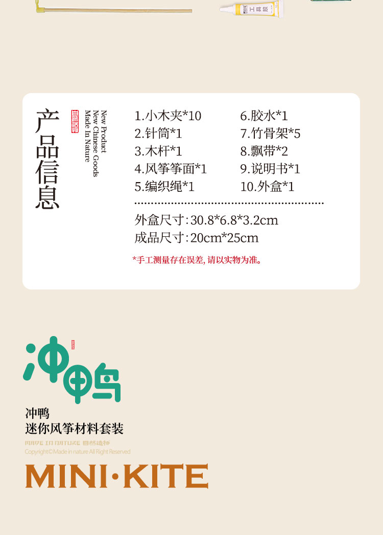 自然造物冲鸭风筝材料包玩具DIY亲子益智儿童生日礼物纸鸢挂件