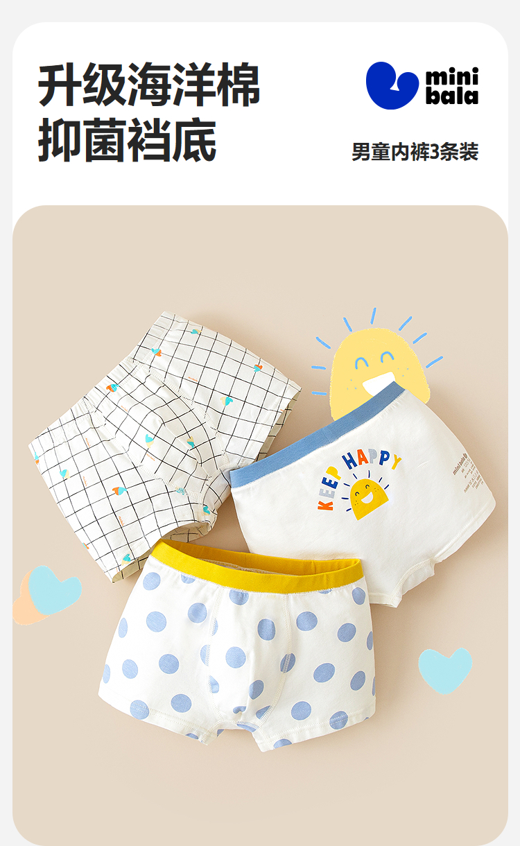 【超模君严选】迷你巴拉儿童内裤男童吸湿速干宝宝印花平角内裤不夹PP 3条装