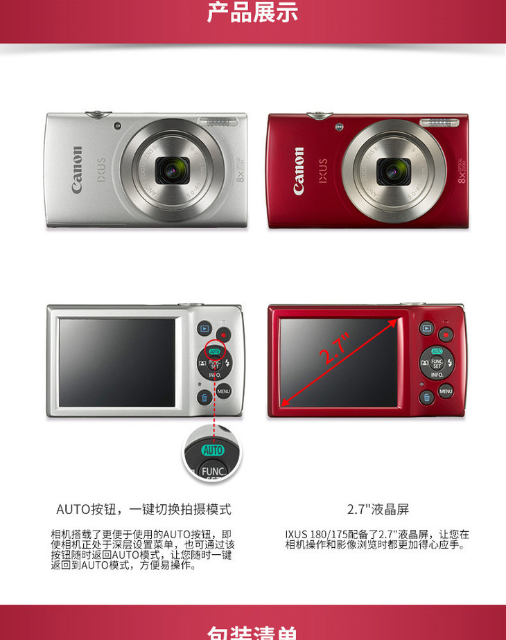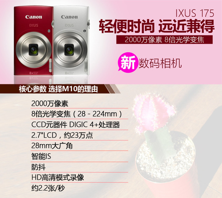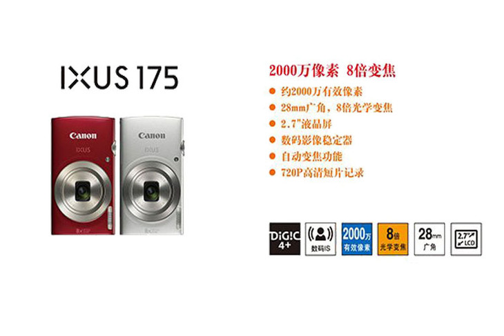 【canon】*Canon/佳能IXUS175数码照相机2000万像素8倍变焦行货