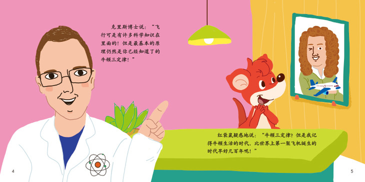 《红袋鼠物理千千问•牛顿的飞行课:空气动力学1》本书是幼儿物理科普图画书“红袋鼠物理千千问”系列的第五个子系列“空气动力学”系列中的第一册。克里斯博士仍然是和红袋鼠一起,以问答的形式讲解了许多有关飞机和飞行的的问题。本册讲解的是飞行的基本原理,虽然牛顿时代还没有飞机,但飞机飞行仍然是遵守牛顿运动定律的。