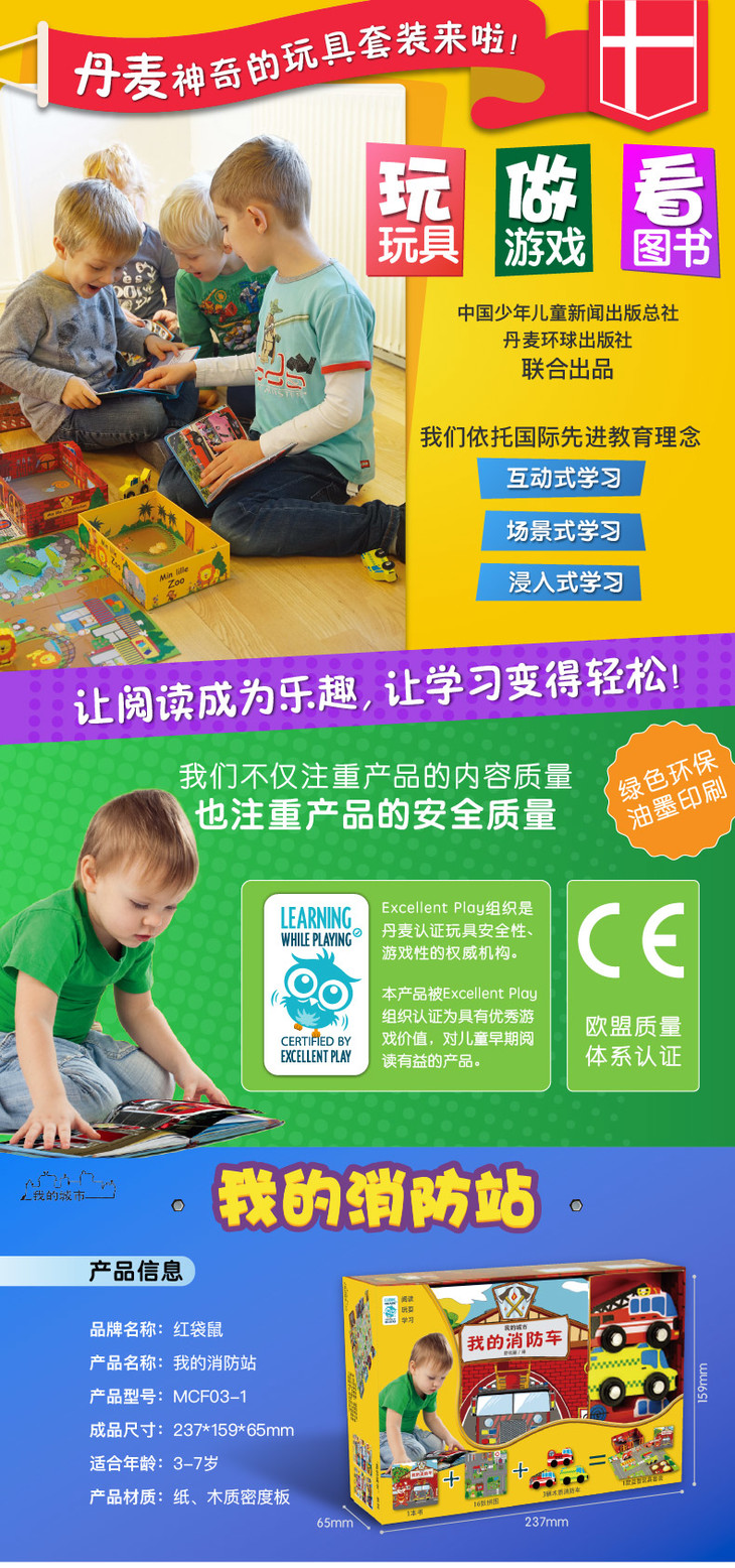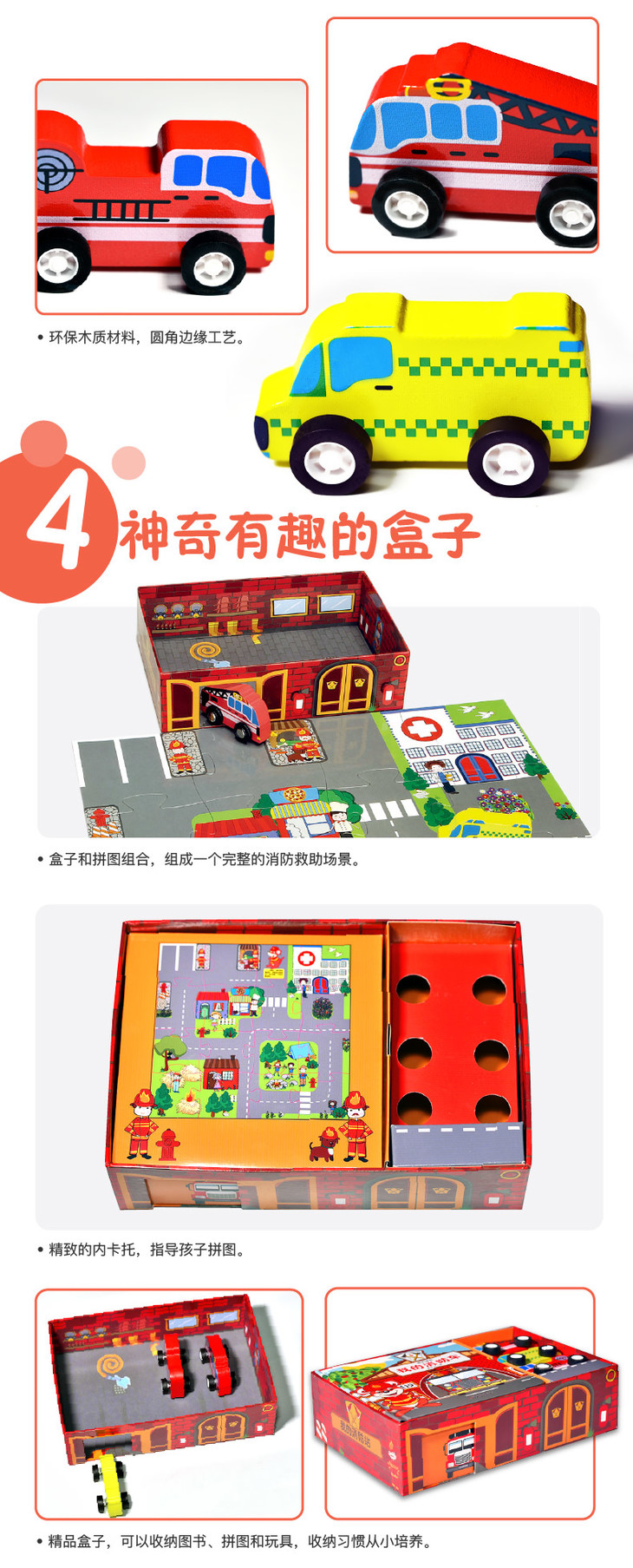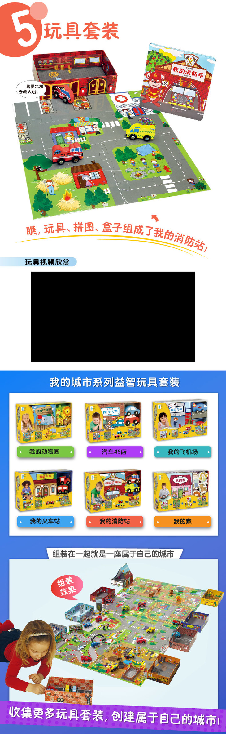 我的城市我的消防站丨拼图、玩具、图书三合一 源自丹麦的畅销儿童启蒙套装 3-7岁适读