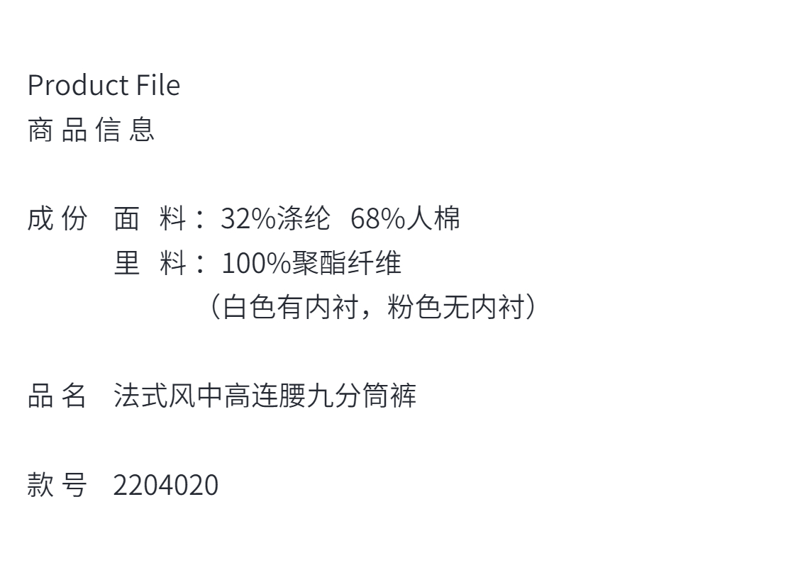 法式风气质中高连腰九分筒裤、休闲宽松丝毛感显瘦阔腿裤 2204020