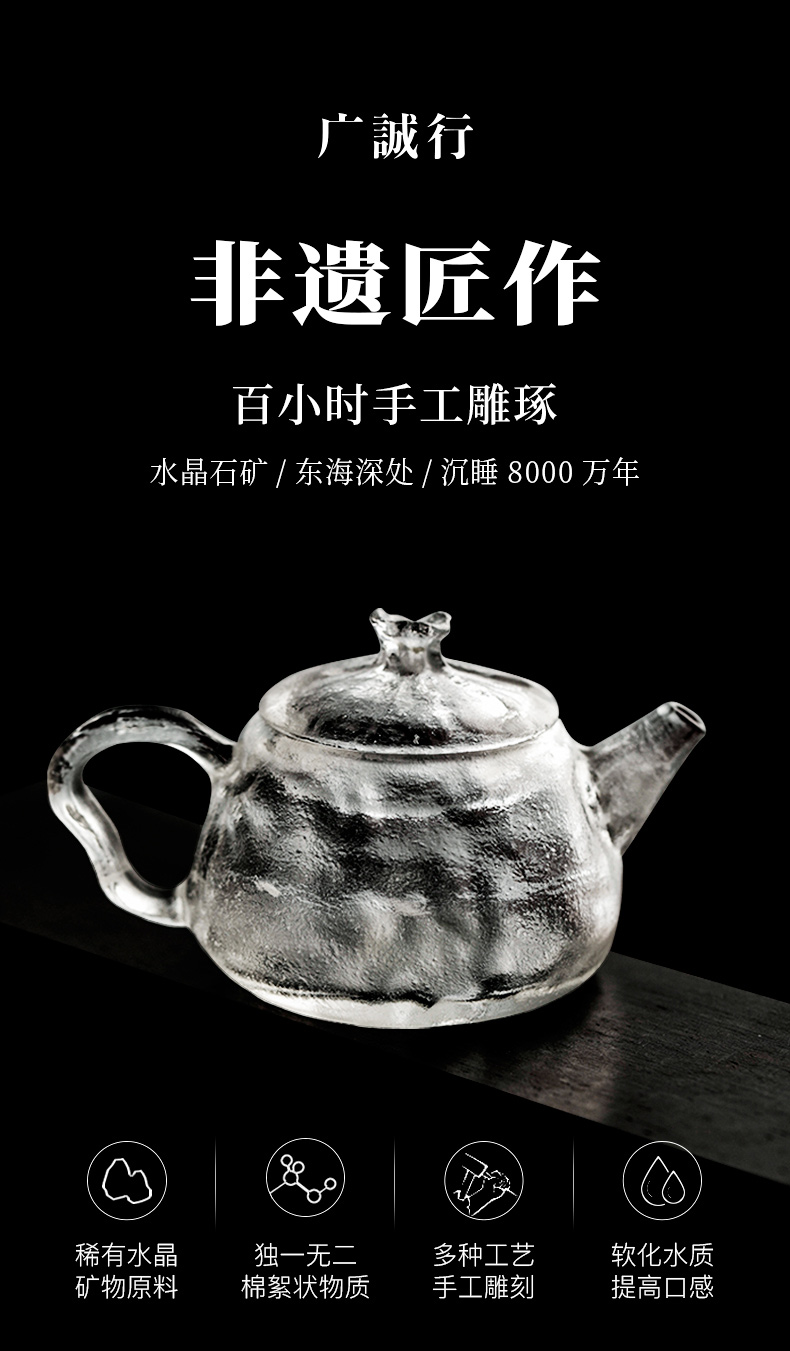 【非遗好物】水晶茶器非遗传承人何伟强手工制作水晶茶具套装