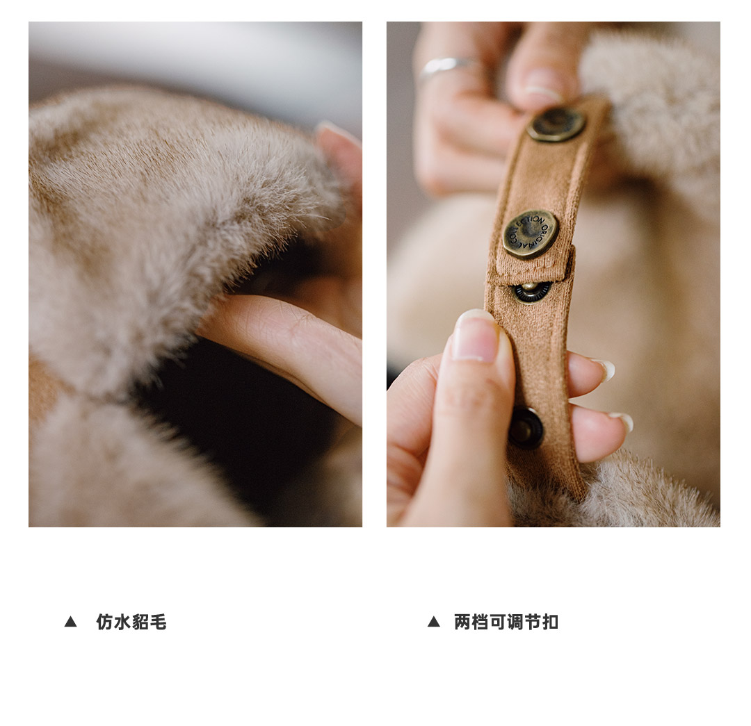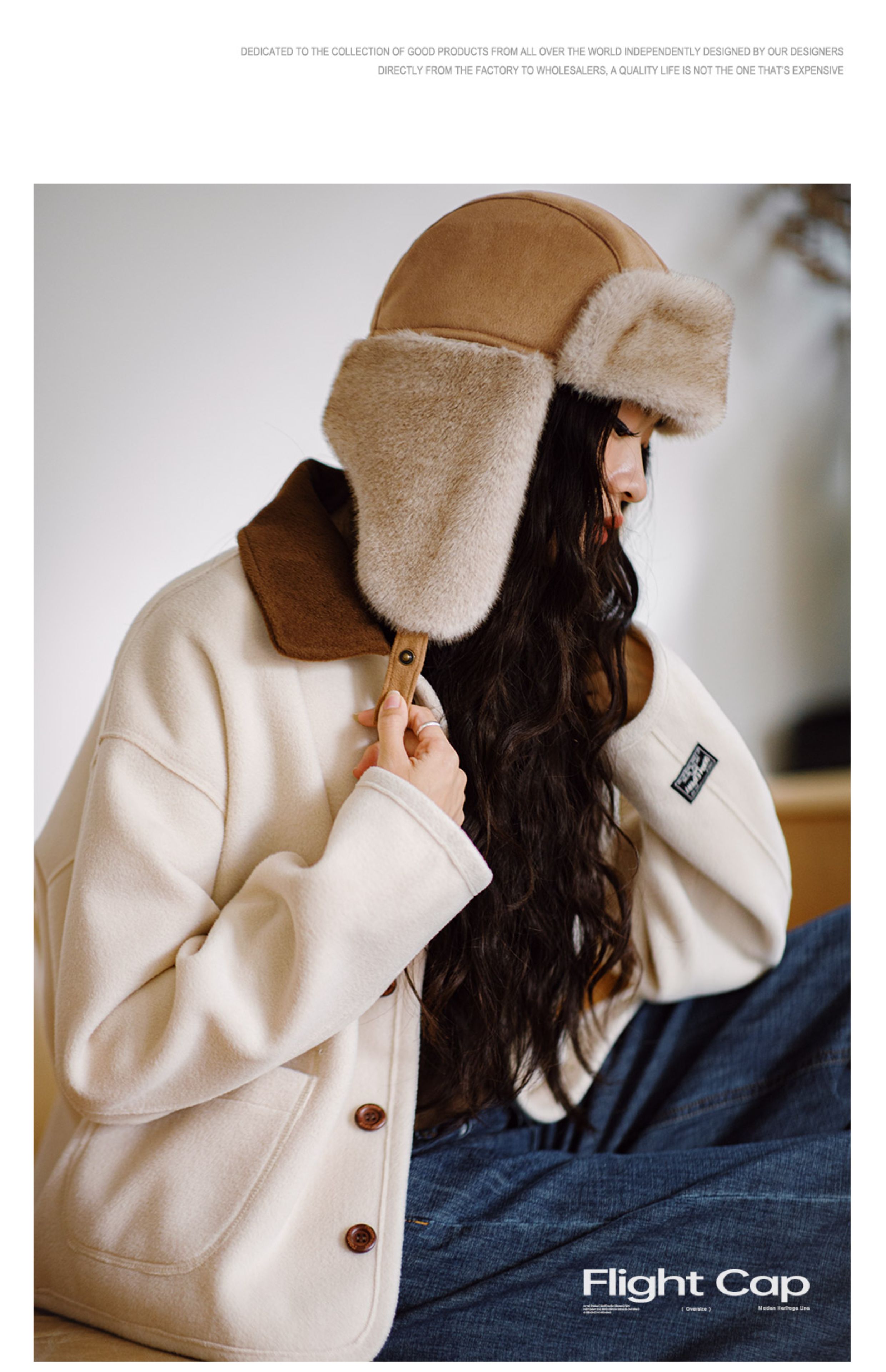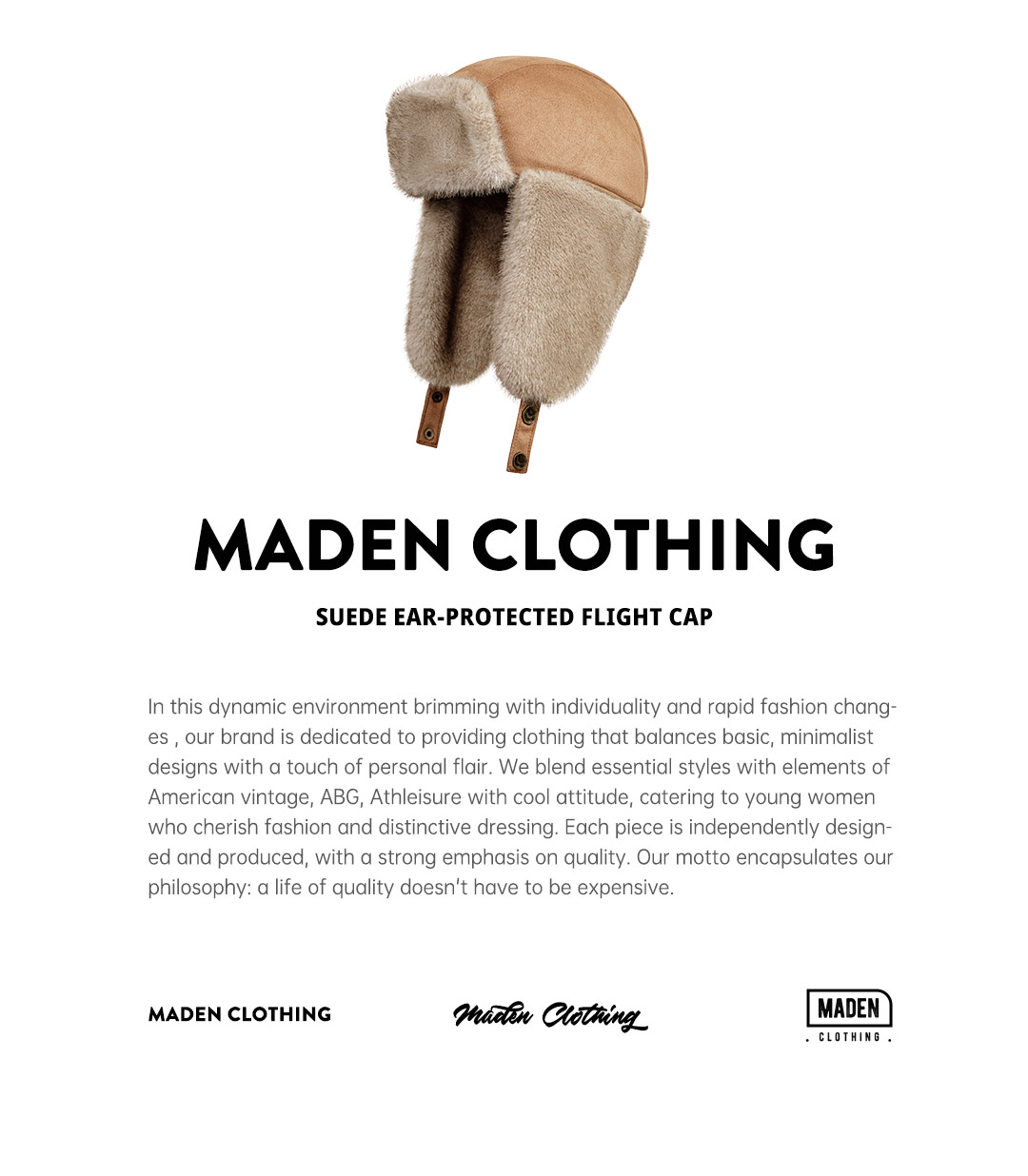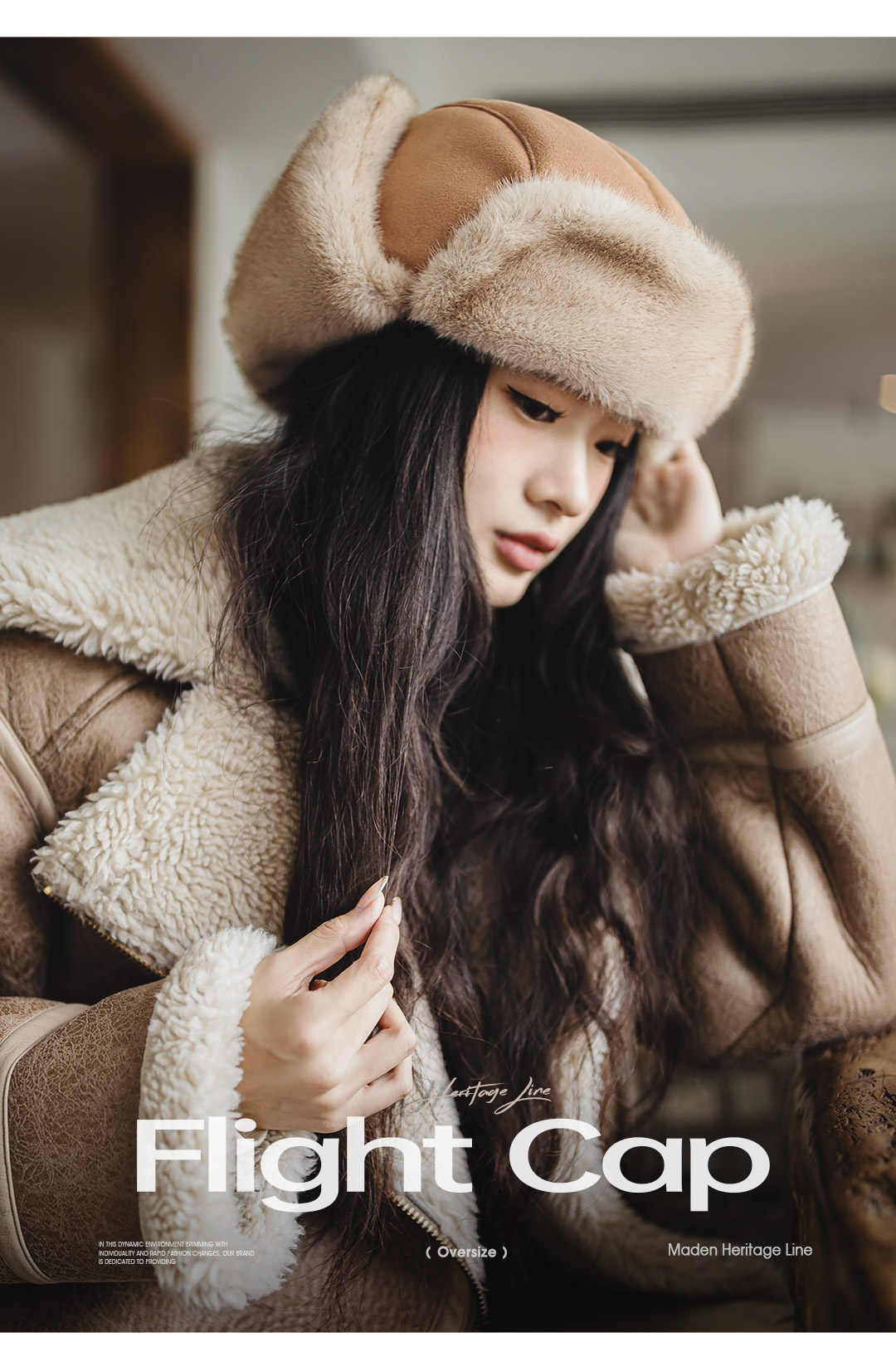 马登斯拉夫摩卡棕皮毛一体麂皮绒护耳帽仿貂绒防风加厚冬飞行帽女