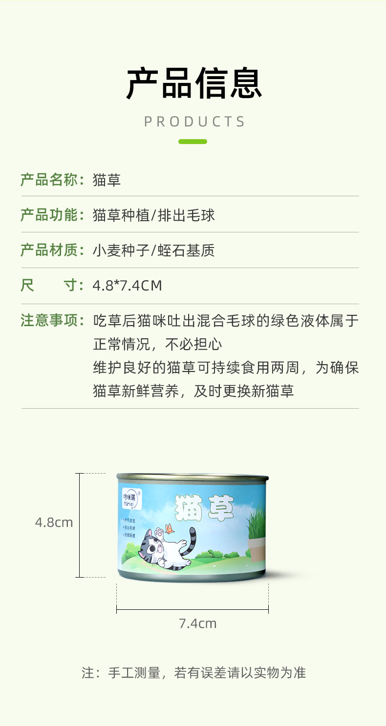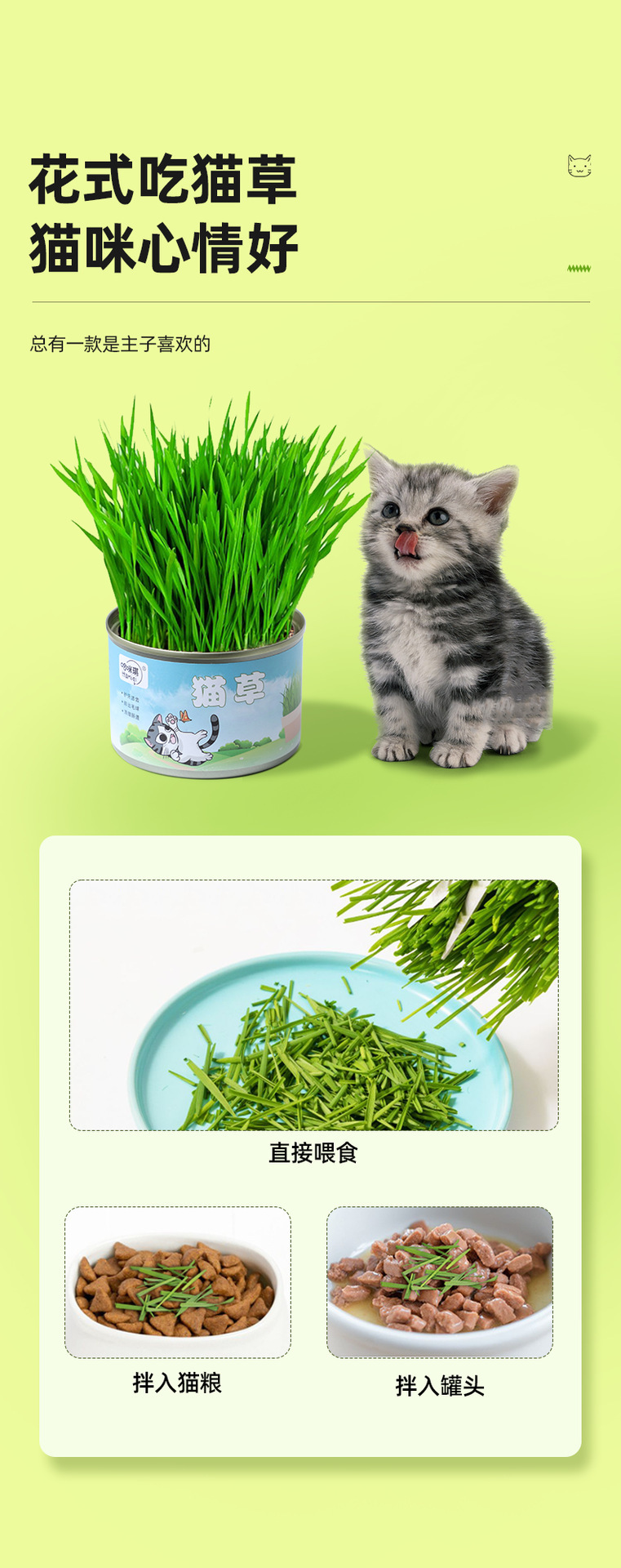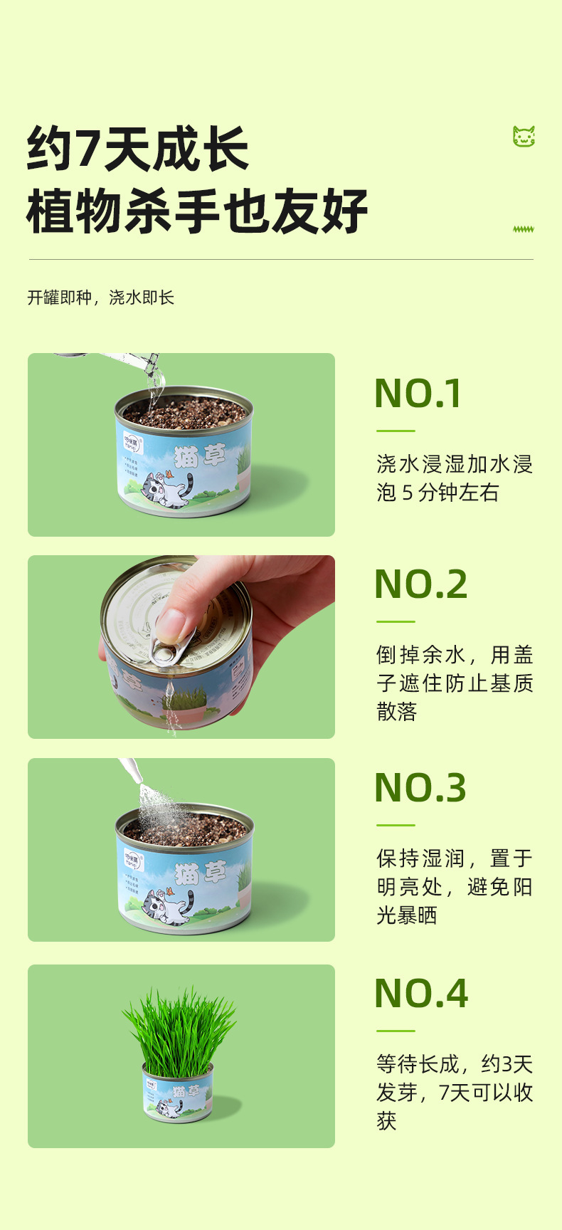 哈咪琪猫咪猫草罐头懒人种植套装成猫幼猫草化毛球养殖罐30g