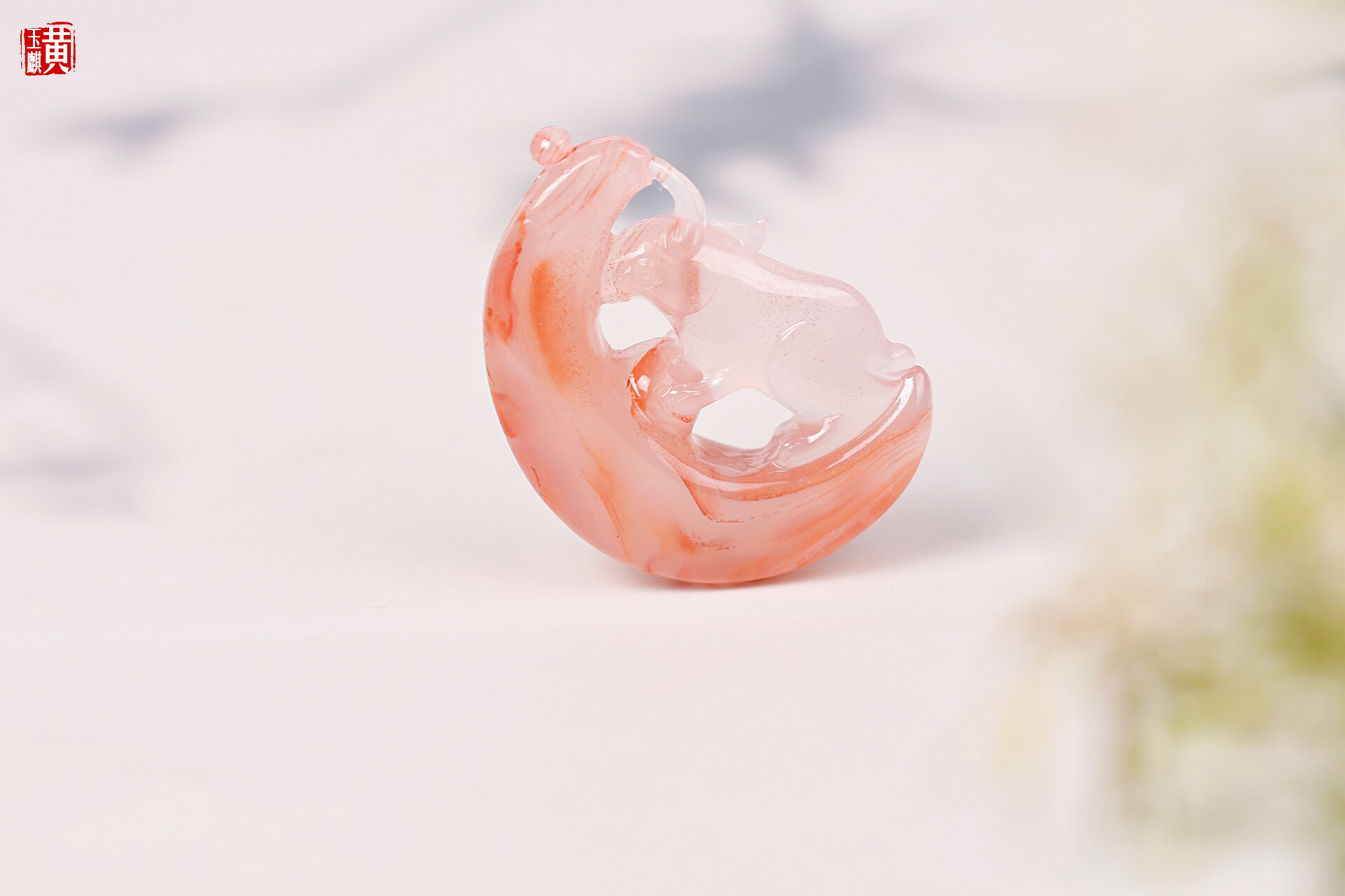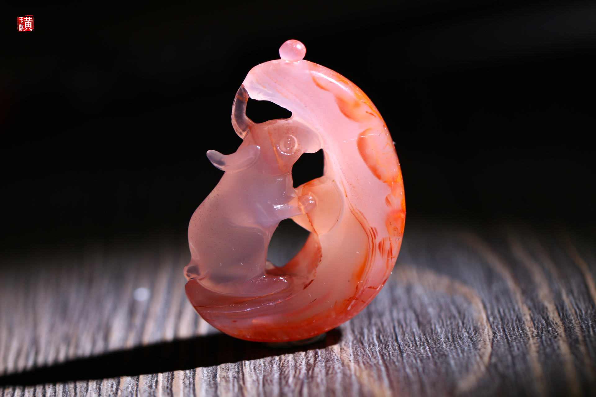 南红冰飘【玉兔接福】吊坠 配精美挂绳