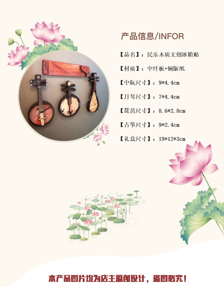 迷你新品中国风古典民乐 卡通可爱有趣的创意 木质冰箱贴
