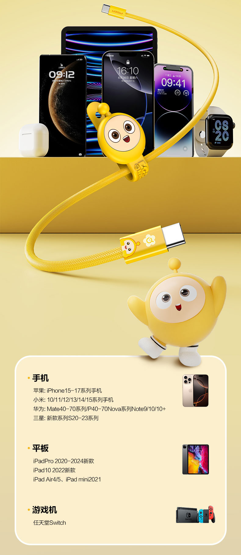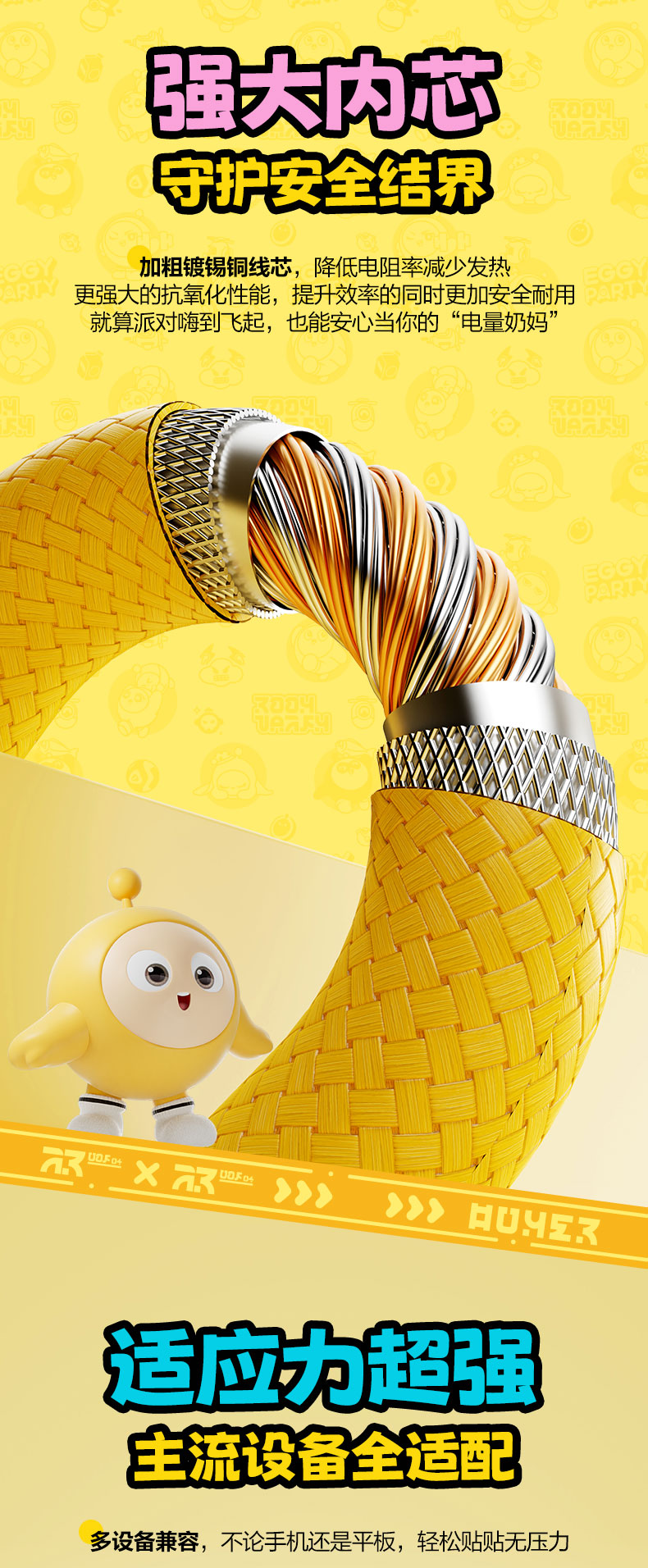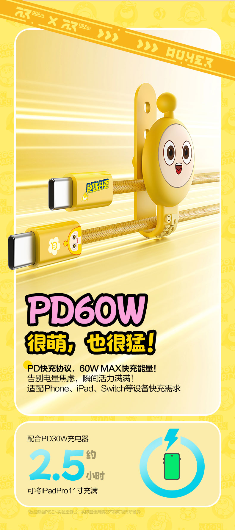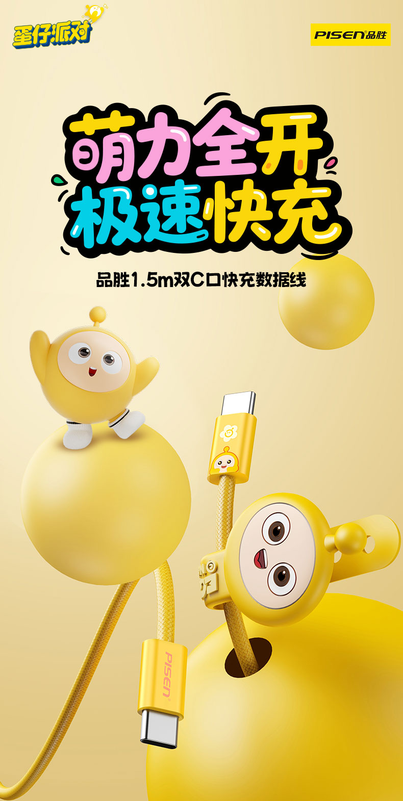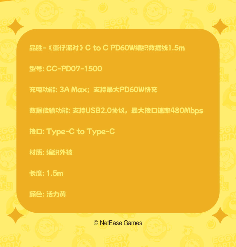 品胜 《蛋仔派对》C to C PD60W编织数据线1.5m 支持苹果17设备充电/华为/荣耀/oppo快充
