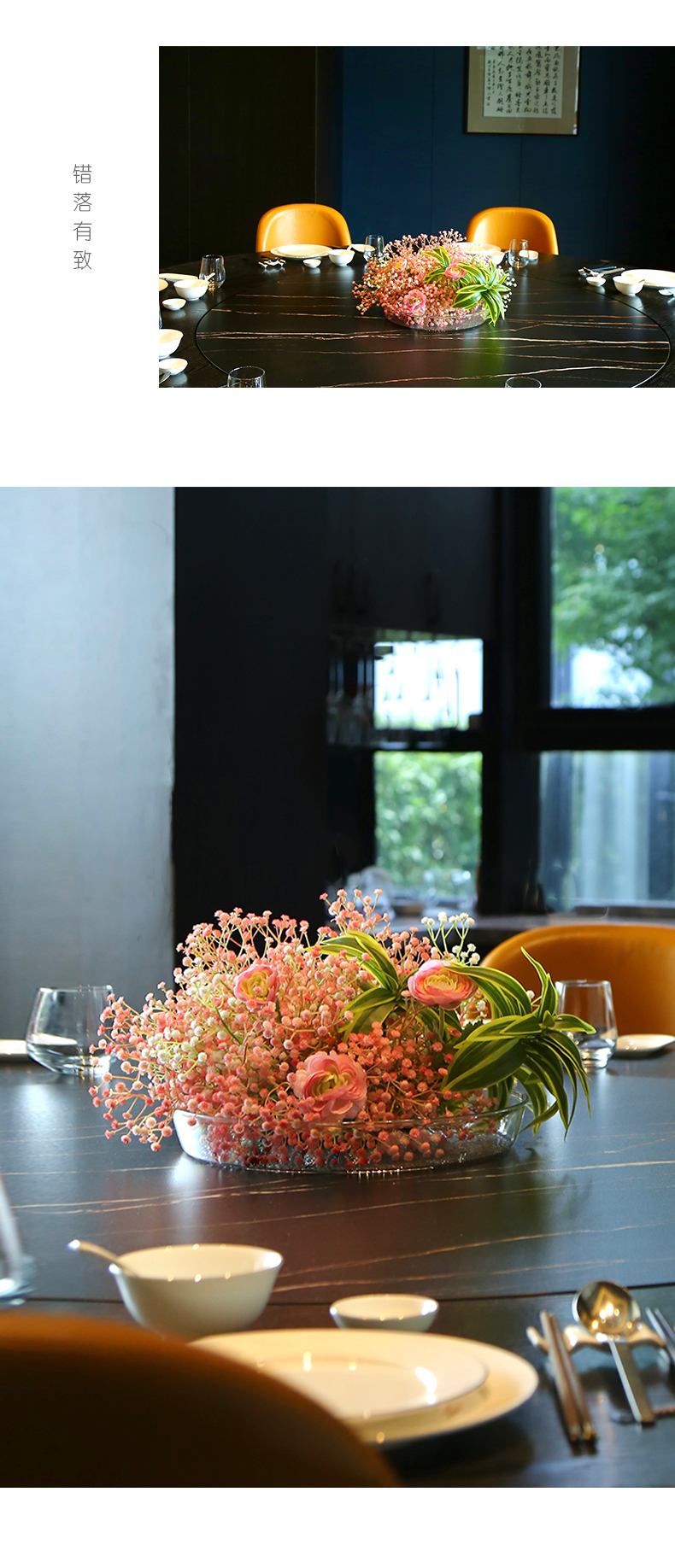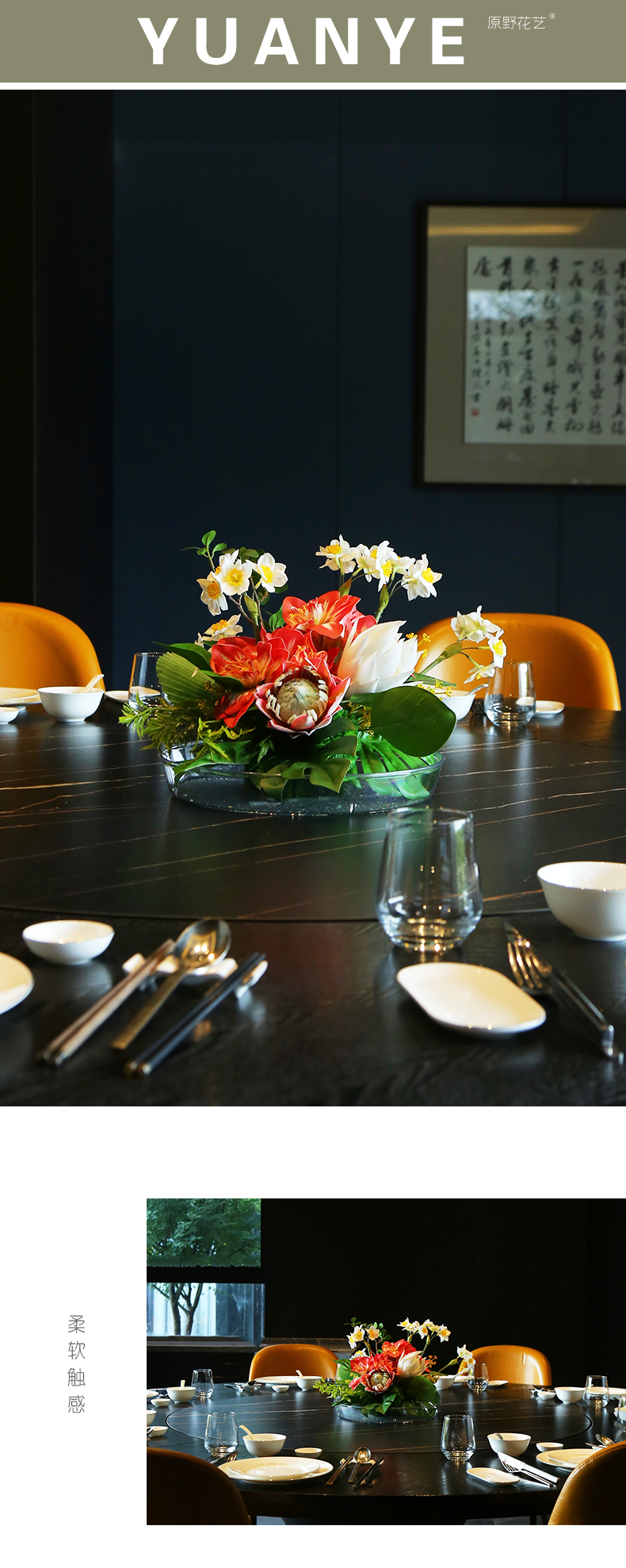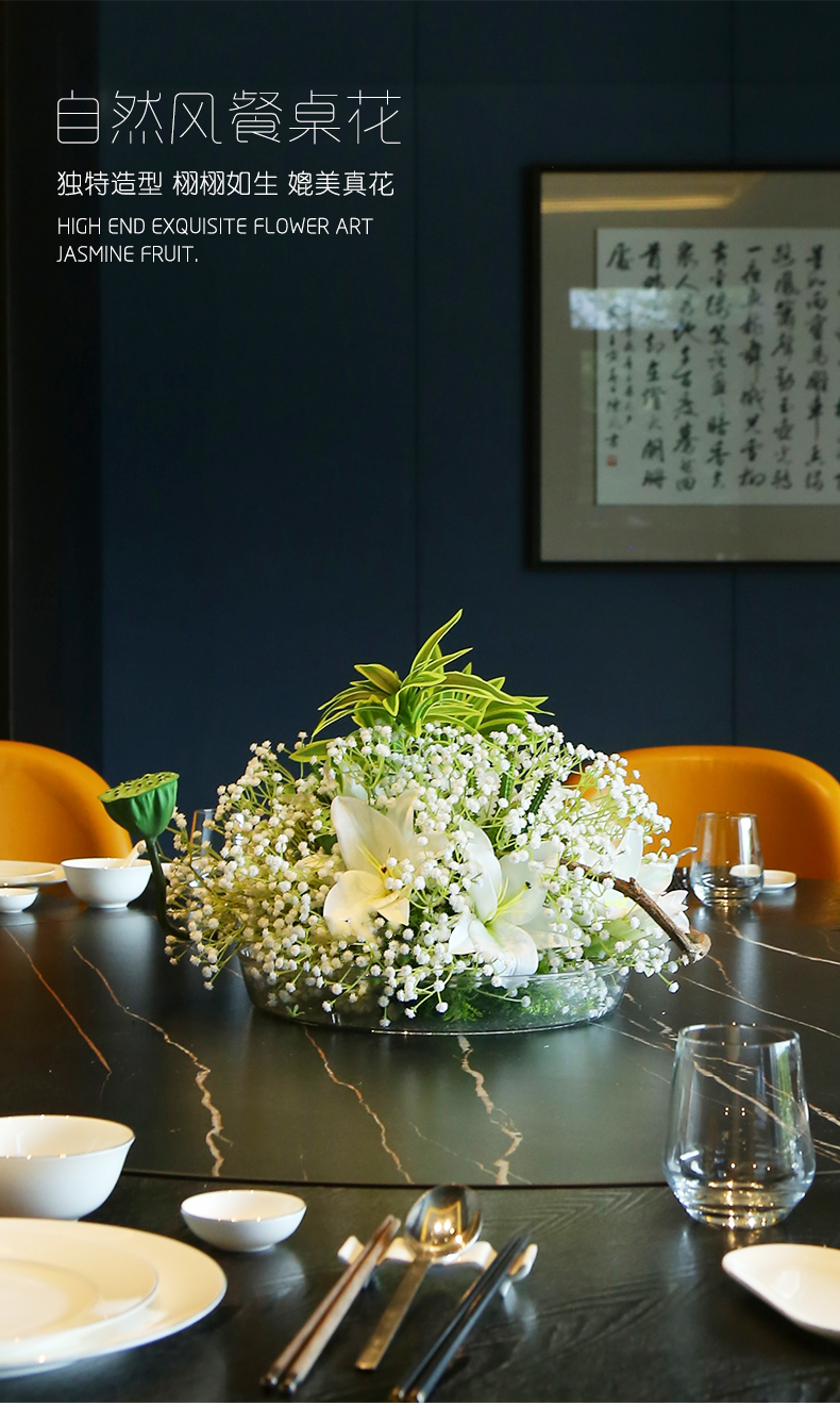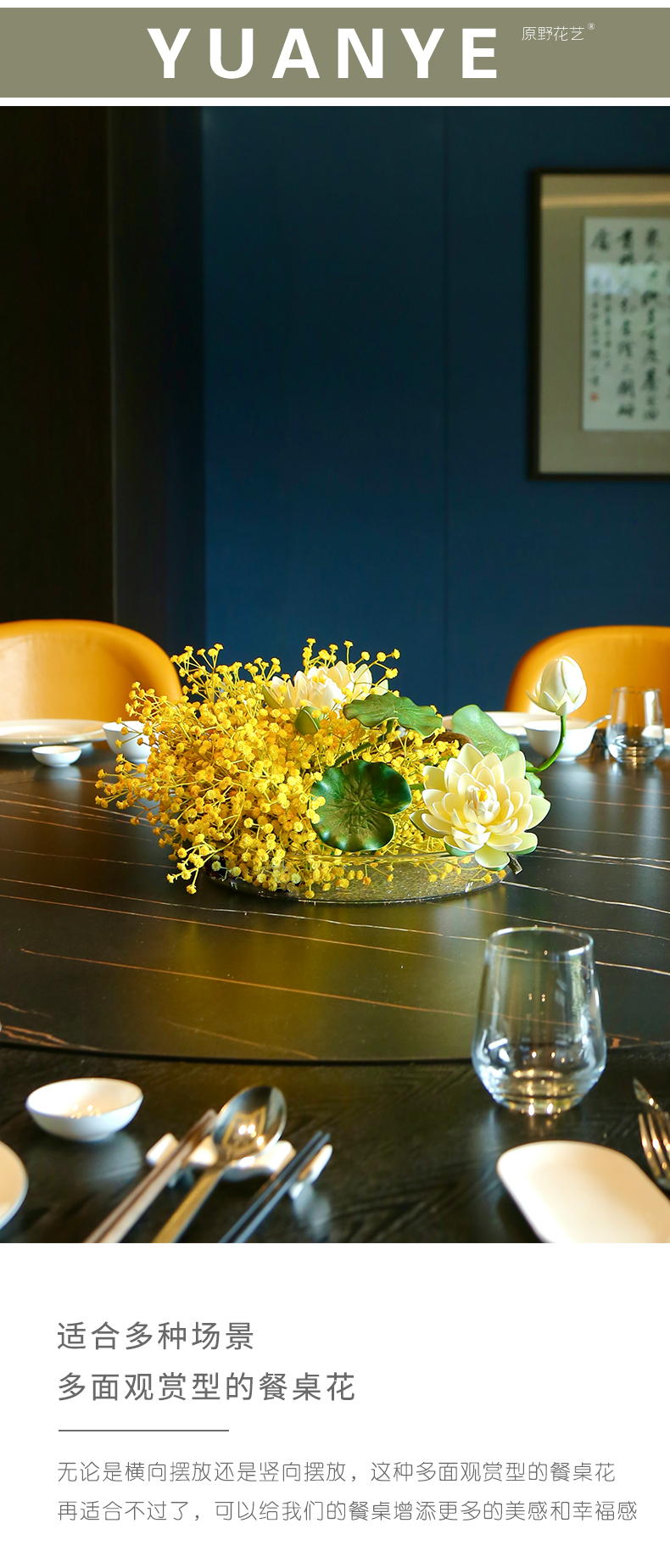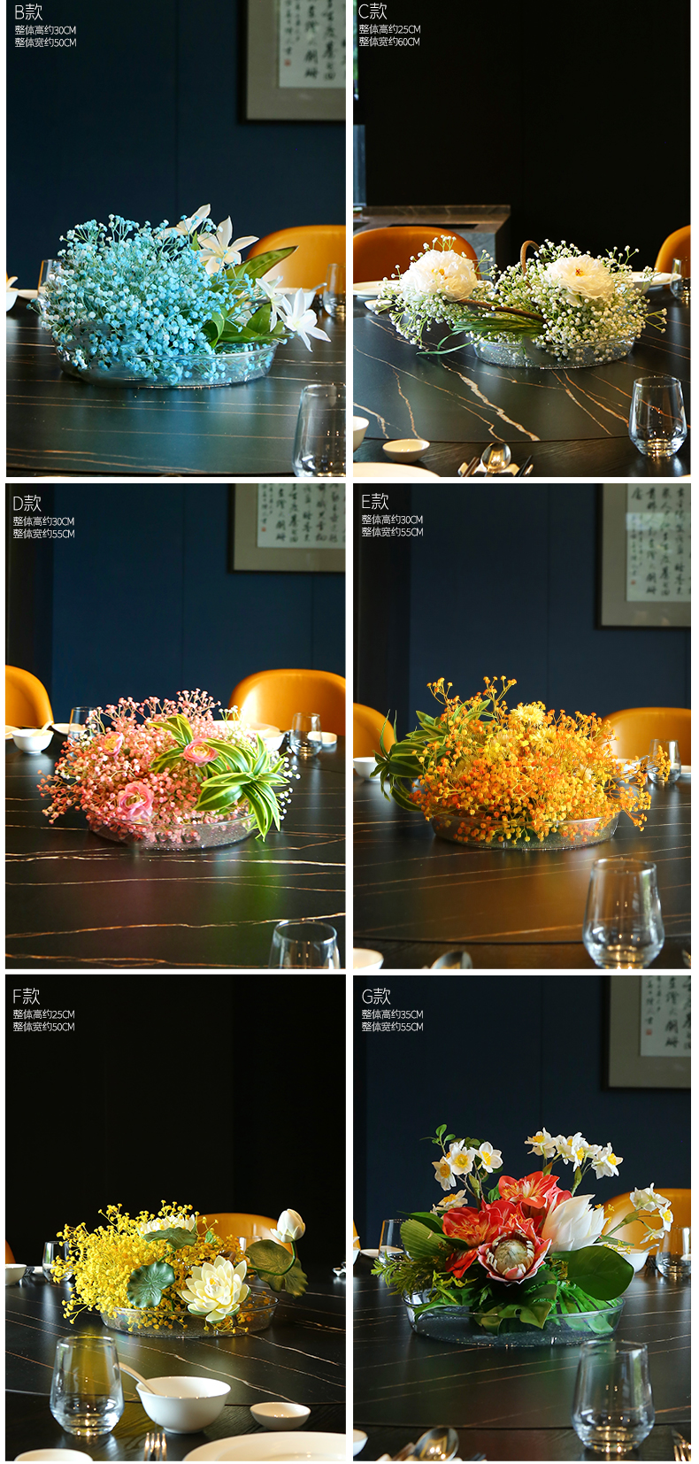 餐桌花仿真花圆桌转盘酒店圆形摆花餐厅桌面中间假花轻奢高档装饰