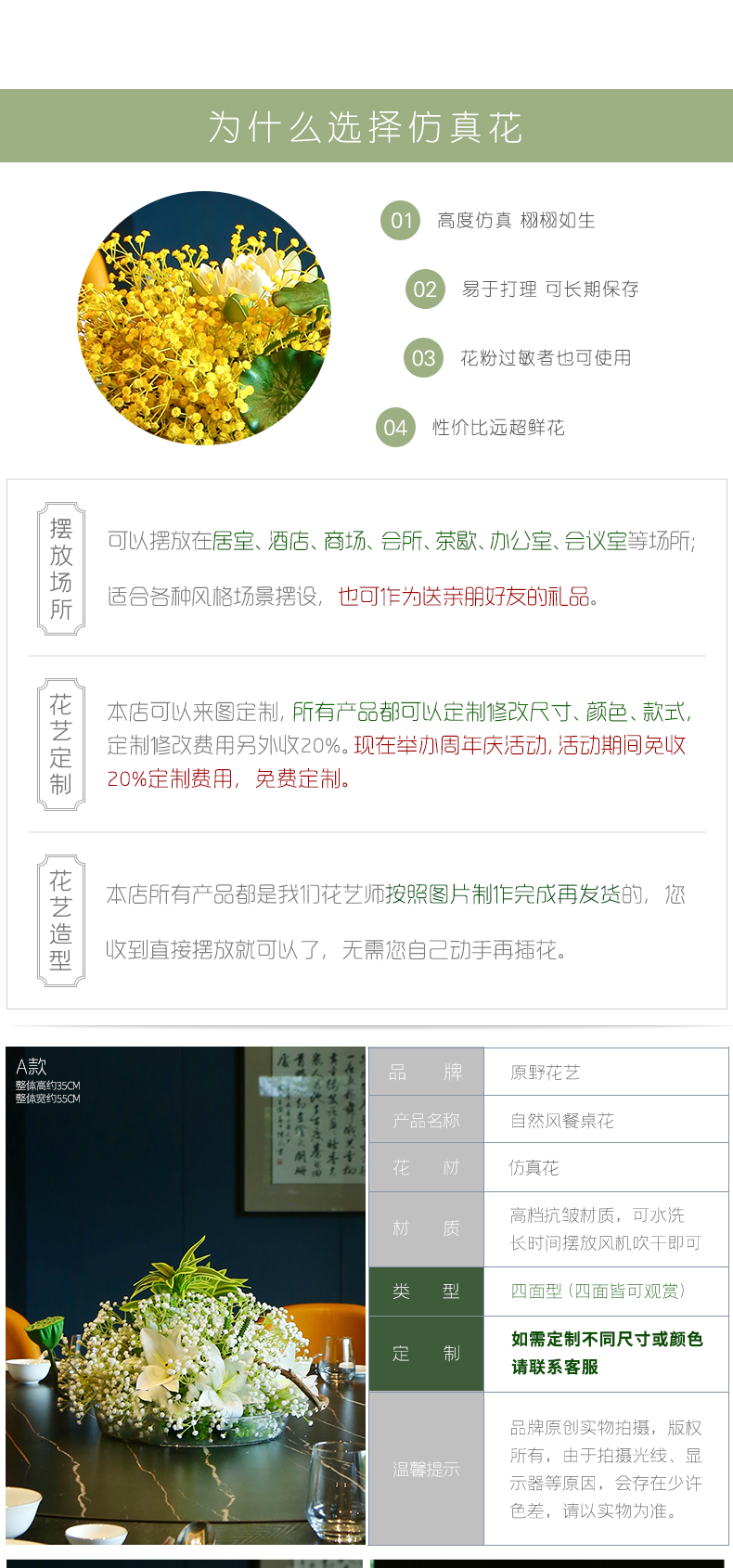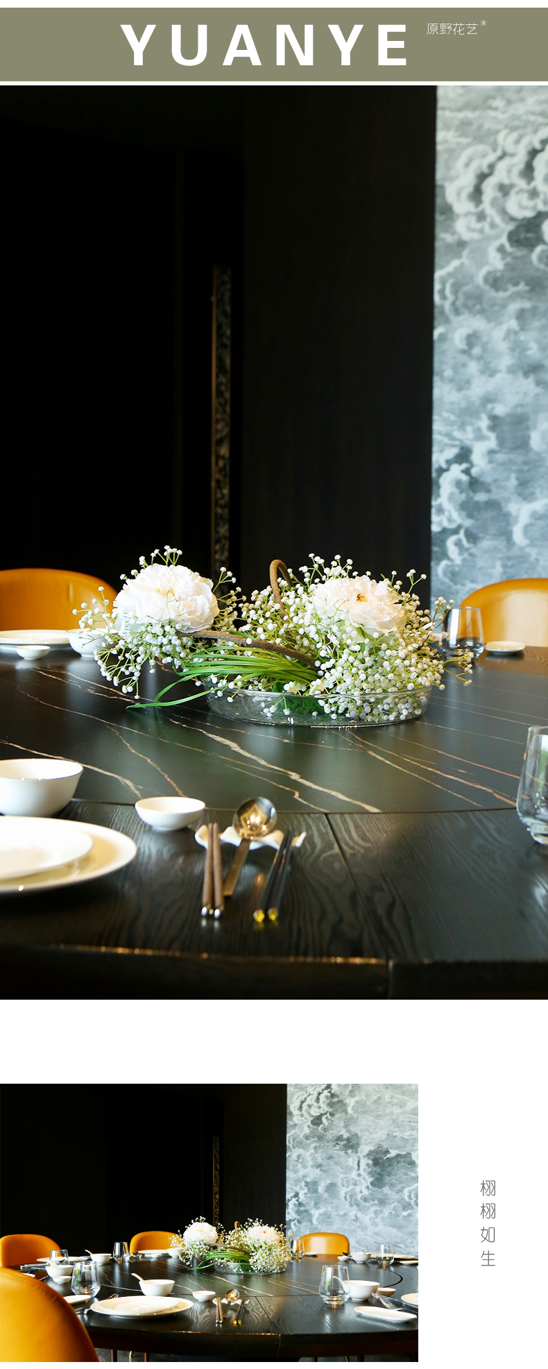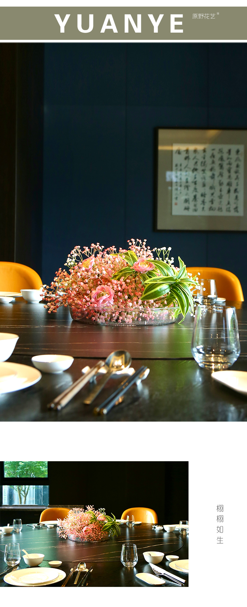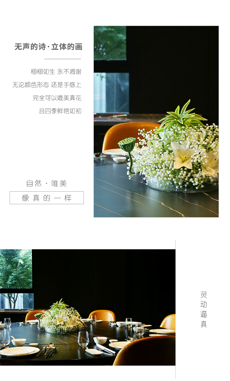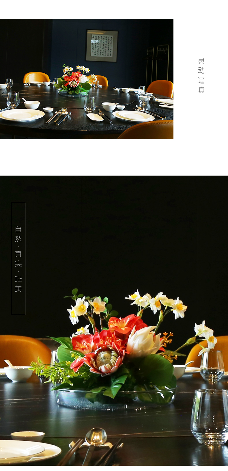 餐桌花仿真花圆桌转盘酒店圆形摆花餐厅桌面中间假花轻奢高档装饰