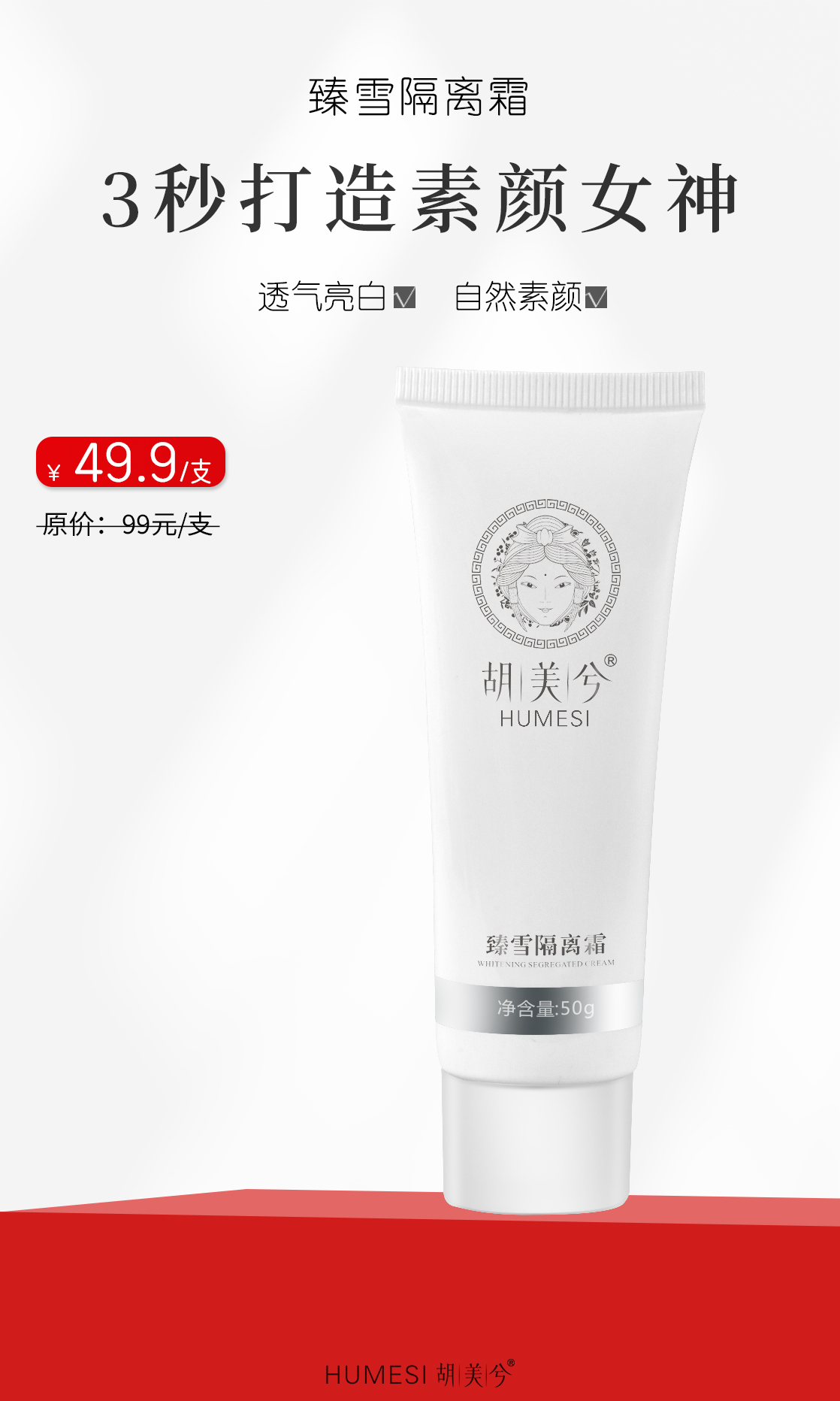 2支装百万爆品 |臻雪隔离50g/支| 美白滋润不卡纹
