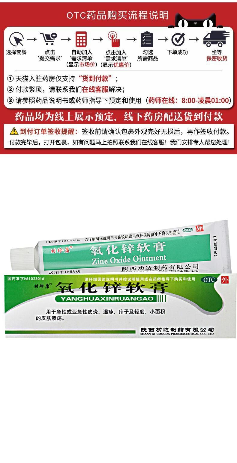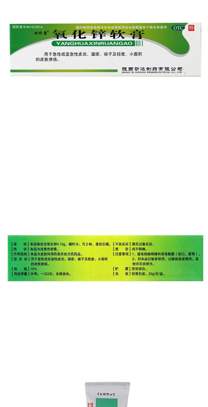 时珍康氧化锌软膏20g*1支/盒皮炎湿疹痱子外用药溃疡皮肤瘙痒冻疮