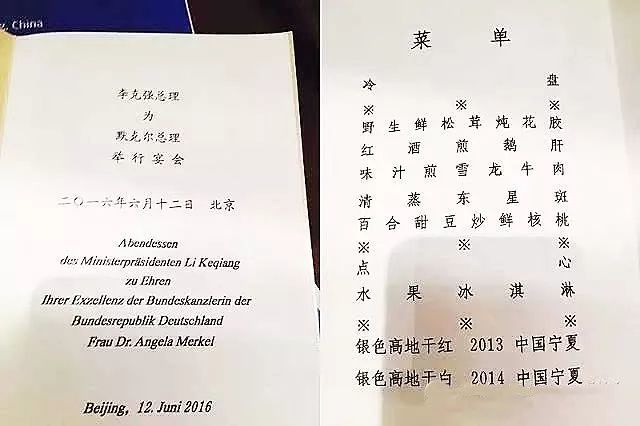 2016 年德国总理默克尔的欢迎宴会上,精心准备了 2014 年银色高地家族珍藏霞多丽干白和 2013 年银色高地阙歌干红用于招待。
